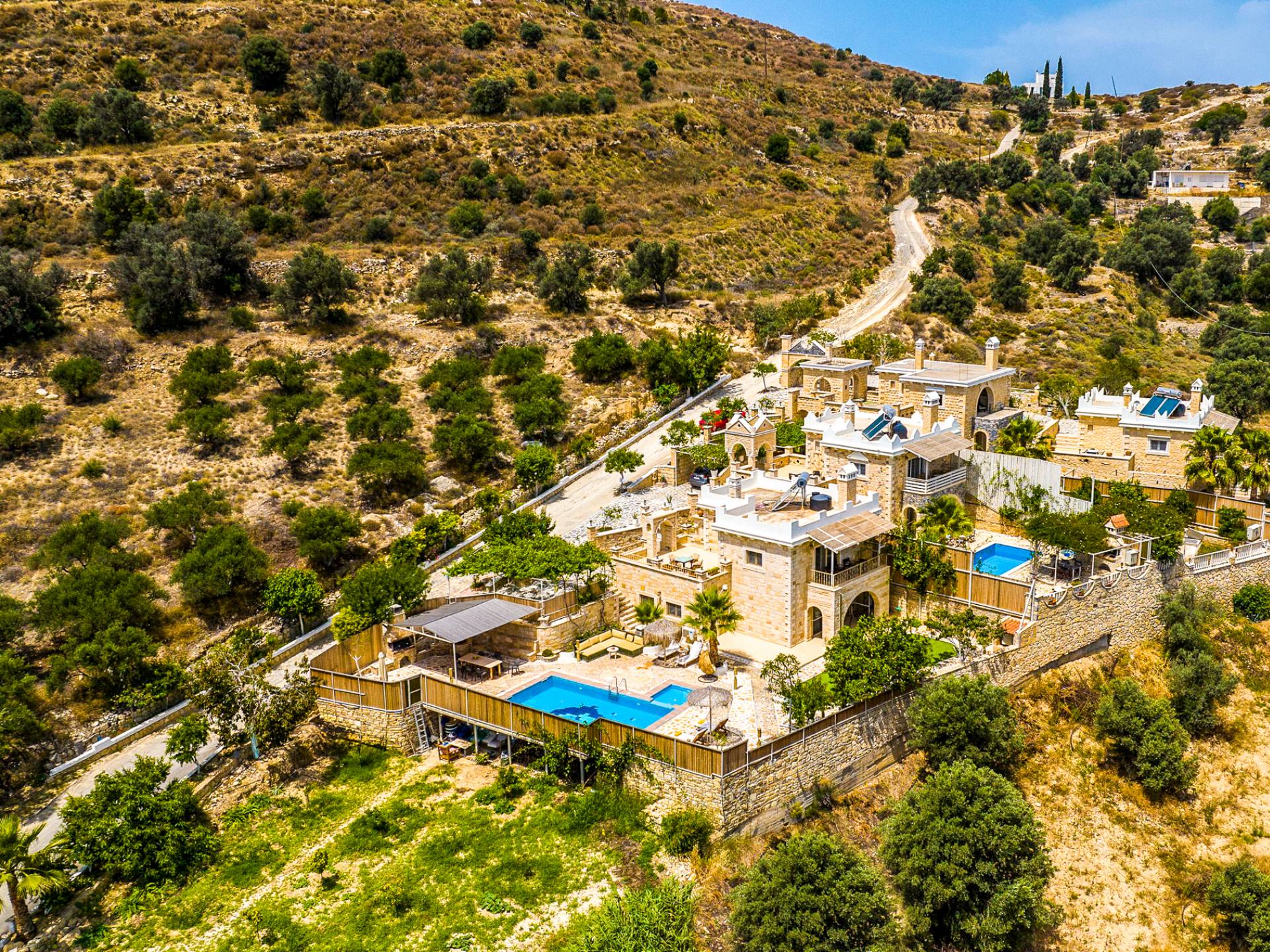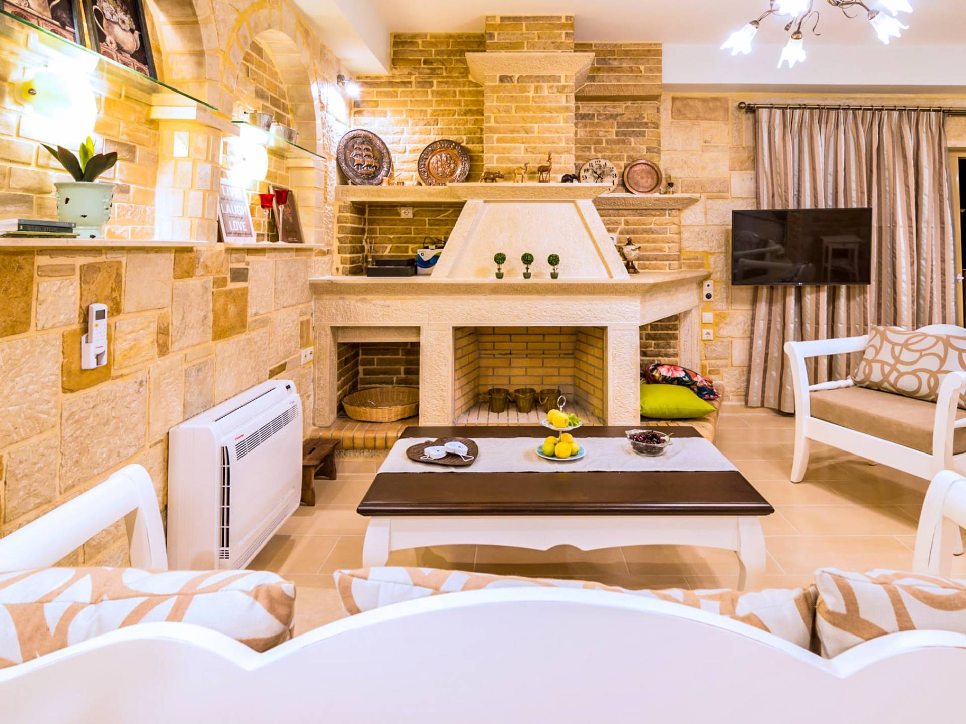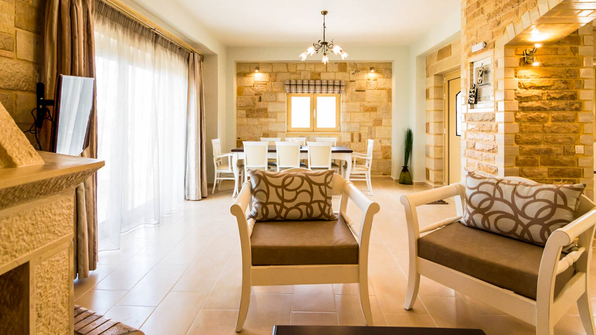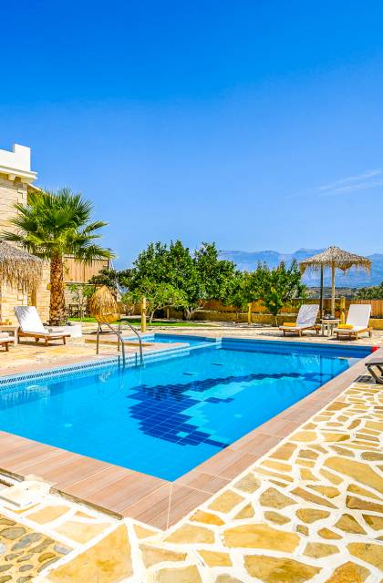 Nikolas Villa at Anesis Family Villas Crete is a luxury villa rental with 3 bedrooms and a private pool. Villa Nikolas offers a relaxing living and dining room,a fully equipped kitchen and a fireplace. Also spacious double bedrooms and large bathrooms & 1 WC. Enjoy your bath on its private pool, while your children play on the children pool or enjoy the magnificent view of the surrounding areas and the Libyan sea.