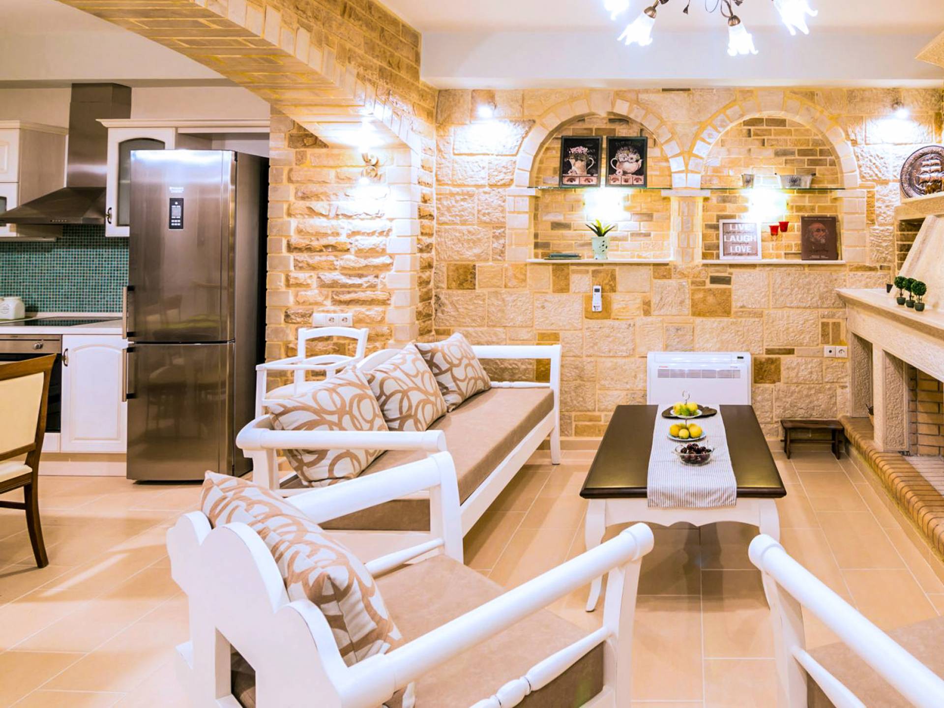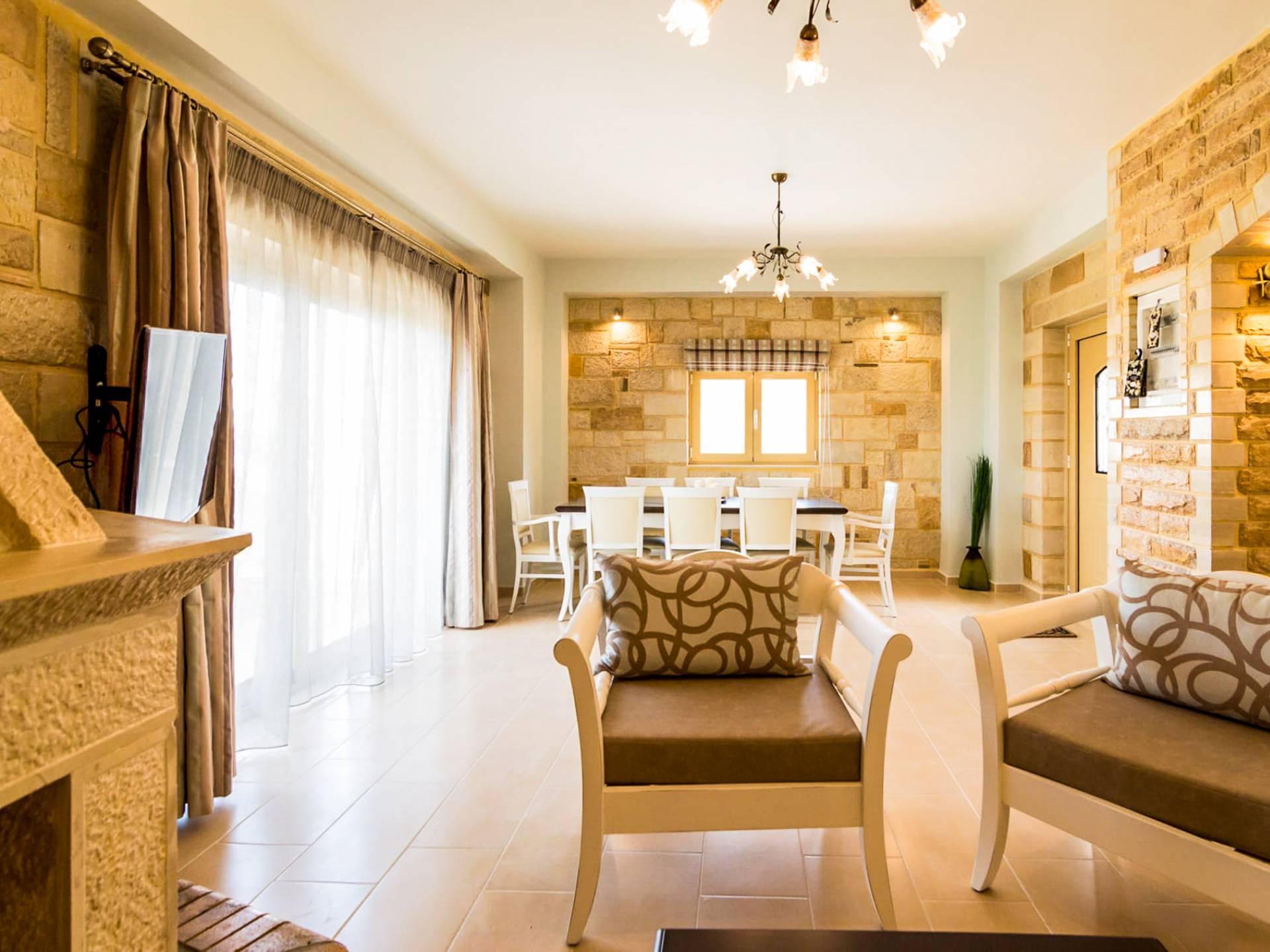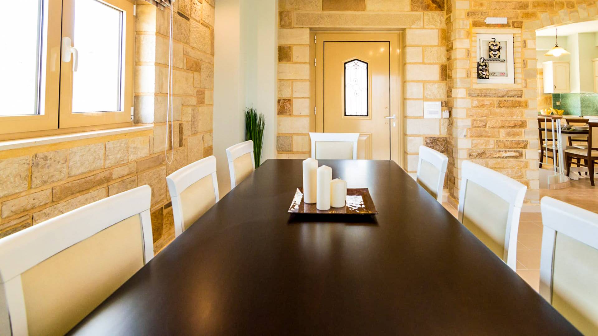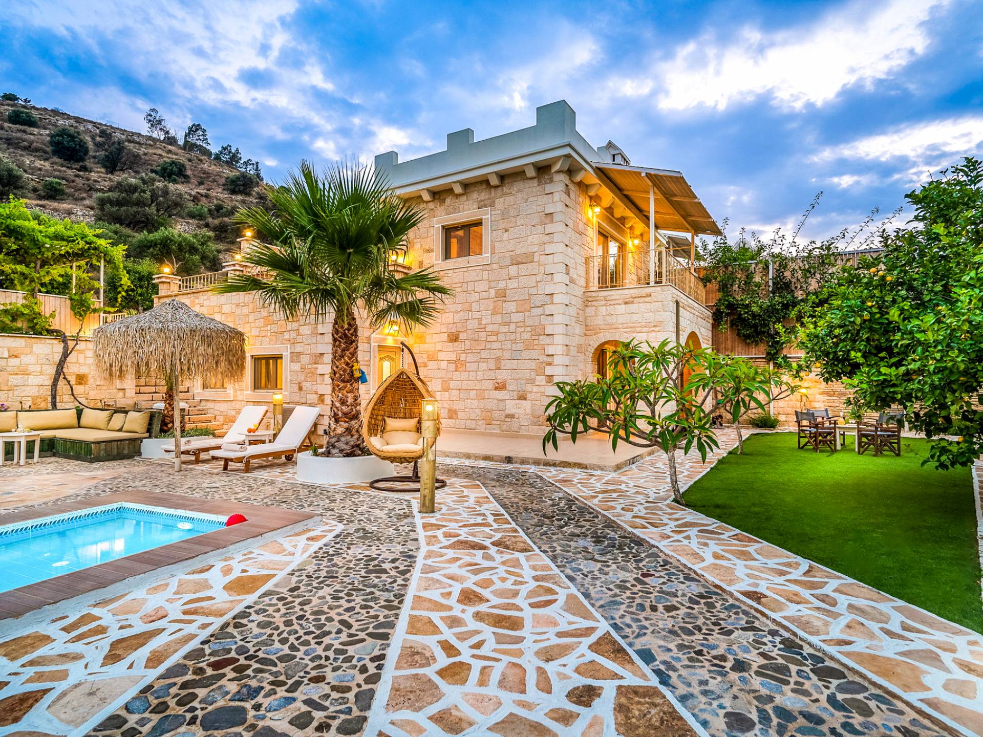 Nikolas Villa at Anesis Family Villas Crete is a luxury villa rental with 3 bedrooms and a private pool. Villa Nikolas offers a relaxing living and dining room,a fully equipped kitchen and a fireplace. Also spacious double bedrooms and large bathrooms & 1 WC. Enjoy your bath on its private pool, while your children play on the children pool or enjoy the magnificent view of the surrounding areas and the Libyan sea.