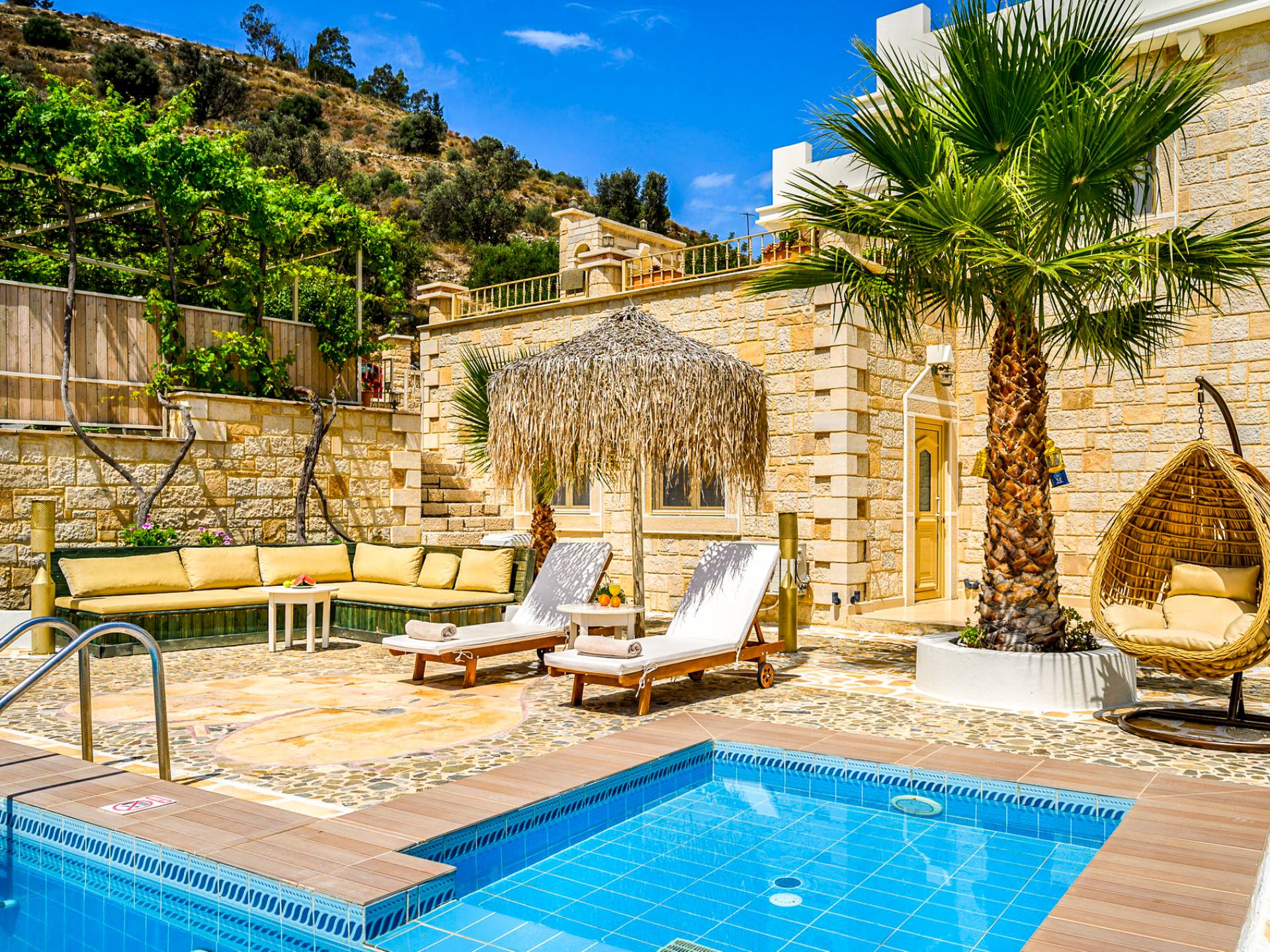 Color blue, sun and luxury, nothing can beat this combination. What else is there to ask for your vacation? Indulge yourself in a heated private pool in the coziness of your own villa, either an indoor or outdoor one. The water is healing and therapeutic…