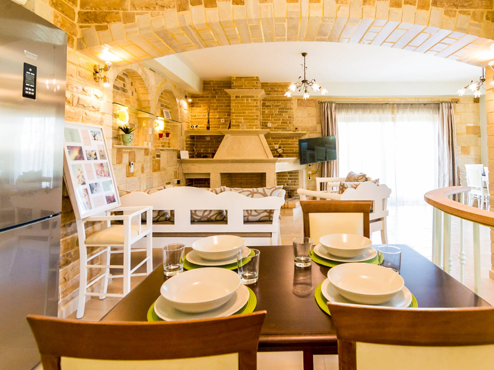 Anesis Family Villas are equipped with all the necessities you might need in order to offer you the best living conditions and help you relax during your stay. Every Villa offers a relaxing living room and dining area, with the addition of a fully equipped kitchen, large bathrooms and spacious bedrooms. There is a free wireless connection you can use, TV, air conditioning and outdoor barbeques among other amenities. Also, two of the villas (Nikolaos & Aristides) offers you the chance to enjoy a bath in their private pools.