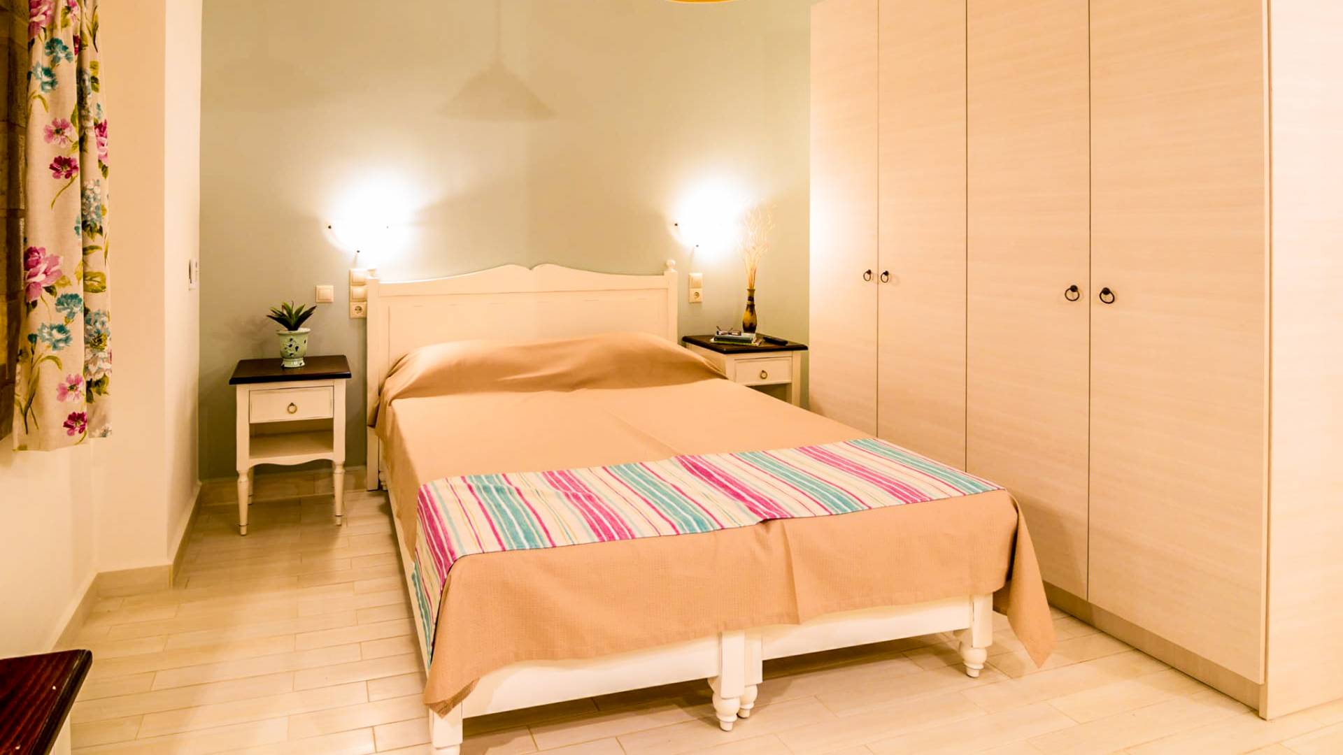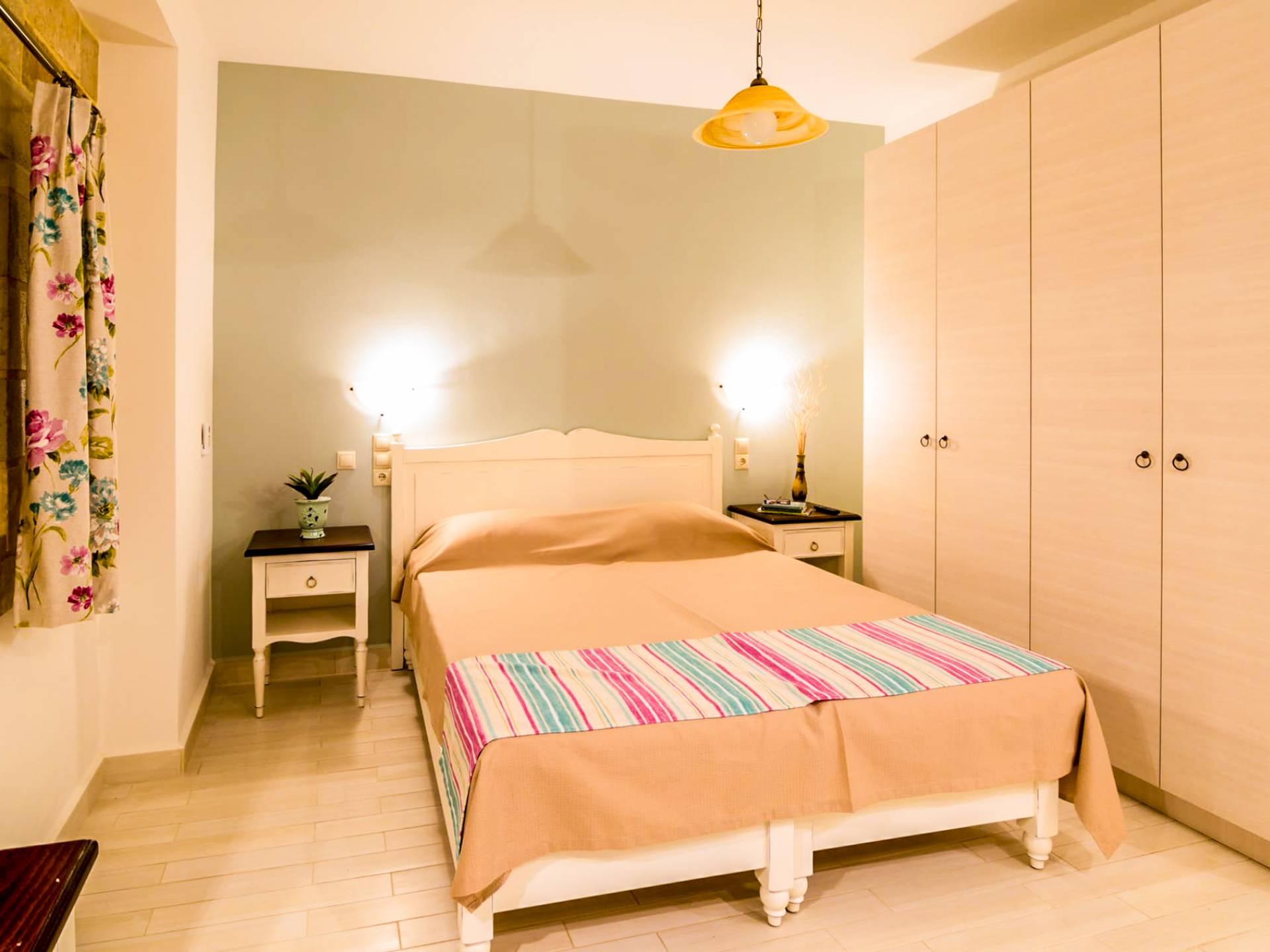 show more detailsKamilari village in Heraklion Crete is located in southern Crete, close to the villages of Mires, Timpaki, and to famous Matala. Kamilari is 4 km from the important archaeological site of Festos and close to the verdant plain of Messara with the traditional villages, turquoise beaches, and its vibrant history. Kamilari is built on the top of three hills and it is a tranquil, traditional village with a splendid panoramic view of the top of Psiloritis Mountain, the olive groves of Messara, and the eternal blue of the Libyan Sea. The stone-built houses of the village with their beautiful gardens and bougainvillea coloring their walls compose the most picturesque frame and add greatly to its beauty.