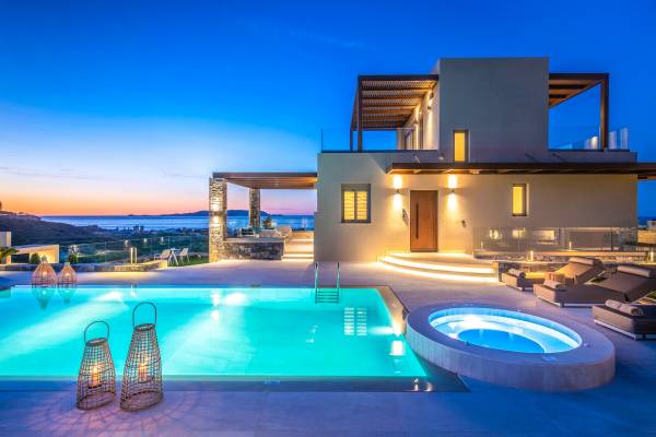 Escape to the tranquil hills of Crete and stay in a private villa with sweeping views of the Aegean Sea. Located just 3km from Kokkini Hani beach, and a short drive to Heraklion’s historical landmarks, this stunning retreat offers the perfect balance of peace, luxury, and adventure - ideal for families, couples, or groups.