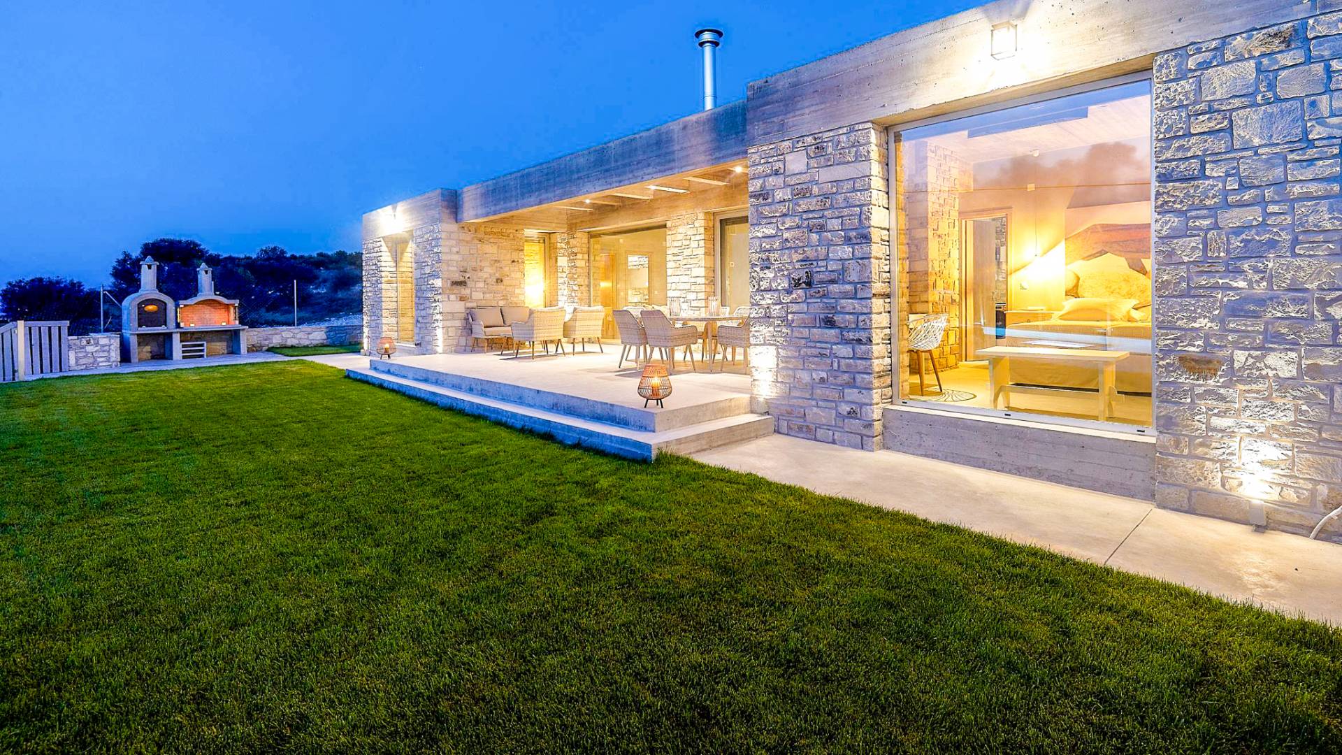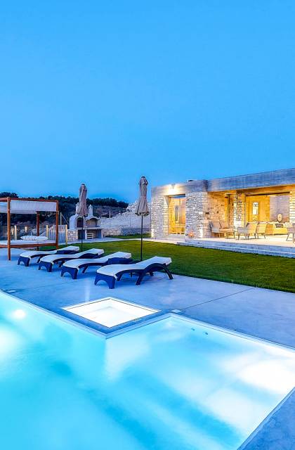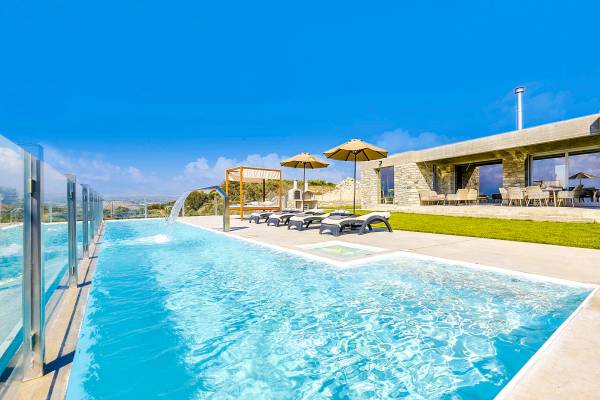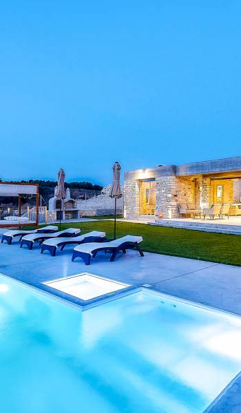 Kori Villa Crete - A luxury villa rental with 2 bedrooms and a private pool. Kouros n’ Kori are two independent villas built with modern design, merging concrete structural elements with stone. They possess high-quality equipment and comfortable furniture. The water element prevails in each villa’s large outdoor area, with a fifteen-meter-long private swimming pool. Kouros n’ Kori will offer relaxation, comfort, and privacy, providing the visitor with a unique and enjoyable holiday experience.