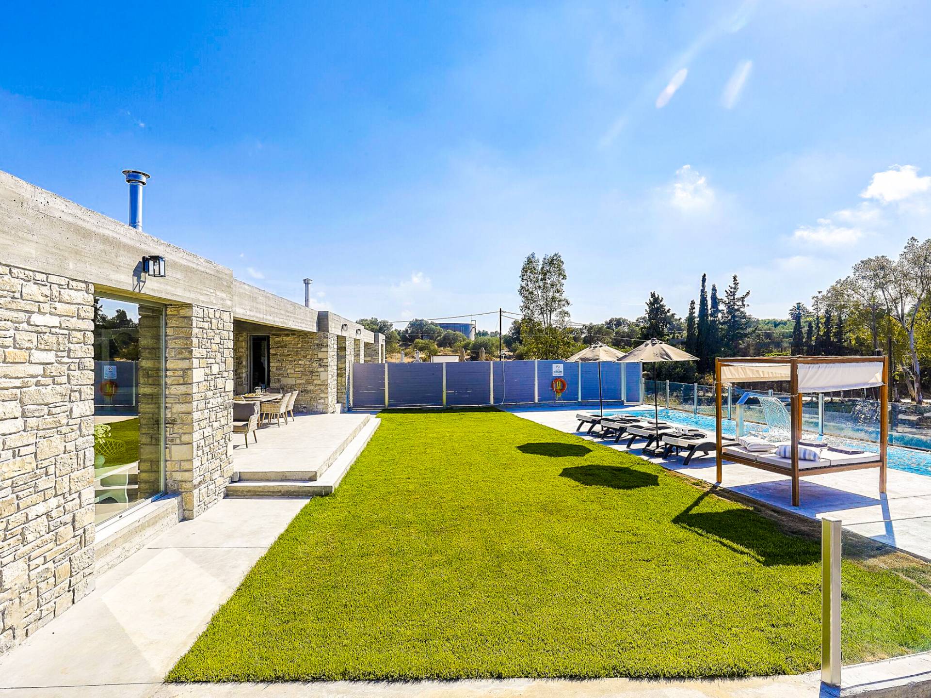 There is a swimming pool for adults (37,5m2) ,15m x 2,5 m,depth 1,40m with hydro massage jets and waterfall jet for the neck and the shoulders, terraces, a children’s pool (2.25m2) 1,5mx1,5m,depth 0,5m, a garden, a playground, large verandas in the front and back side of the villa, a barbeque, and private parking space with remote control entrance