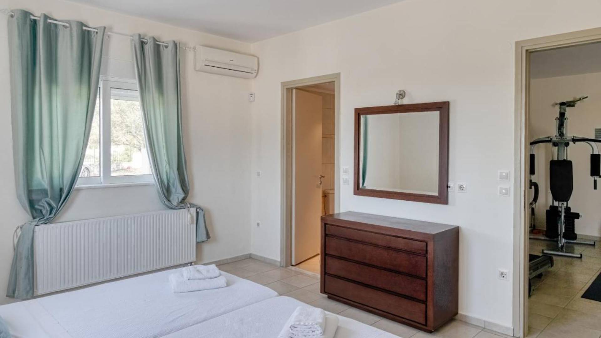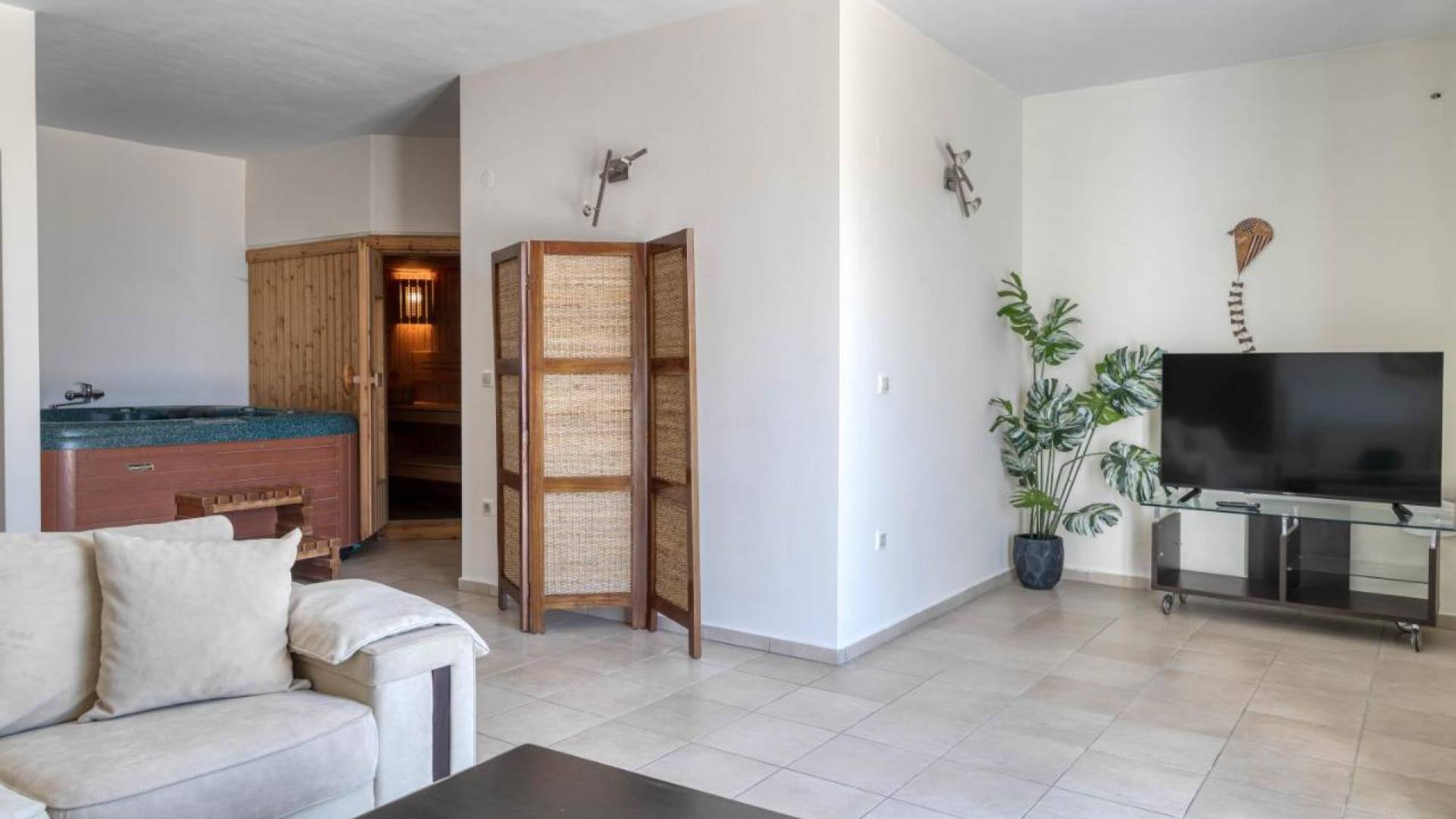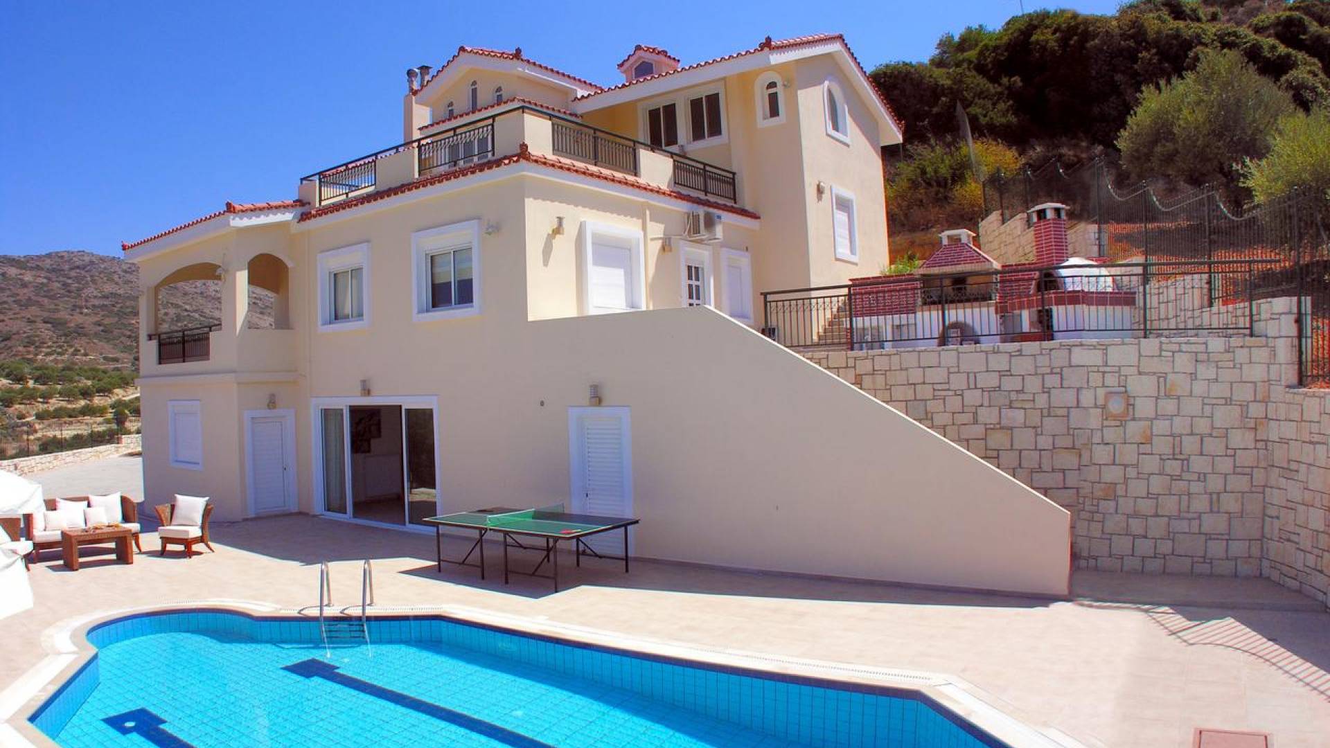 Marietta Villa Heraklion has proved very popular accommodating many guests every year, and it is easy to understand why. The House has 4 comfortable bedrooms and 6 bathrooms and holds an elevated position close to the luxury resort of Gouves. Other features inside the villa include an amply-furnished lounge with flat-screen TV, DVD and feature fireplace, and an elegantly designed kitchen. Outside there is a large swimming pool and terrace area, as well as electric gates protecting the driveway and parking area. It can host up to 8 people. The villa is also equipped with Ping Pong (outdoors), private Parking, Gym & Fitness, Sauna, Hydromassage (4 people).