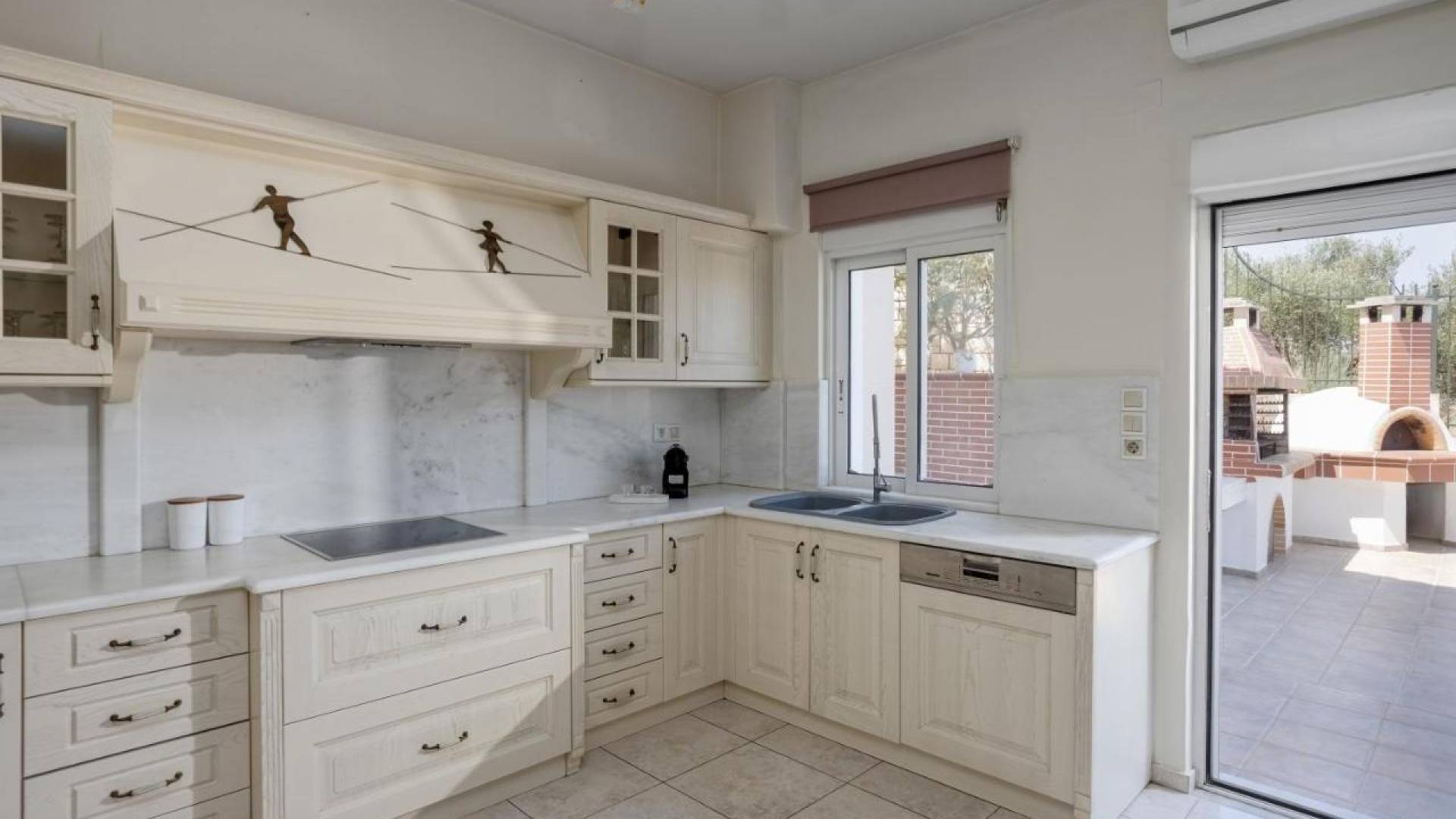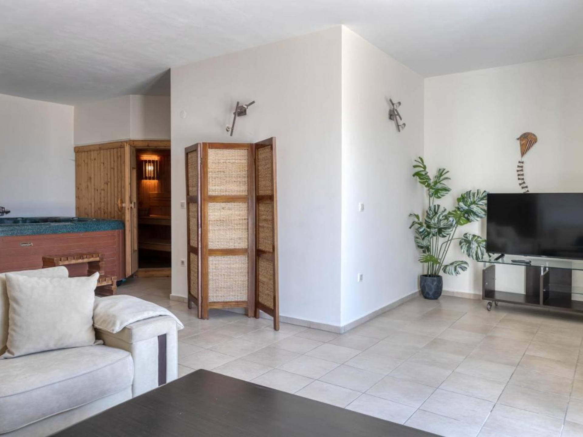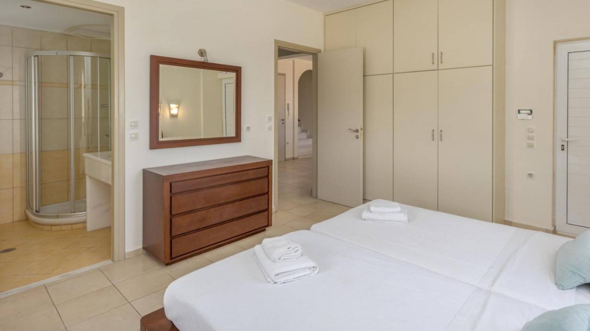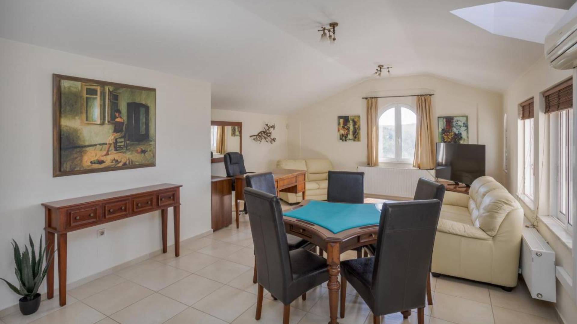 Marietta Villa Heraklion has proved very popular accommodating many guests every year, and it is easy to understand why. The House has 4 comfortable bedrooms and 6 bathrooms and holds an elevated position close to the luxury resort of Gouves. Other features inside the villa include an amply-furnished lounge with flat-screen TV, DVD and feature fireplace, and an elegantly designed kitchen. Outside there is a large swimming pool and terrace area, as well as electric gates protecting the driveway and parking area. It can host up to 8 people. The villa is also equipped with Ping Pong (outdoors), private Parking, Gym & Fitness, Sauna, Hydromassage (4 people).