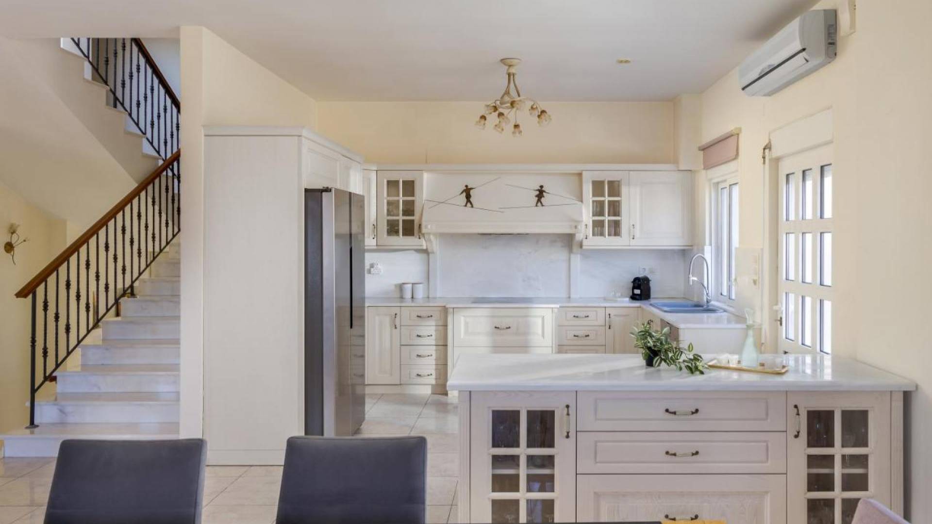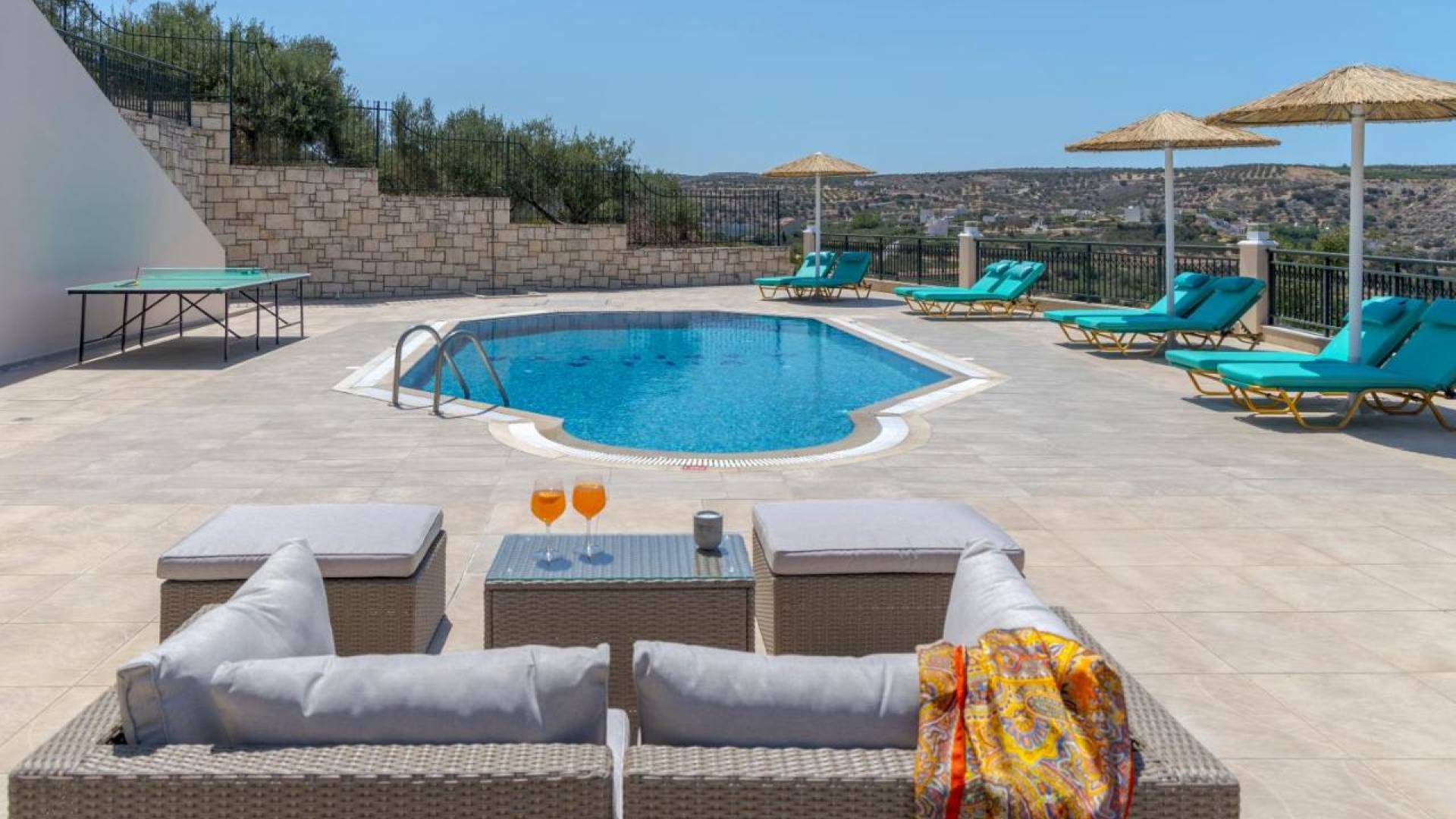 Nestled in Gouves (Skotino, Crete island), on a mountain slope, in the modern architecture of 400 m2 and four levels, in a romantic picturesque background and with a sublime view, only 21 km far from Heraklion, this lush villa is perfect for moments of relaxation and quiet. Marietta Villa Heraklion offers a fascinating holiday-worthy to remember, in a luxury self-catering property experience throughout the year, being able to host 2 - 8 people in Heraklion Crete.