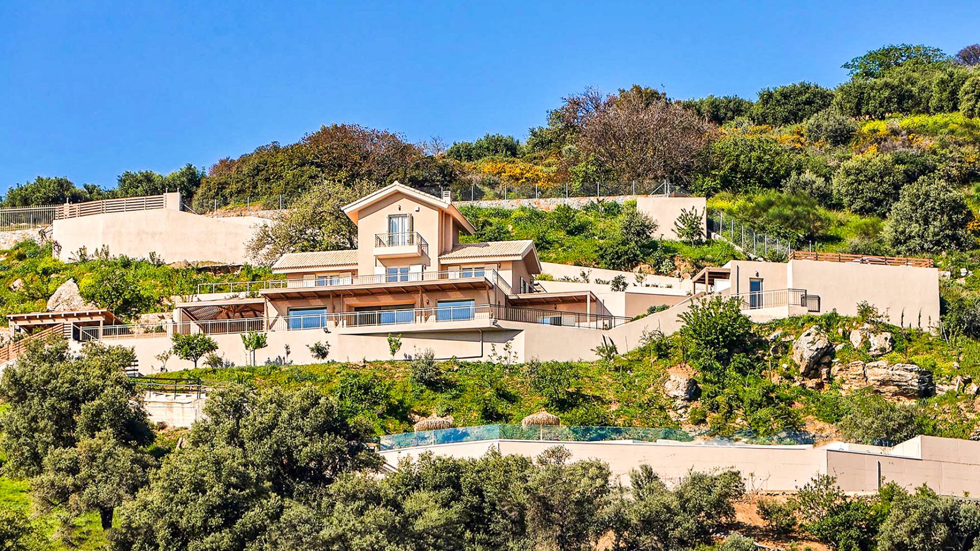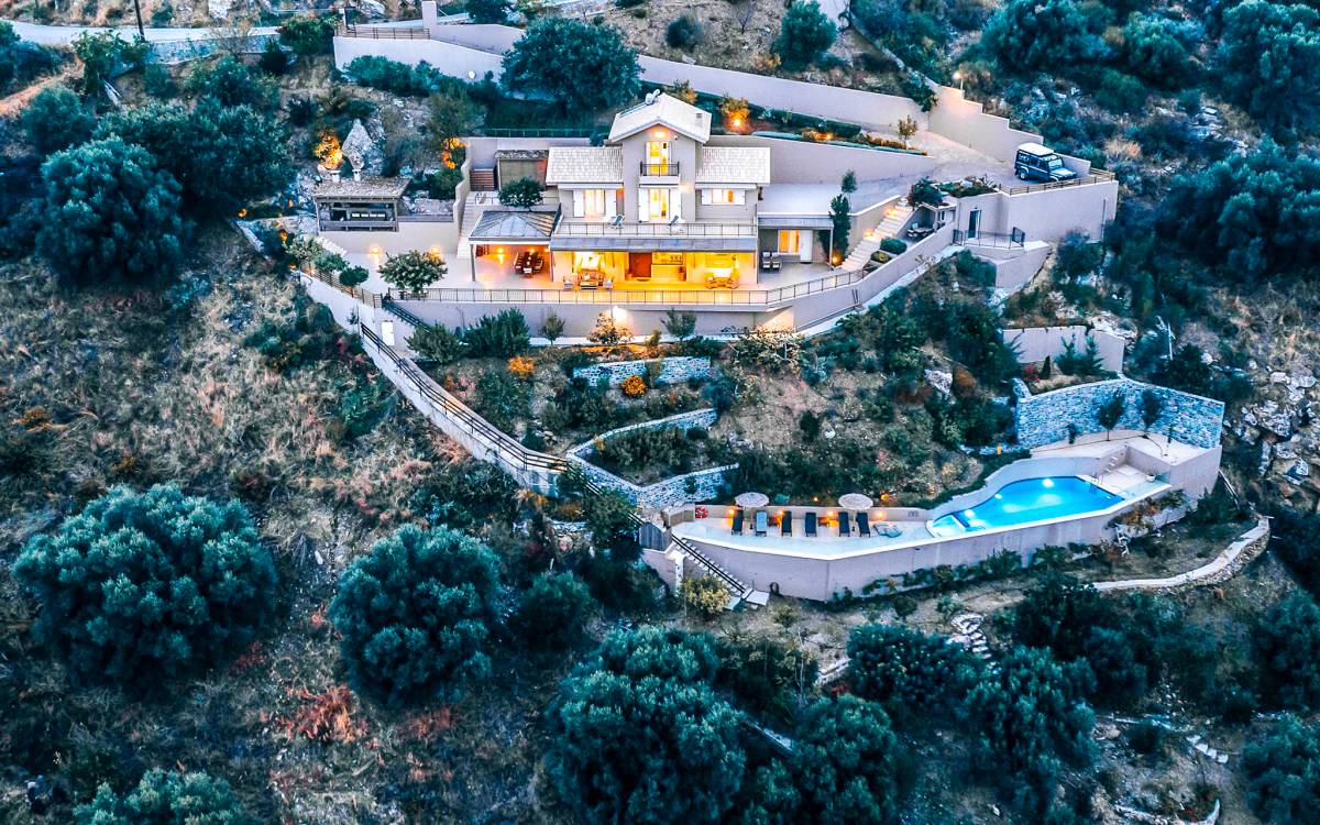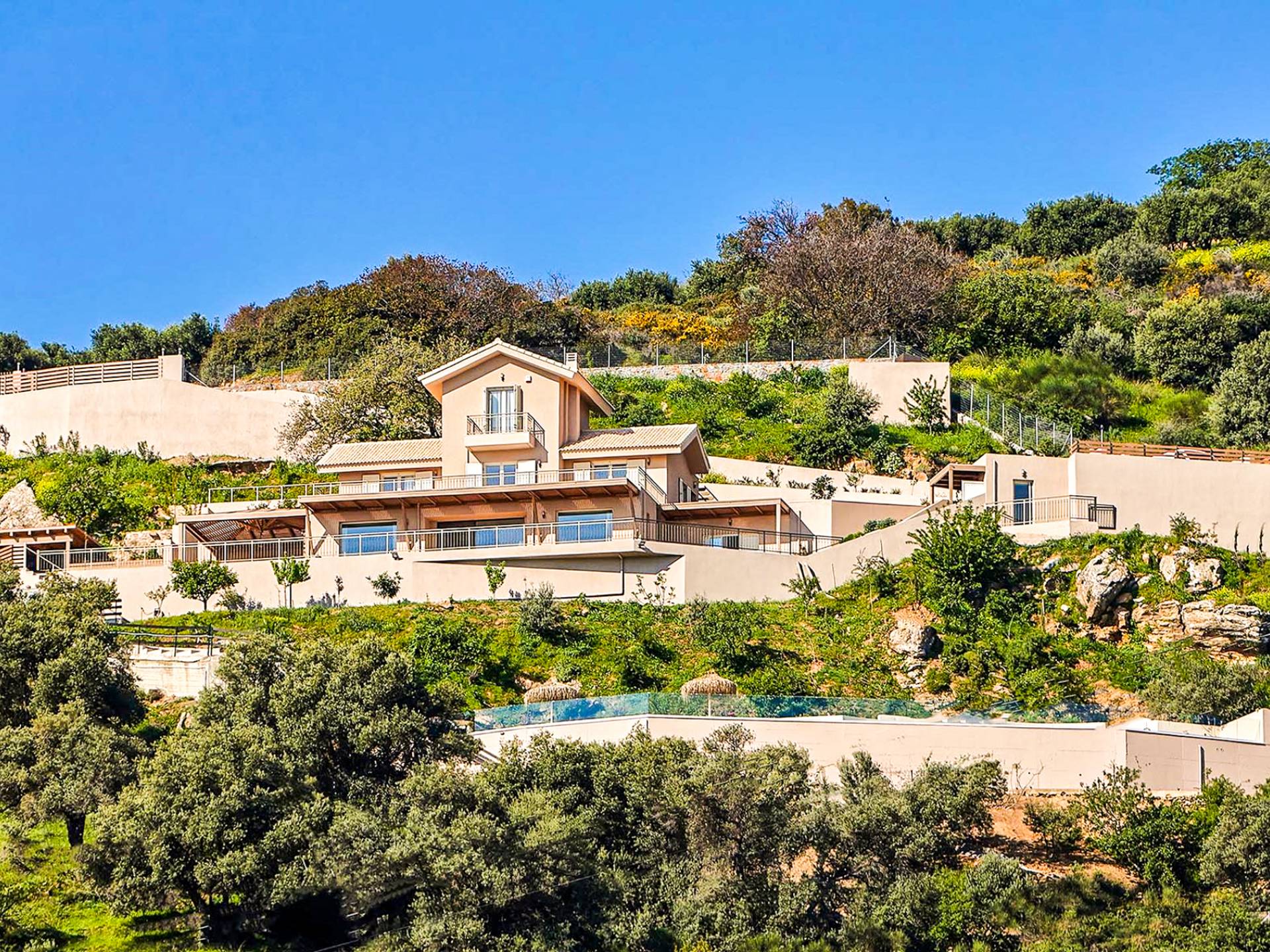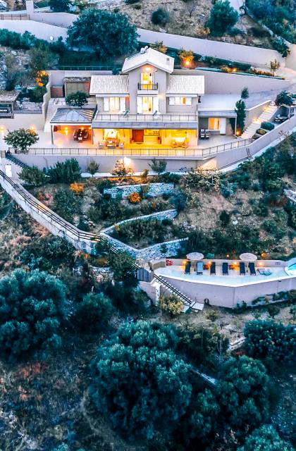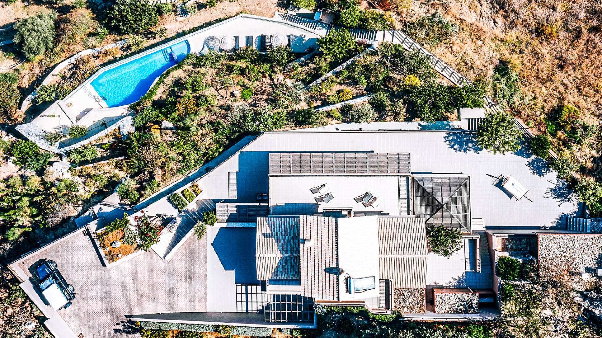 Perched atop the hill above Pantanassa, on the slopes of Rodia mount, Villa Omikron offers spectacular panoramic vistas of the Aegean sea, Heraklion gulf, Dia island, and the surrounding mountains, as well as colorful sunset views. Located on a 2700 m2 plot near the picturesque village of Rodia and just a short drive away from Heraklion town may be your starting point to explore all the island of Crete has to offer or serve as your private paradise for refreshment and recreation.