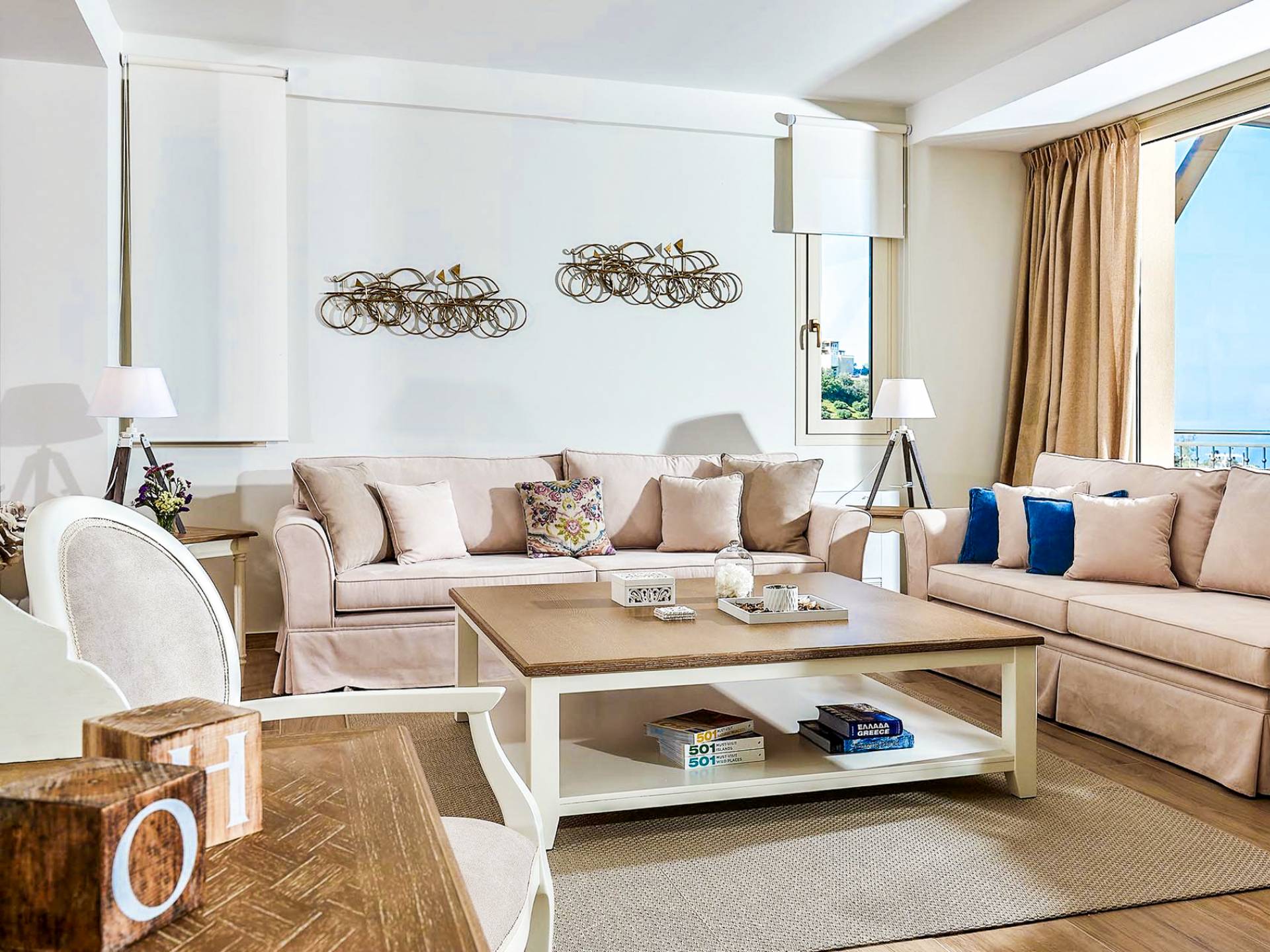 The modern architecture of the villa is in perfect harmony with the natural landscape, built amphitheatrically, setting a fine example of exclusive style combined with the natural elements of Crete! Every detail is designed with care, intended to create a peaceful cove offering full privacy. The interior spaces are fully equipped and beautifully decorated in earthly tones in order to give an extra touch of relaxation, elegance, and luxury. The 250 m2 residence is divided into 3 floors and it features 5 bedrooms and can accommodate 10 guests and up to 11 if necessary! Entering the ground level guests can find the living room on their right and the kitchen and dining area on their left. The seating area is complemented by 3 comfortable cozy sofas assorted with coffee tables, a fireplace, Smart TV, Playstation 5, and a Bluetooth speaker.