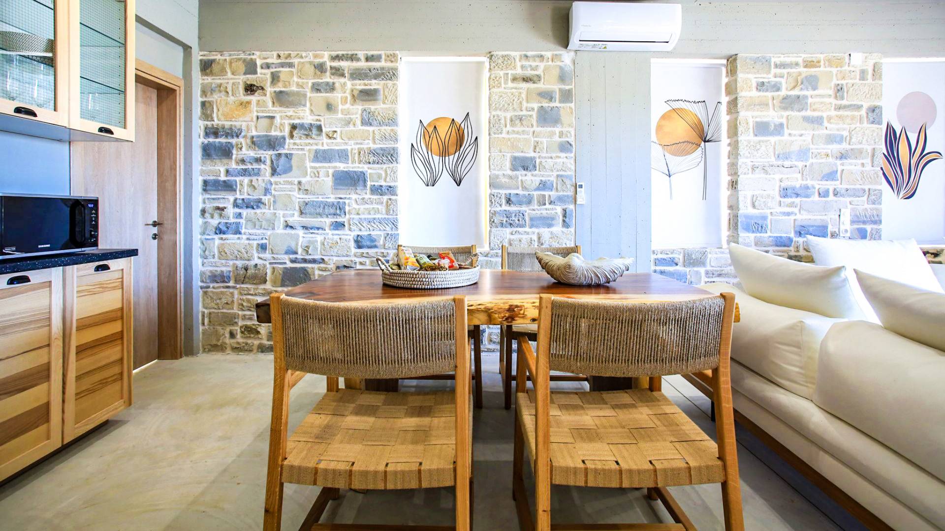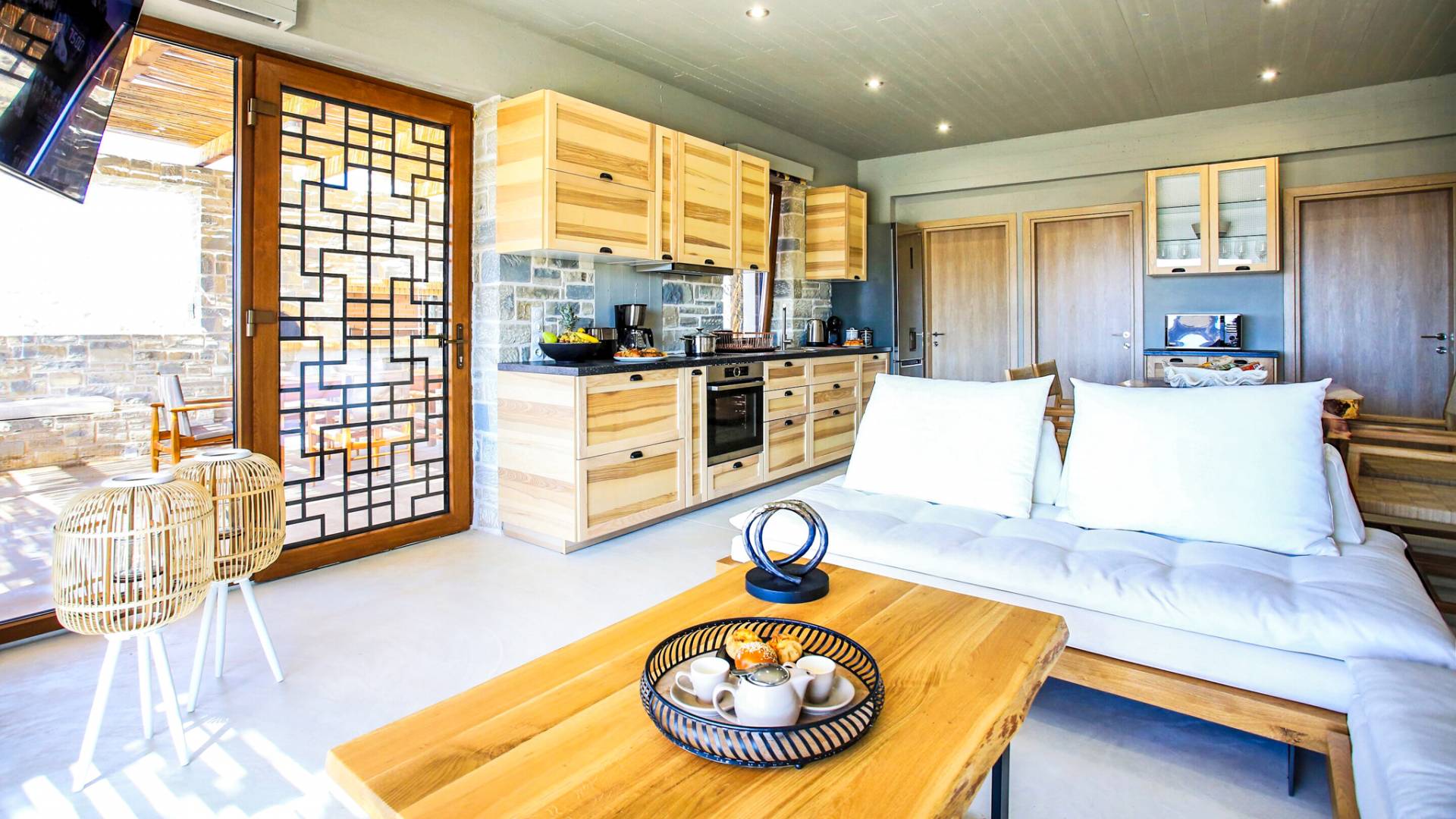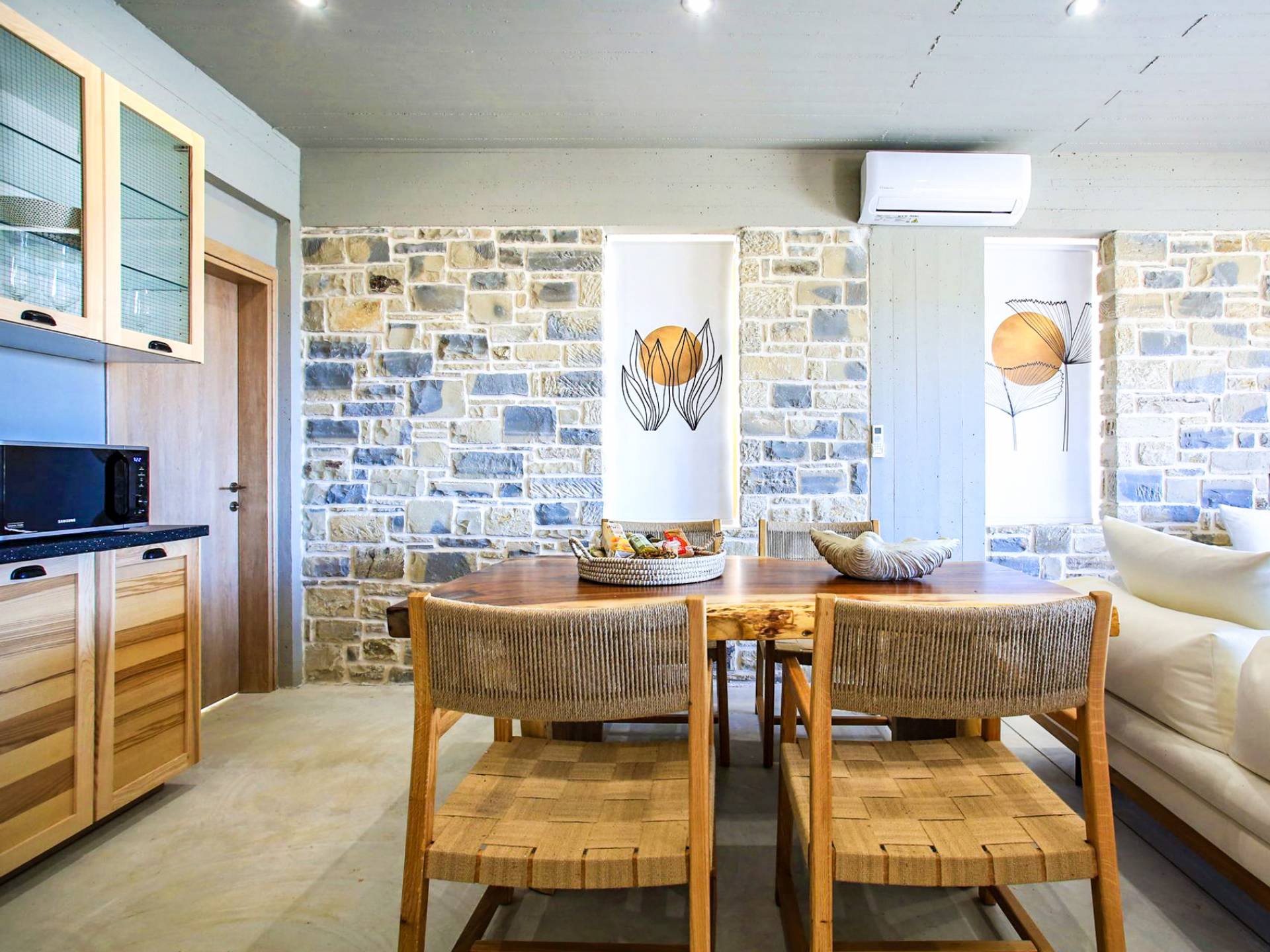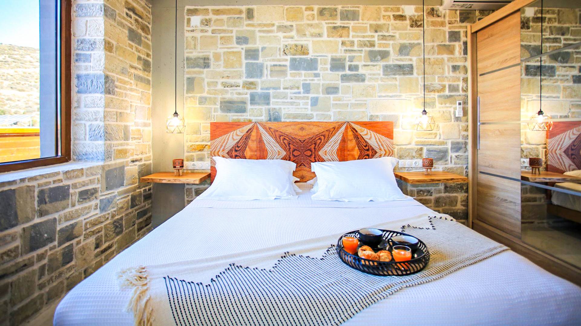 Phaestias Terra Villas Crete is an exclusive complex of three luxury villas, offering unobstructed sea views and complete privacy amid Crete’s natural beauty. Each villa features its own spacious garden, private terrace, and an infinity pool that can be heated upon request, creating a serene setting for relaxation. The exterior design blends harmoniously with the surrounding landscape, while the interiors combine stone and wood in a modern yet cozy style. With two bedrooms in each villa, all featuring en-suite bathrooms and COCO-MAT eco-friendly mattresses, guests are guaranteed exceptional comfort and restful sleep. Phaestias Terra Villas Crete promises a tranquil, refined holiday experience where nature, privacy, and comfort come together effortlessly.