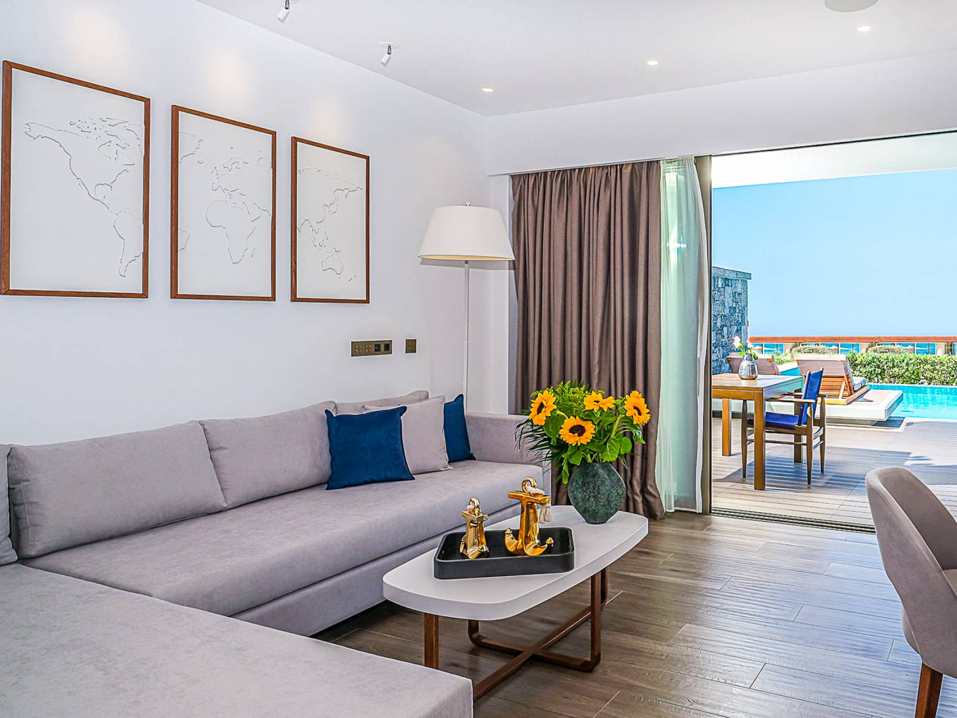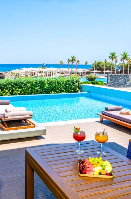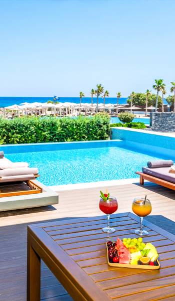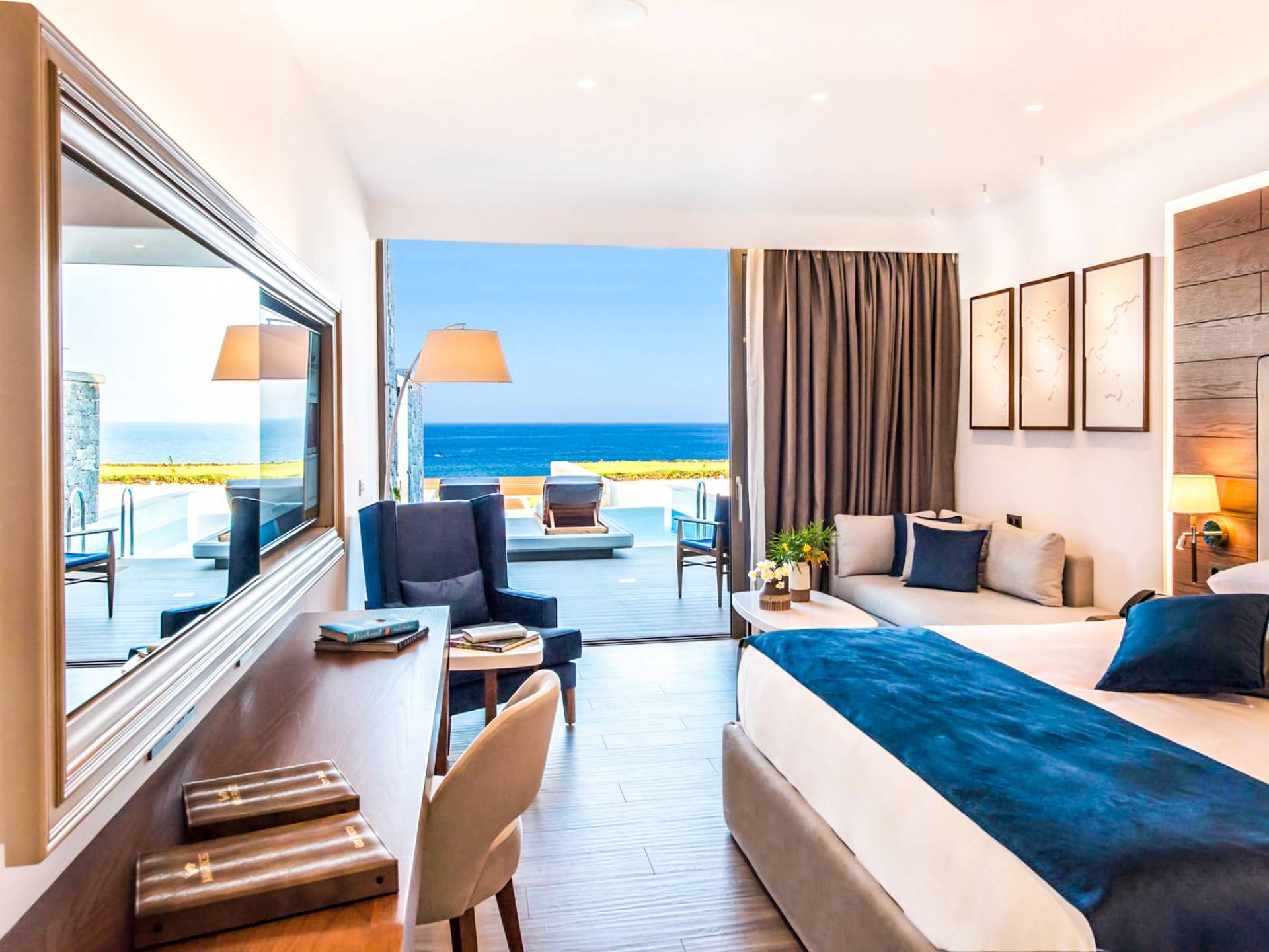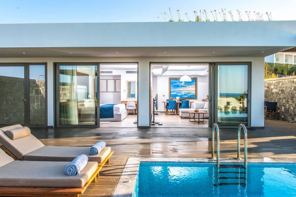 All of the refined suites & villa have private heated pools or outdoor heated whirlpools in which guests can immerse themselves and totally relax while gazing out over the breathtaking Cretan Sea. Modern features are in abundance throughout the resort, with each luxurious suite and villa equipped with state-of-the-art facilities and amenities, ensuring that guests have all the latest gadgets at their fingertips. From smart lighting to individual temperature-controlled heated pools and Nespresso coffee machines.