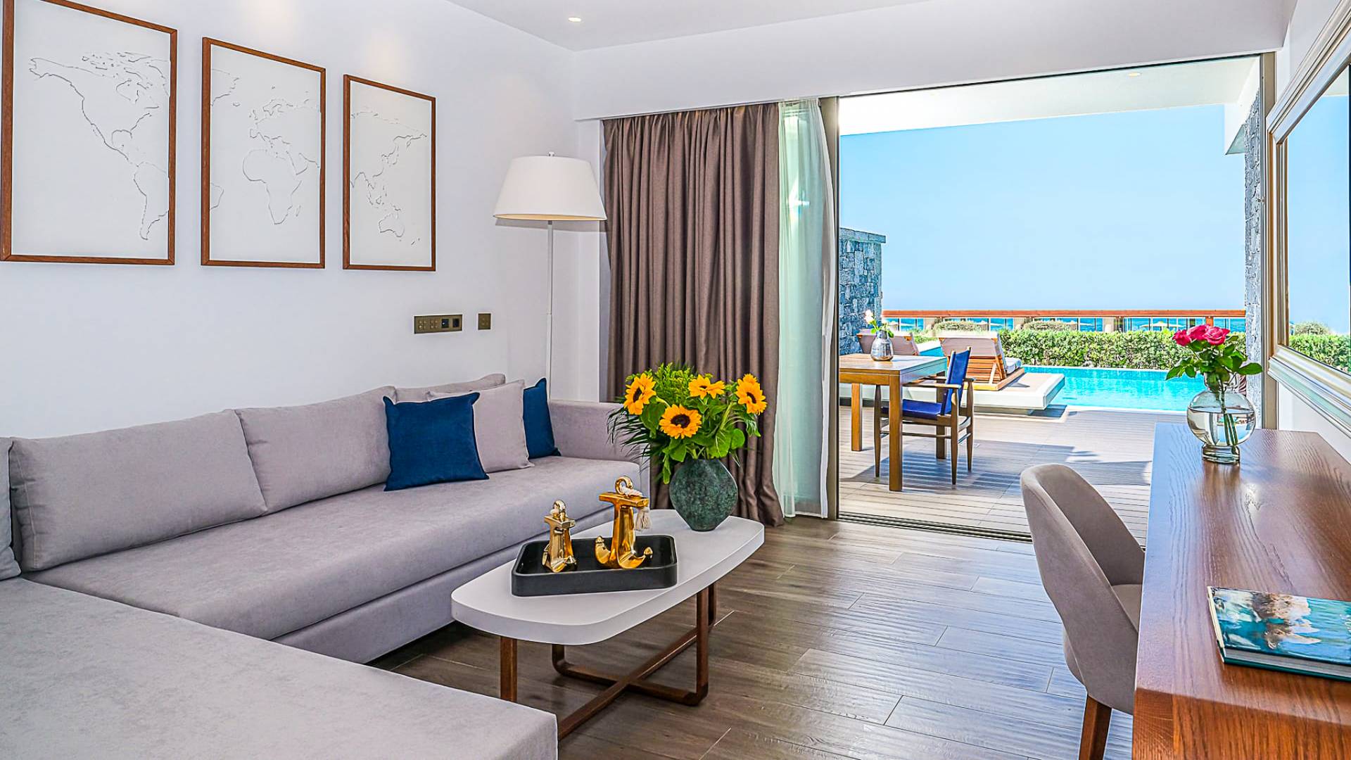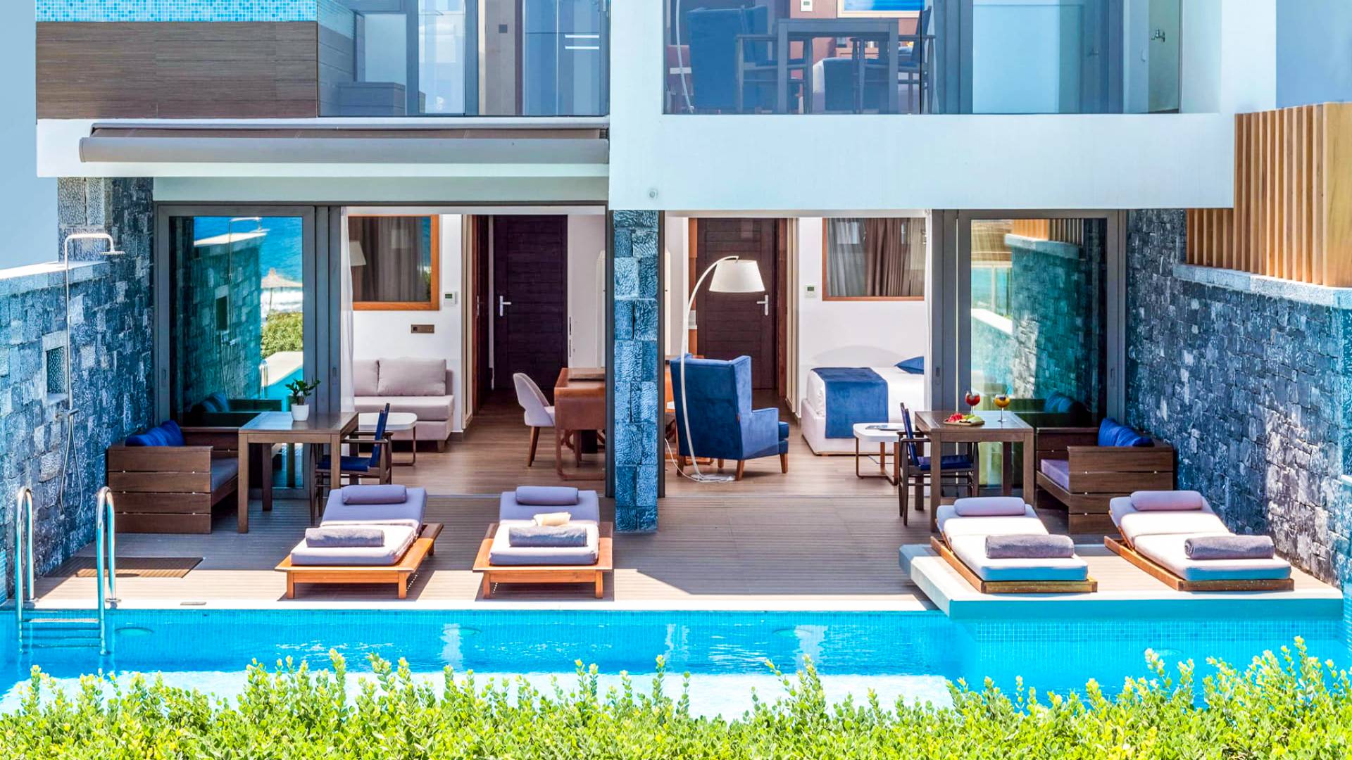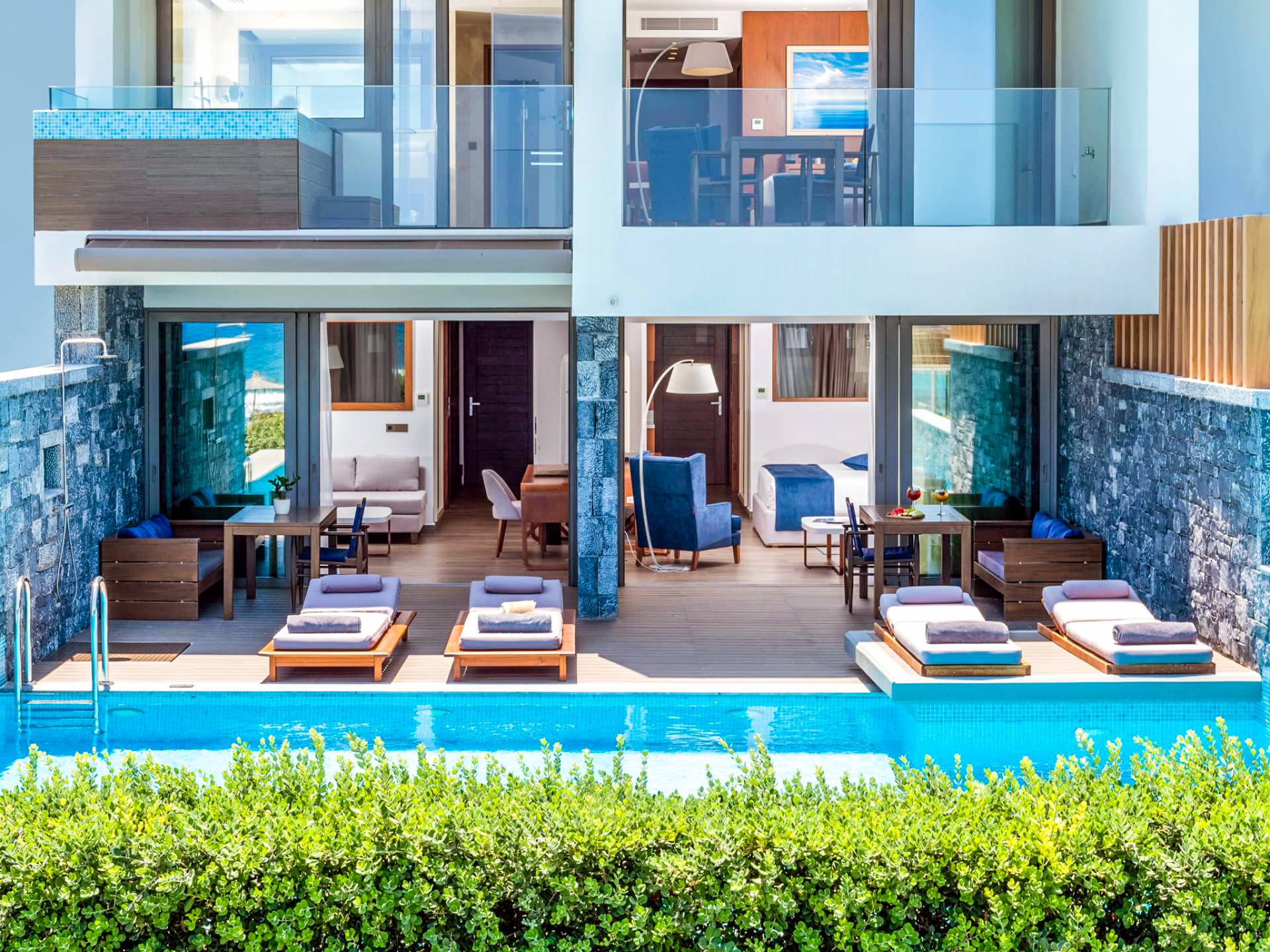 All of the refined suites & villa have private heated pools or outdoor heated whirlpools in which guests can immerse themselves and totally relax while gazing out over the breathtaking Cretan Sea. Modern features are in abundance throughout the resort, with each luxurious suite and villa equipped with state-of-the-art facilities and amenities, ensuring that guests have all the latest gadgets at their fingertips. From smart lighting to individual temperature-controlled heated pools and Nespresso coffee machines.