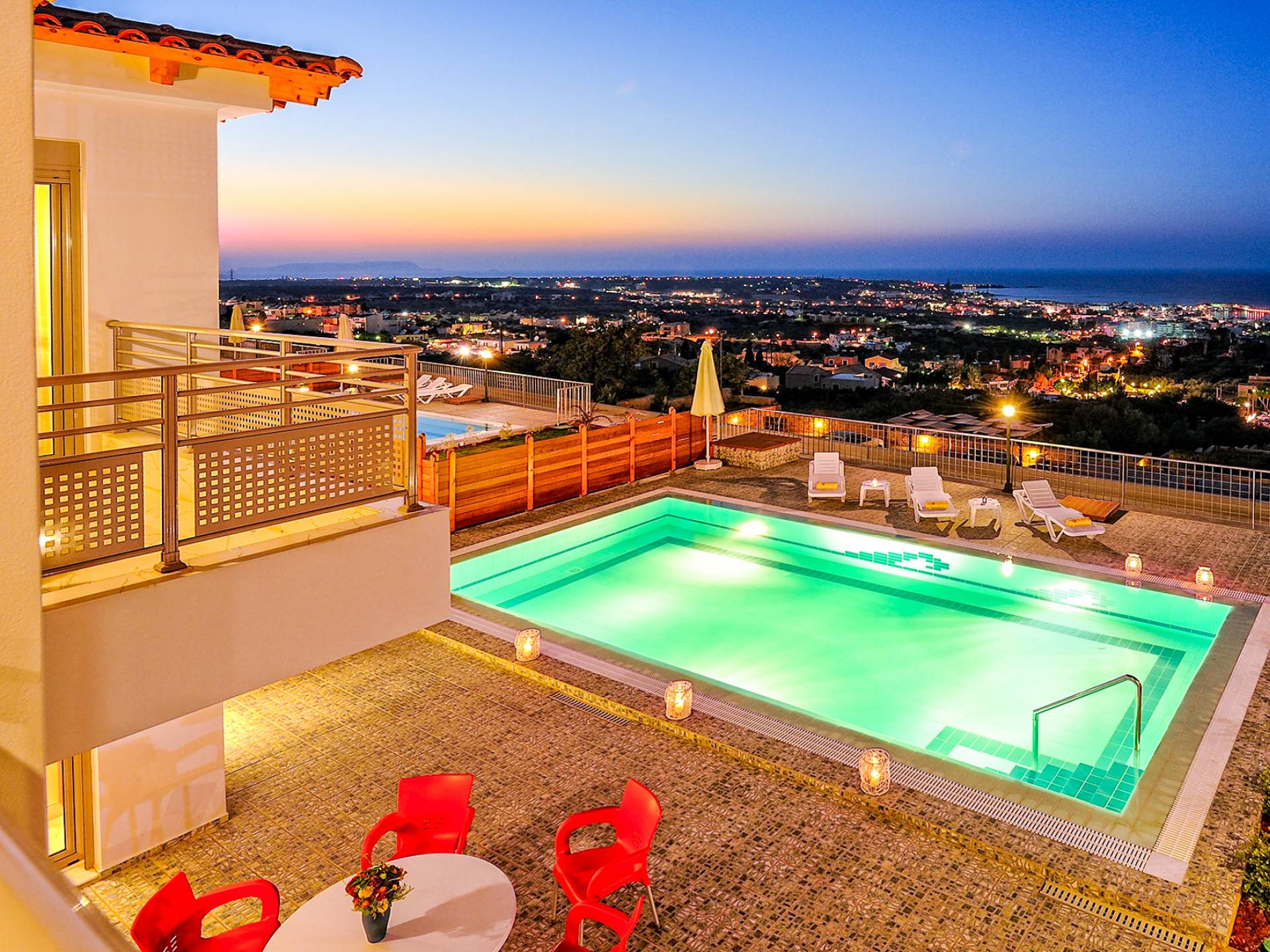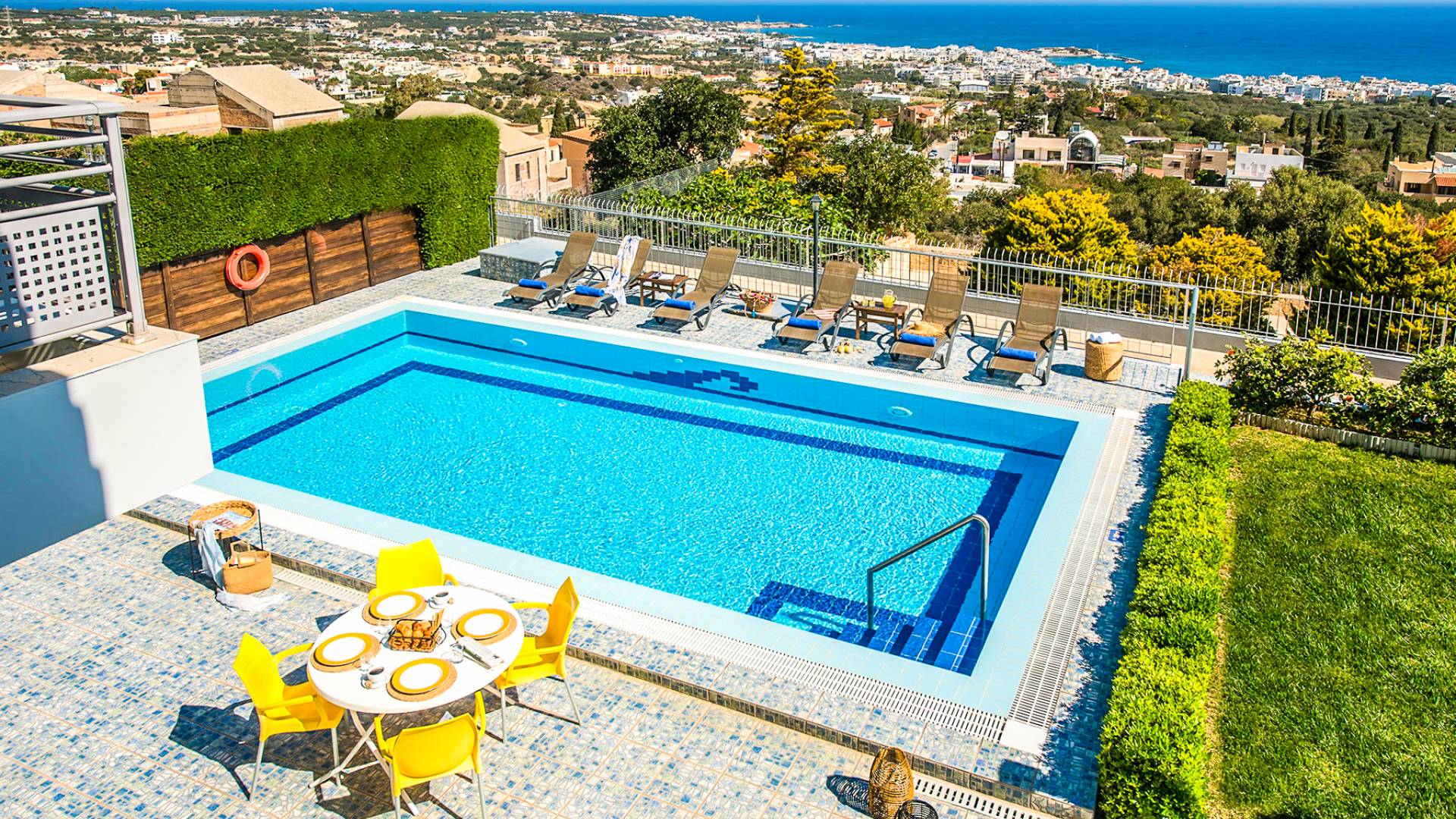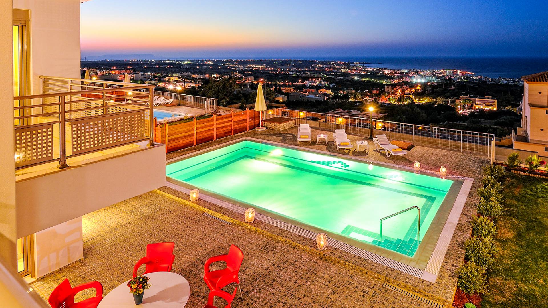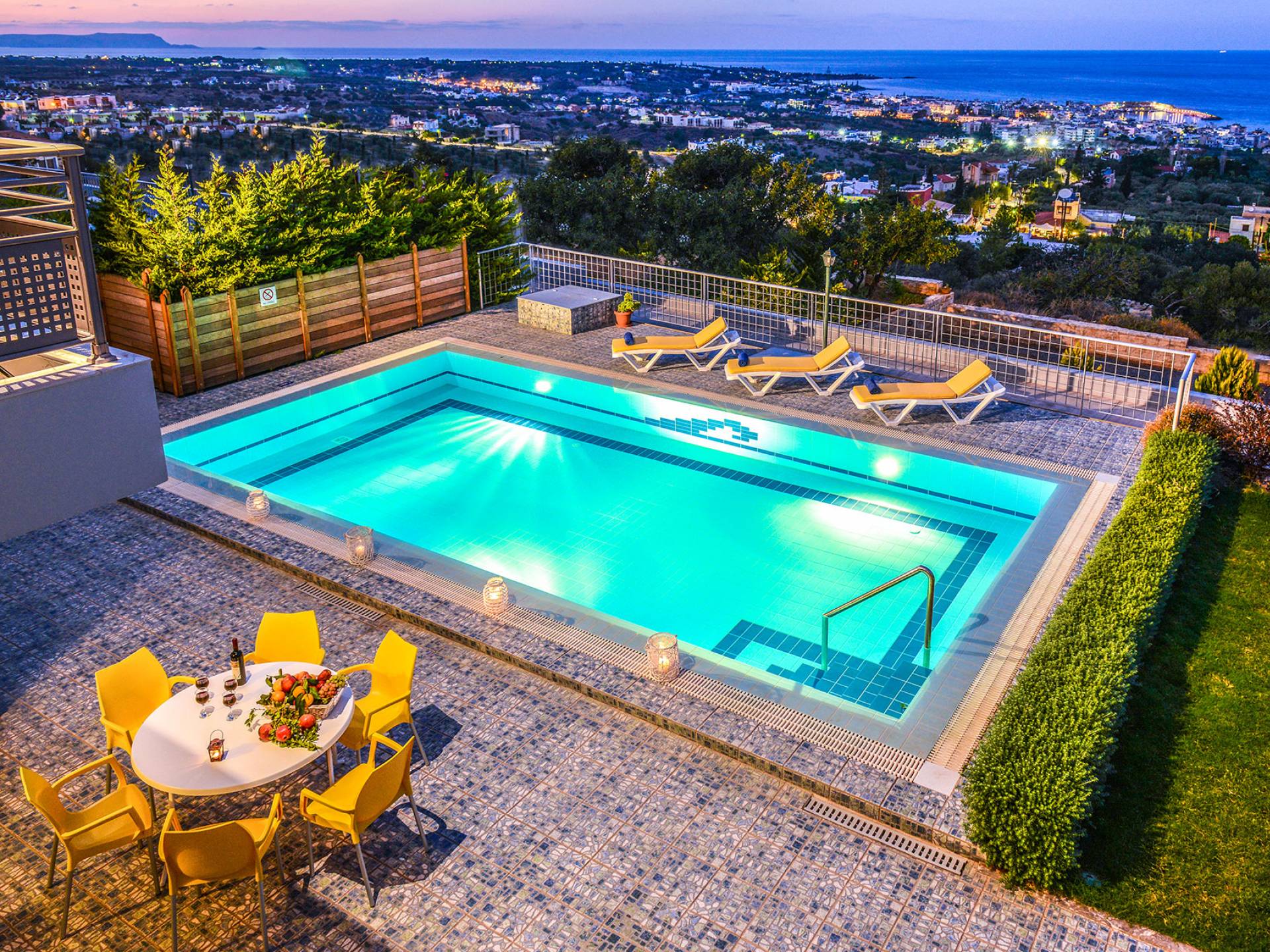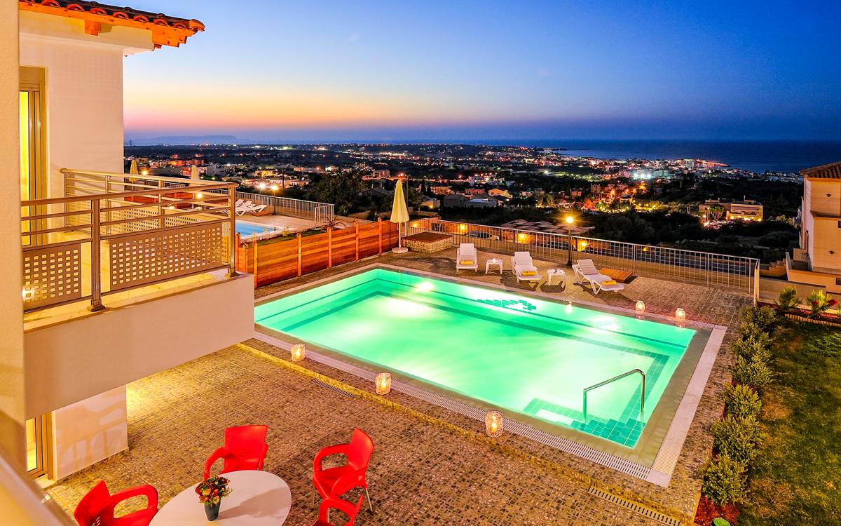 Red Villa at Elio Villas Hersonissos Crete - 3 Bedroom luxury villa with private pool, sea views, pool table & walk to beach location. Near dining, nightlife & Hersonissos.