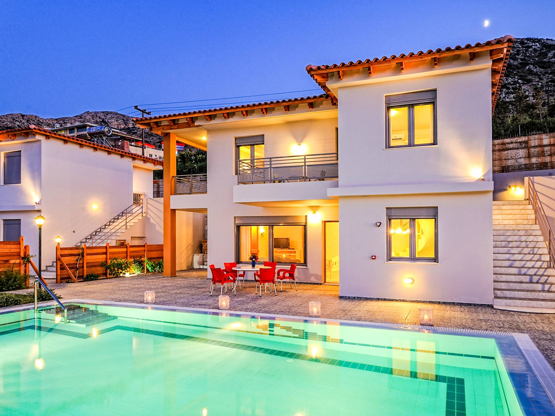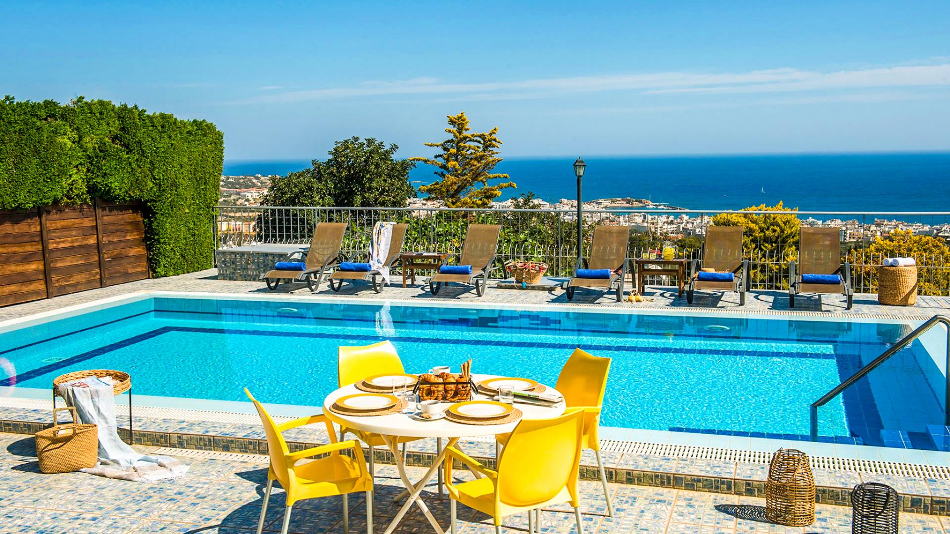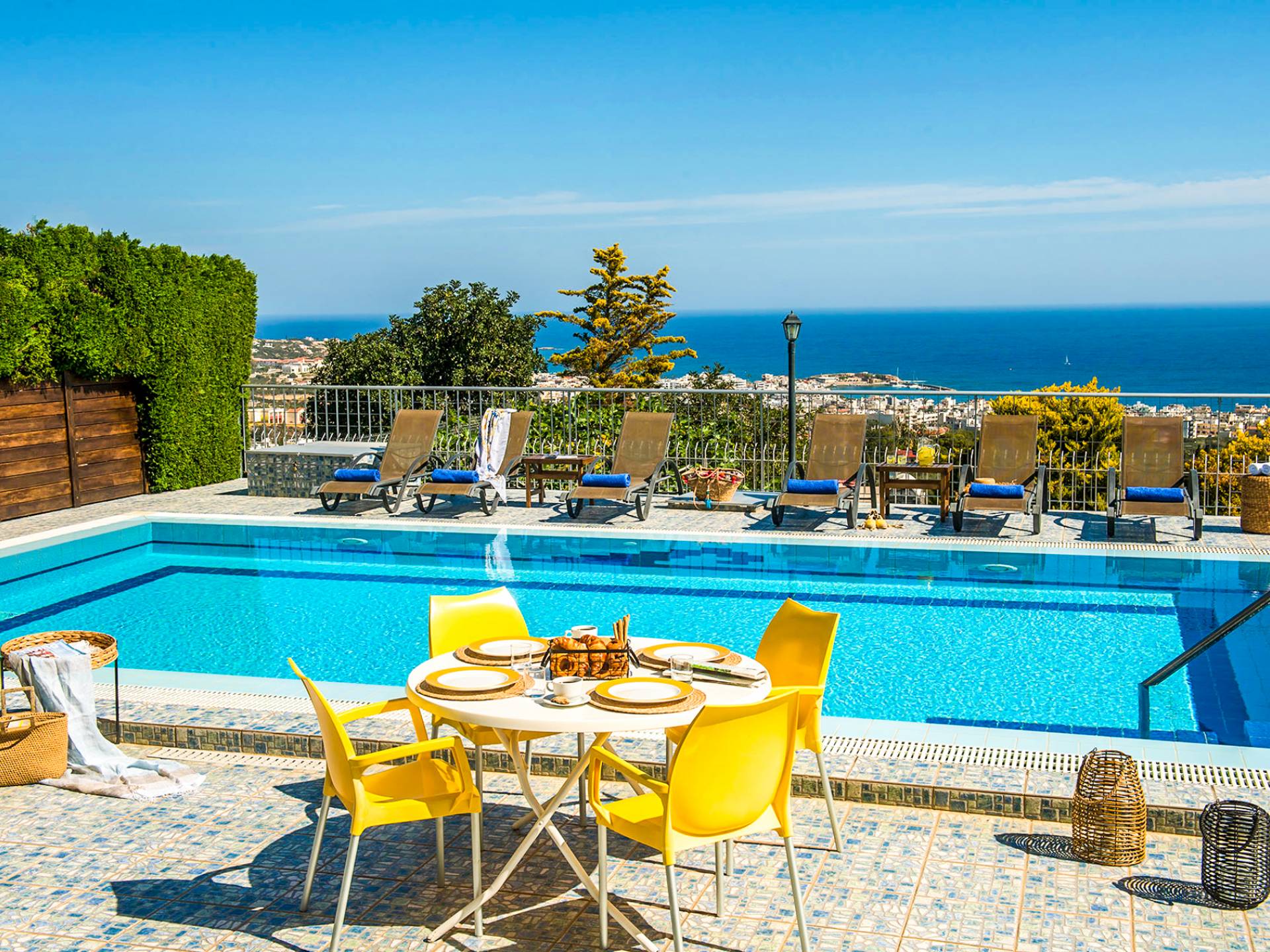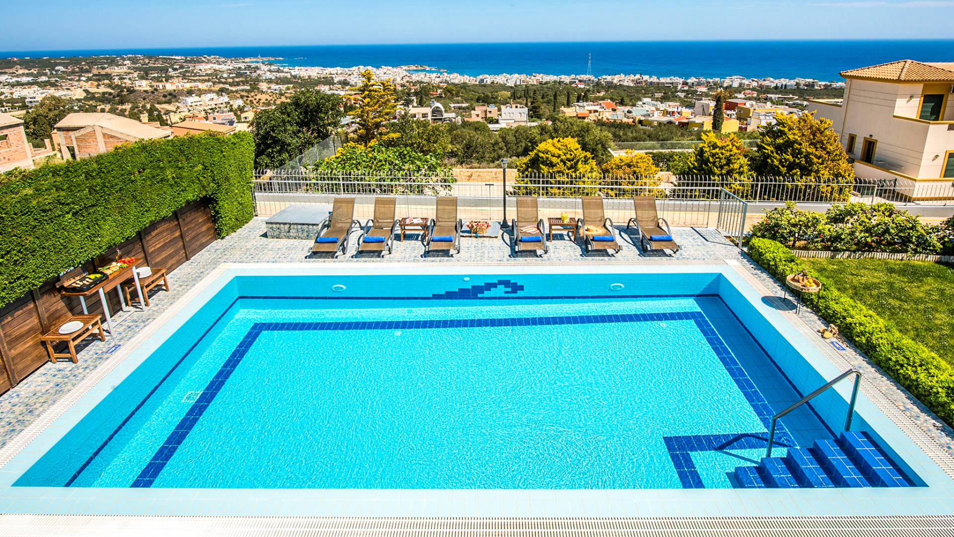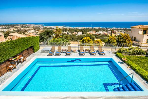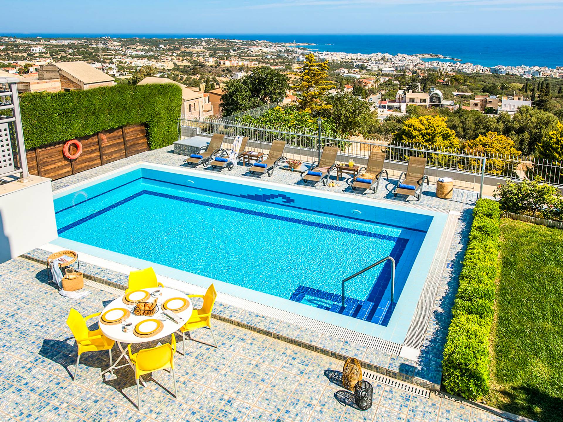 Red Villa at Elio Villas Hersonissos Crete - 3 Bedroom luxury villa with private pool, sea views, pool table & walk to beach location. Near dining, nightlife & Hersonissos.