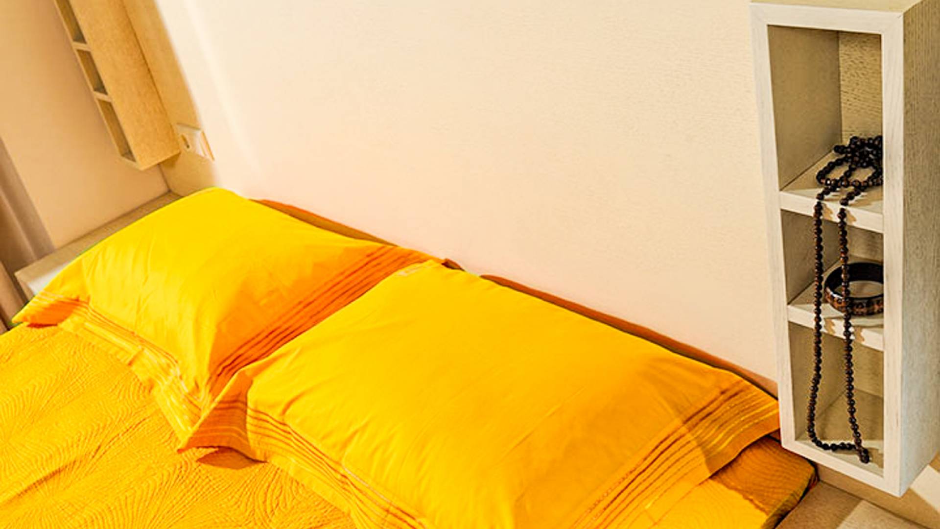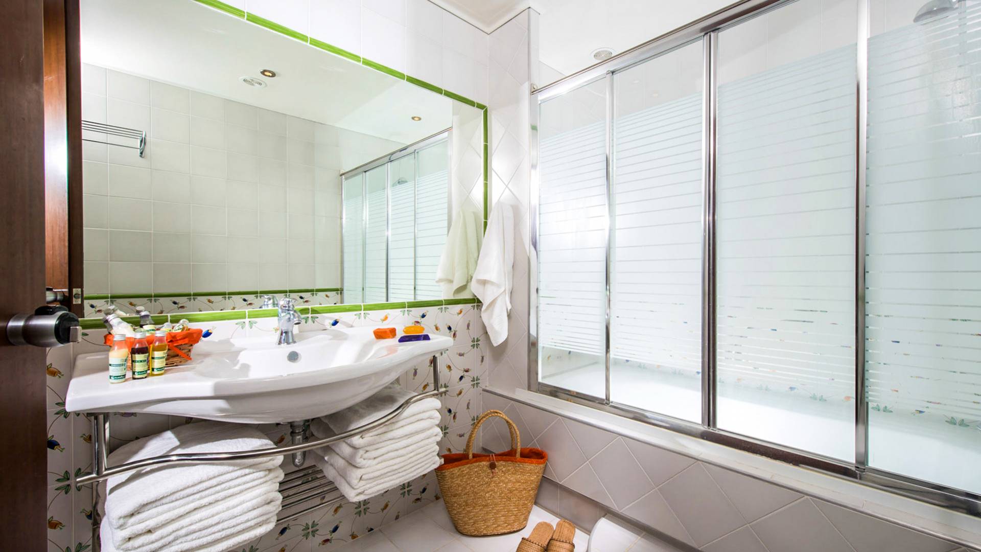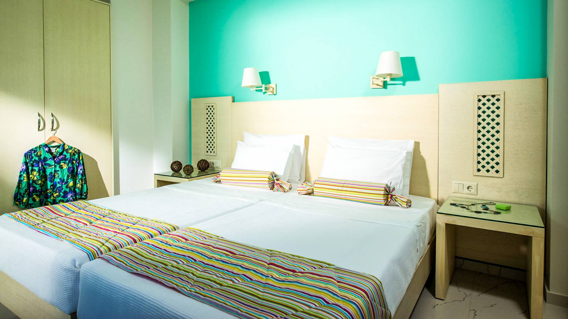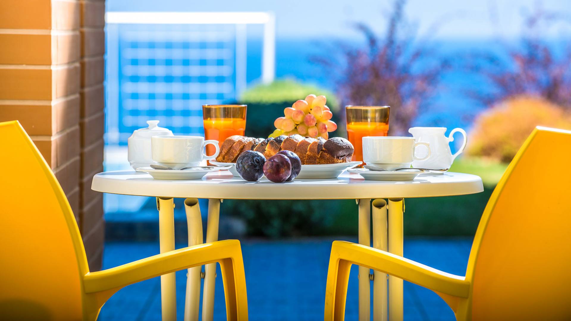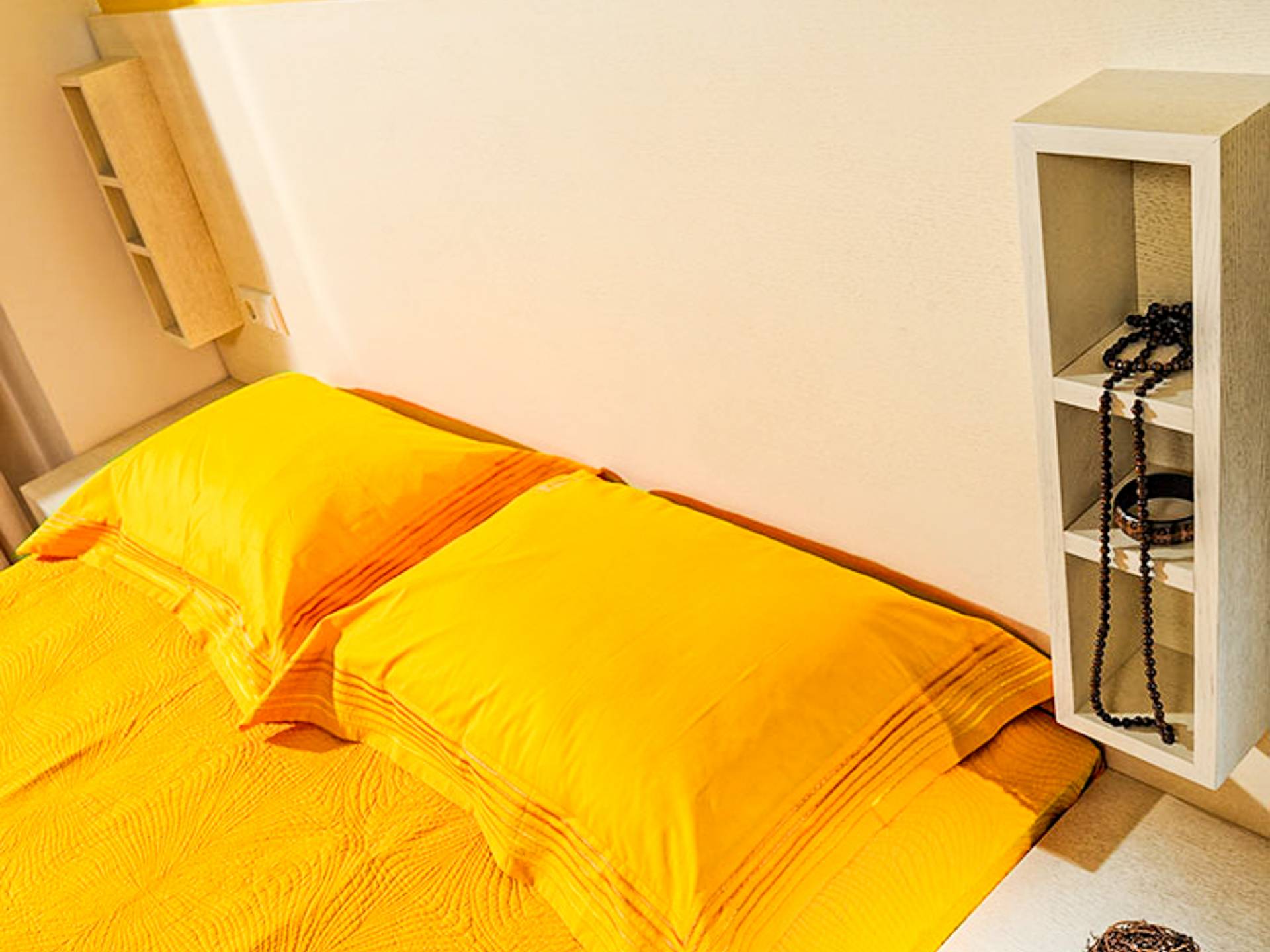 - Bedroom 2 with two single beds (or king) and private balcony with sea view