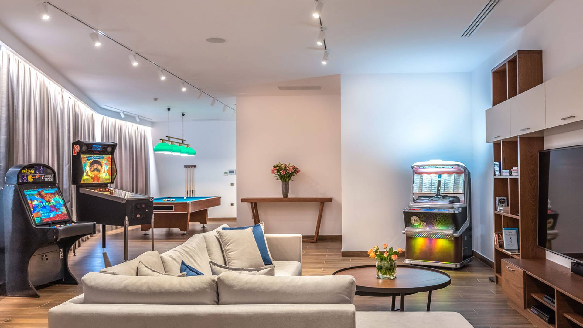 The basement level of the villa is a truly unique space, a 110 m² Man Cave with its own exclusive entrance. The ideal space for family entertainment or for staff accommodation.
