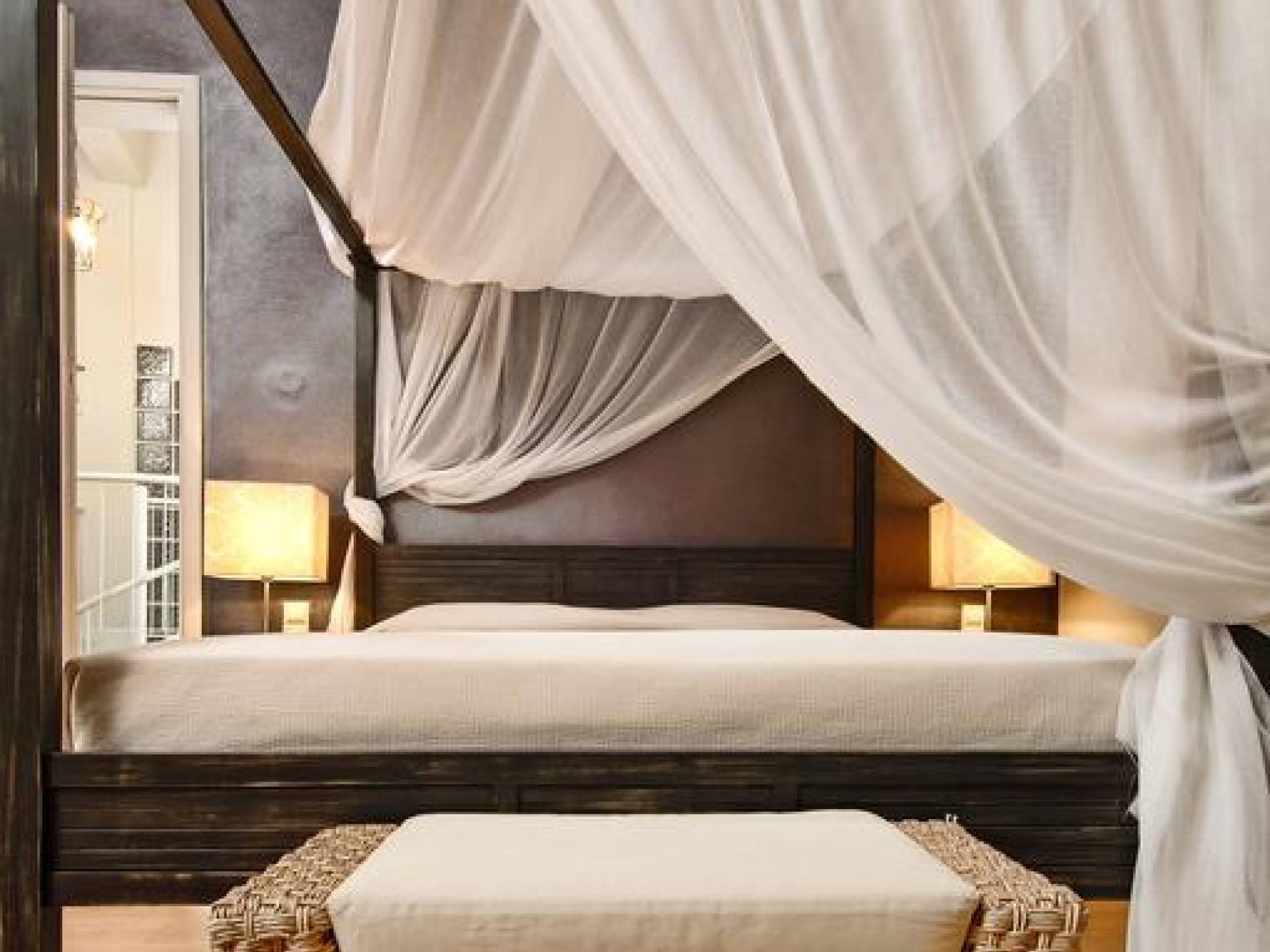 Senior Villas have one bedroom on the first floor of the villa with a marble bathroom and bathtub with a Jacuzzi on the ground floor and offer the flexibility to host an extra person in the living room. The open plan kitchen and the wide living room with a working fireplace and a sofa bed, provide a cozy and idyllic choice for couples. The private 100m2 garden and the private pool with Jet (heated on request) is the perfect place to relax.