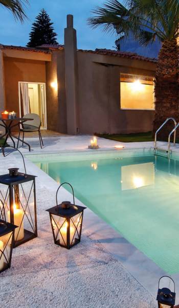 Paradise Island Villas is a unique family-run Boutique Villa Hotel, a complex of 12 elegant luxury villas. Discreetly tucked away in the coastal town of Anissaras, Paradise Island Villas lies just 2km from the cosmopolitan town of Hersonissos. Within the rich landscaped grounds, the authenticity and quiet atmosphere create a fitting ambiance for a collection of 12 individually designed stylish villas, each with its own private grounds and heated pools with jets.