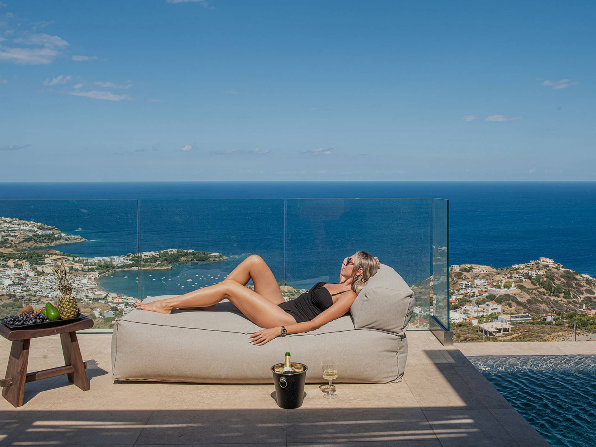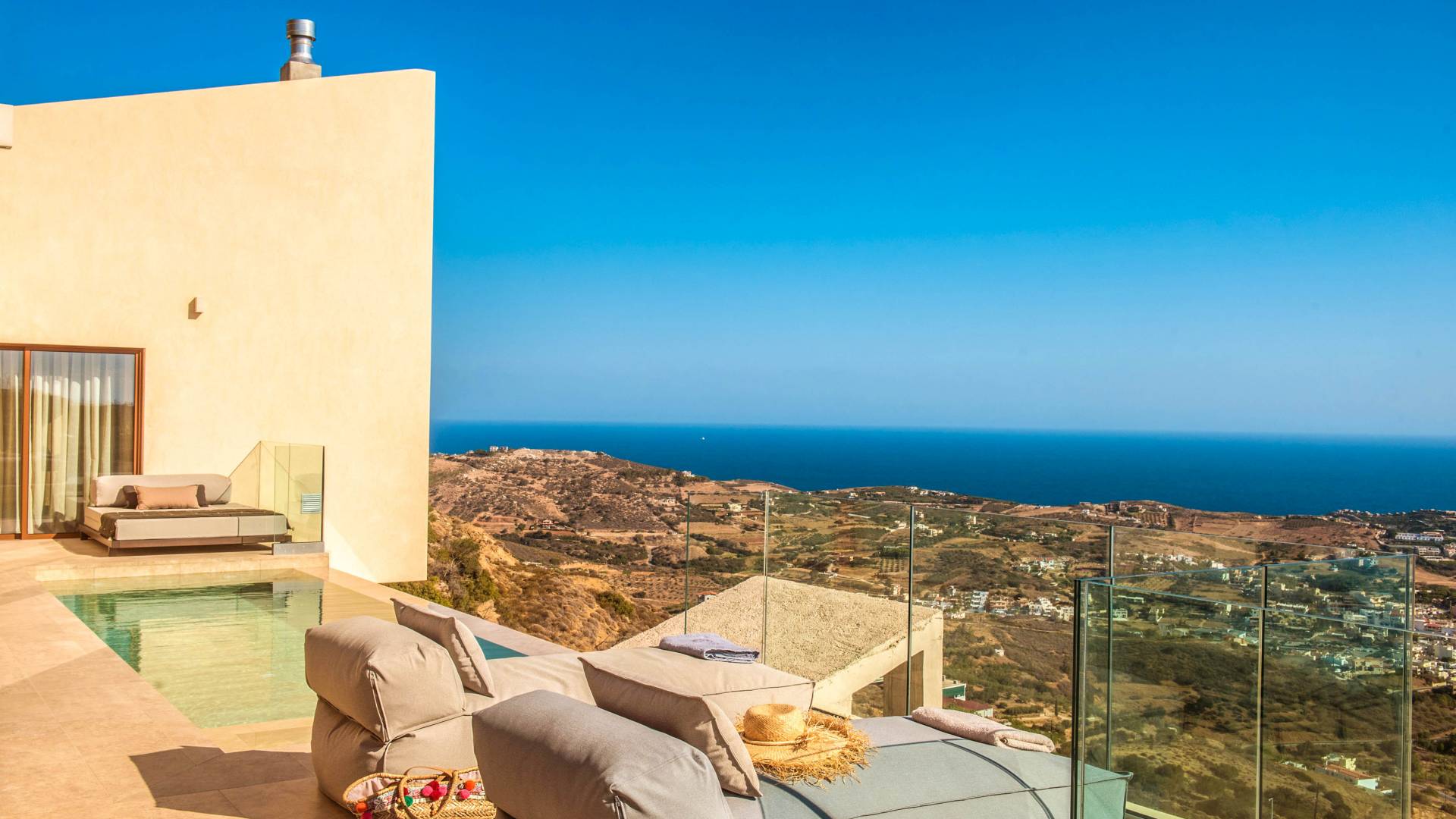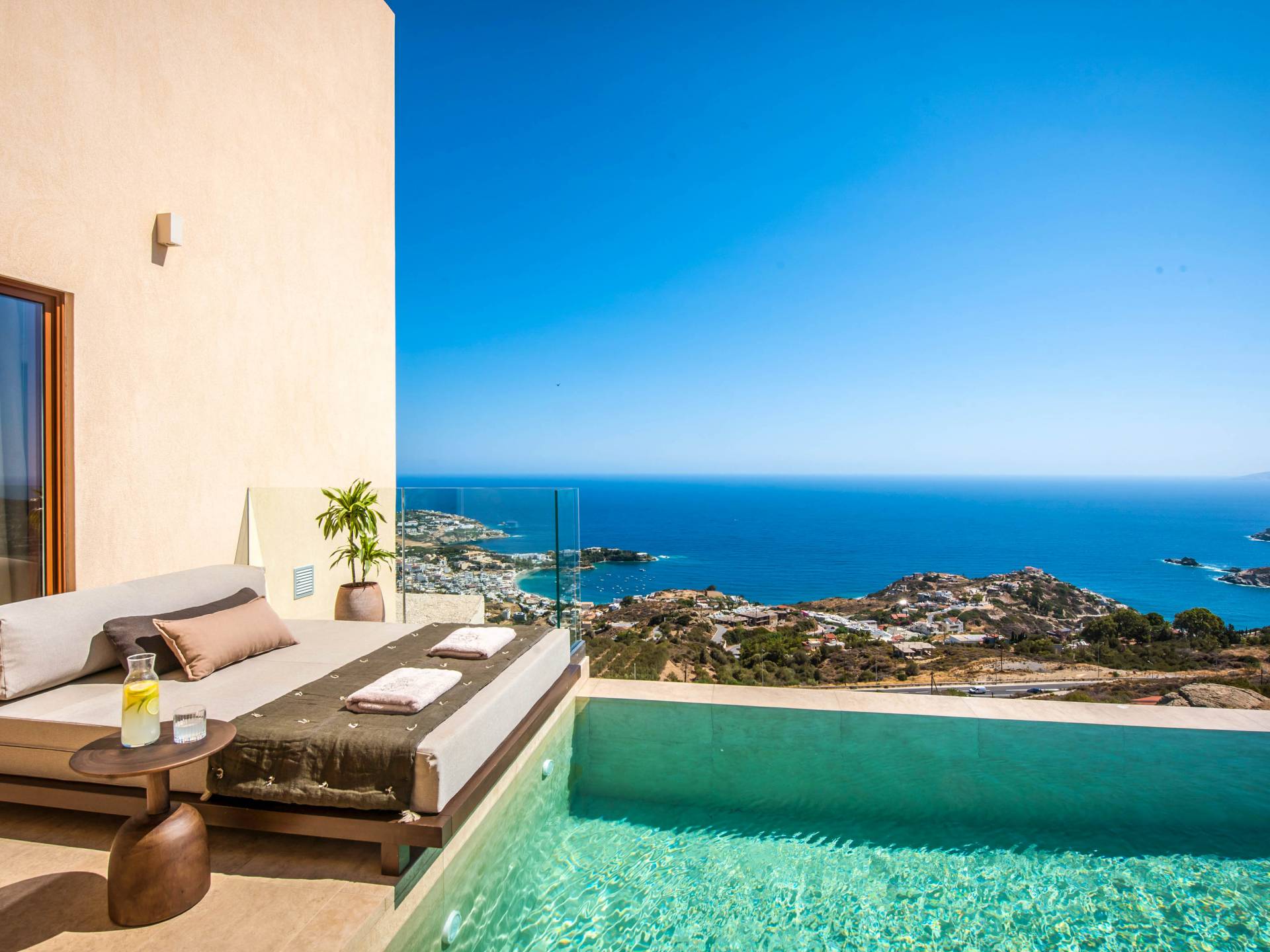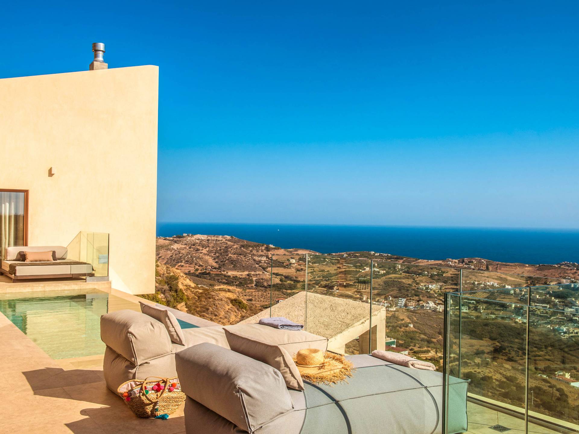 Villa Helios | Alta Vista Villas Crete - Luxury 2 bedroom villa with heated pool, jacuzzi, sauna & stunning sea views. Villa Helios is located in Agia Pelagia, Crete. Lowest Price Guarantee!