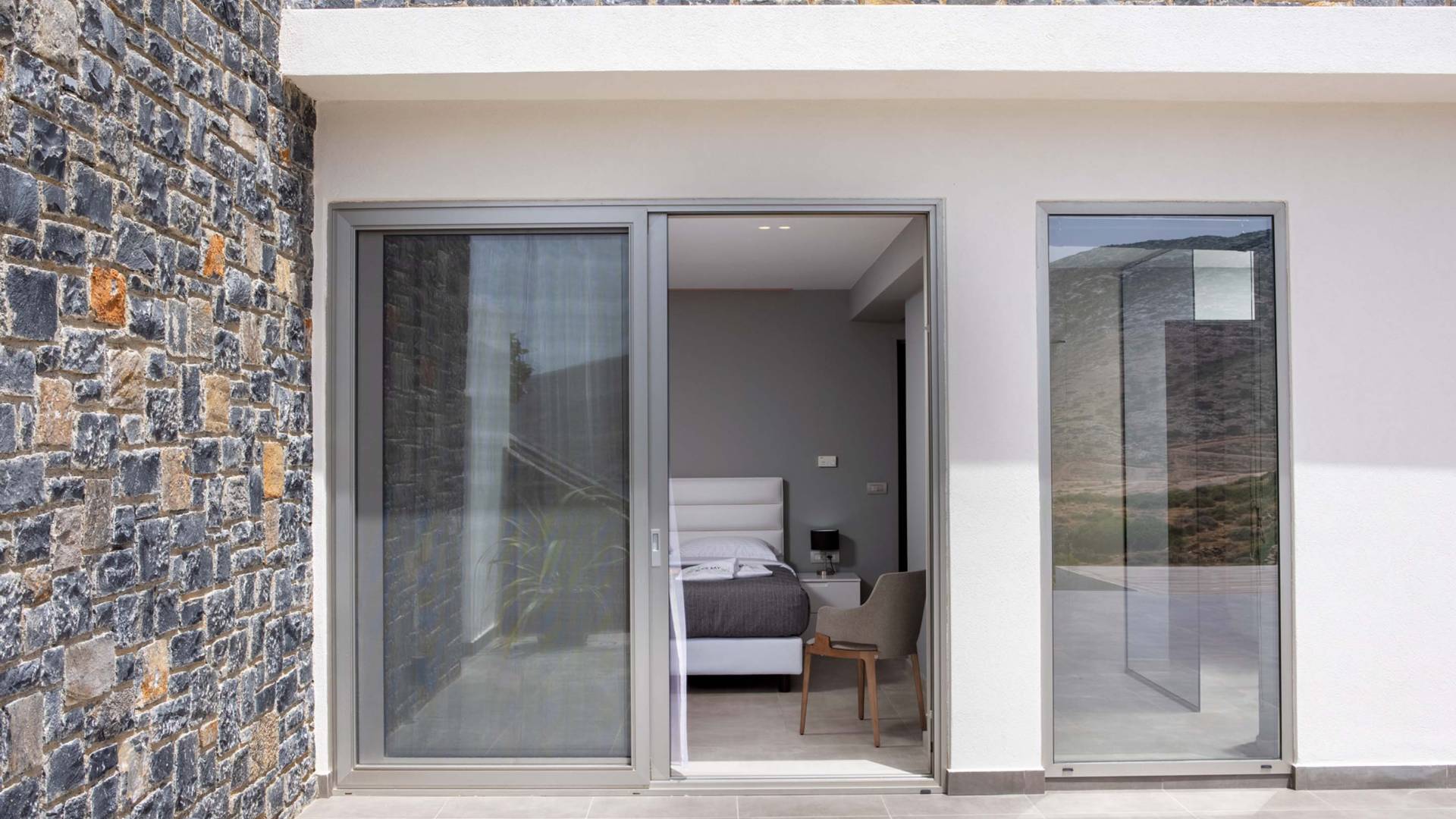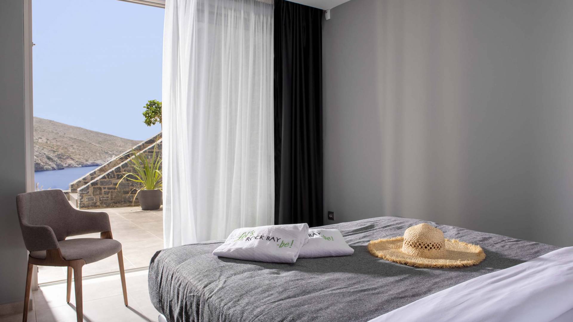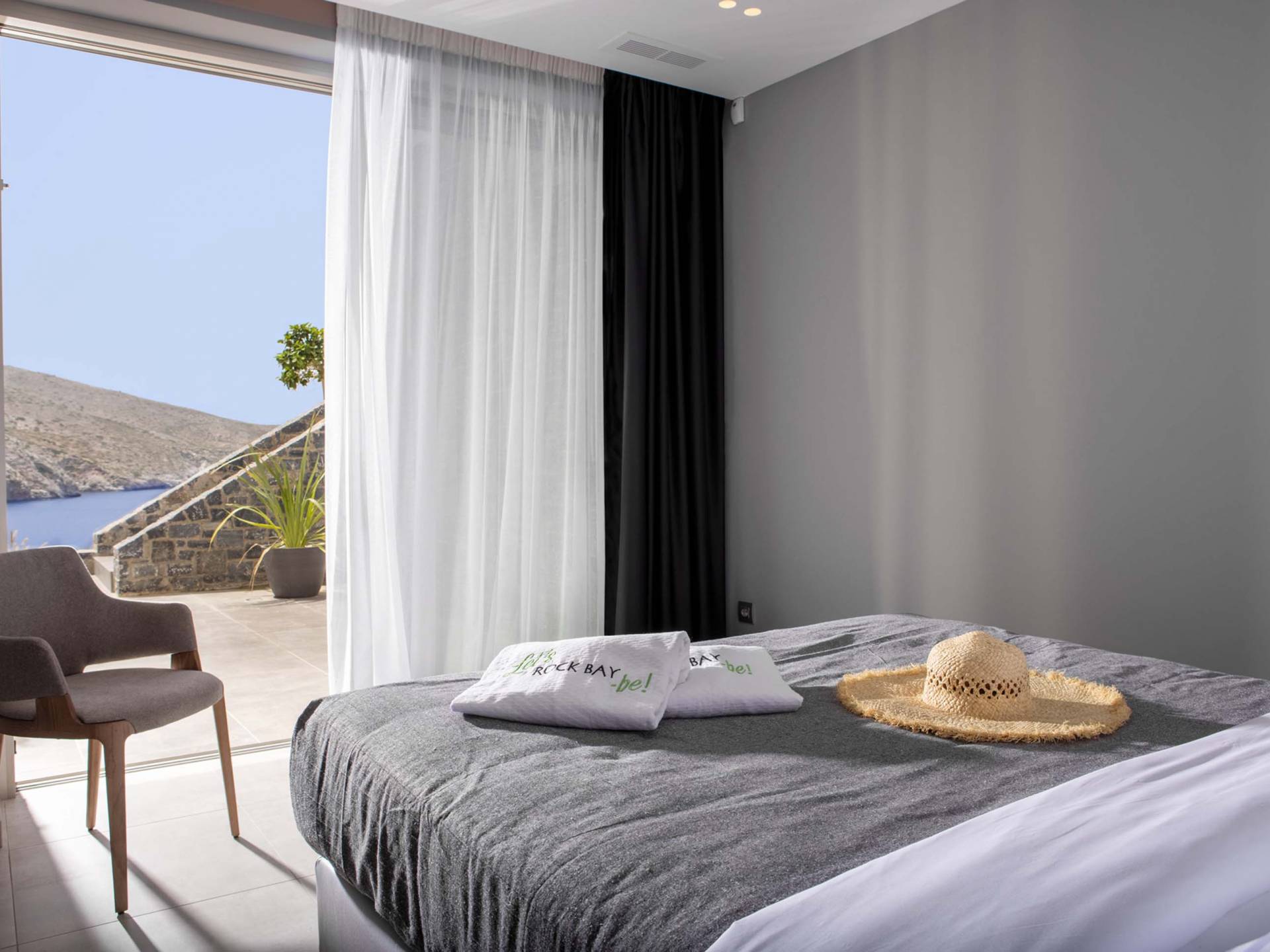 Rock Bay Villas is a privately guarded complex of 4 villas with panoramic views of the Mediterranean Sea. Located on a picturesque slope of Crete island, the elegant and contemporary villas will offer you privacy and a comfortable stay in a cozy bay with a private beach. Each villa has terraces with panoramic views, a pergola with a kitchen and grill, and a dining area. Private swimming pools with fresh water and heating option