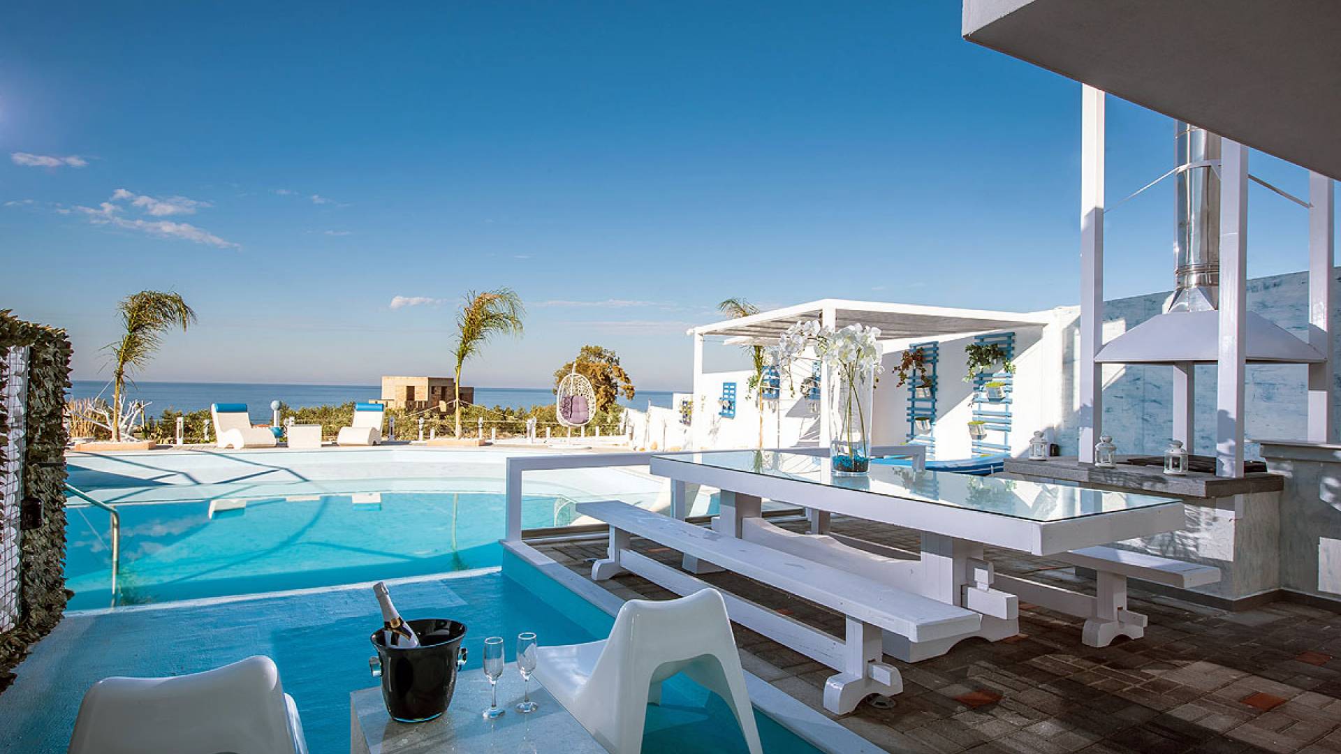 Color blue, sun and luxury, nothing can beat this combination. What else is there to ask for your vacation? Indulge yourself in a heated private pool in the coziness of your own villa, either an indoor or outdoor one. The water is healing and therapeutic…