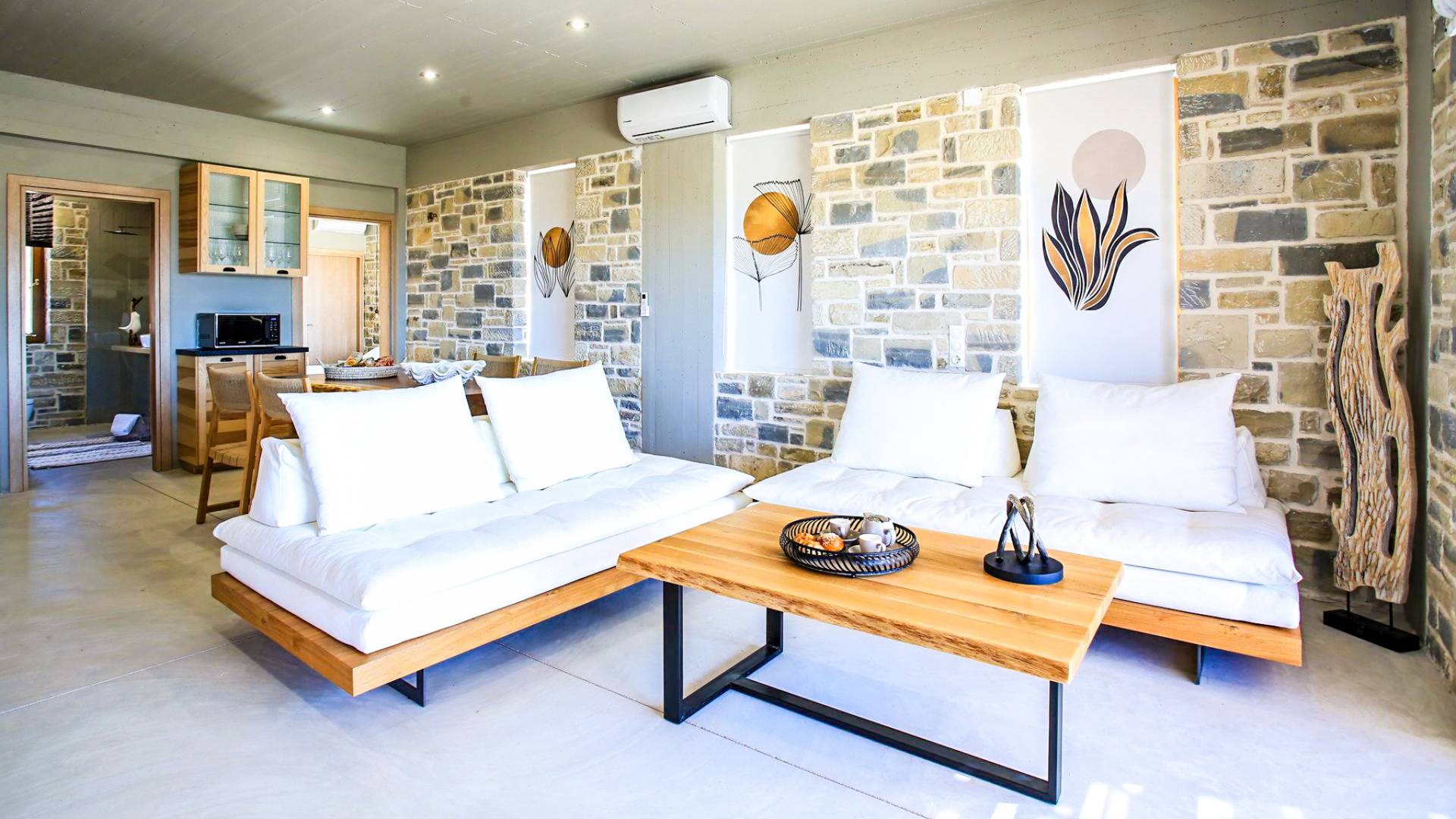 Zen Villas South Crete is an exclusive complex of three luxury villas, offering unobstructed sea views and complete privacy amid Crete’s natural beauty. Each villa features its own spacious garden, private terrace, and an infinity pool that can be heated upon request, creating a serene setting for relaxation. The exterior design blends harmoniously with the surrounding landscape, while the interiors combine stone and wood in a modern yet cozy style. With two bedrooms in each villa, all featuring en-suite bathrooms and COCO-MAT eco-friendly mattresses, guests are guaranteed exceptional comfort and restful sleep. Zen Villas South Crete promises a tranquil, refined holiday experience where nature, privacy, and comfort come together effortlessly.