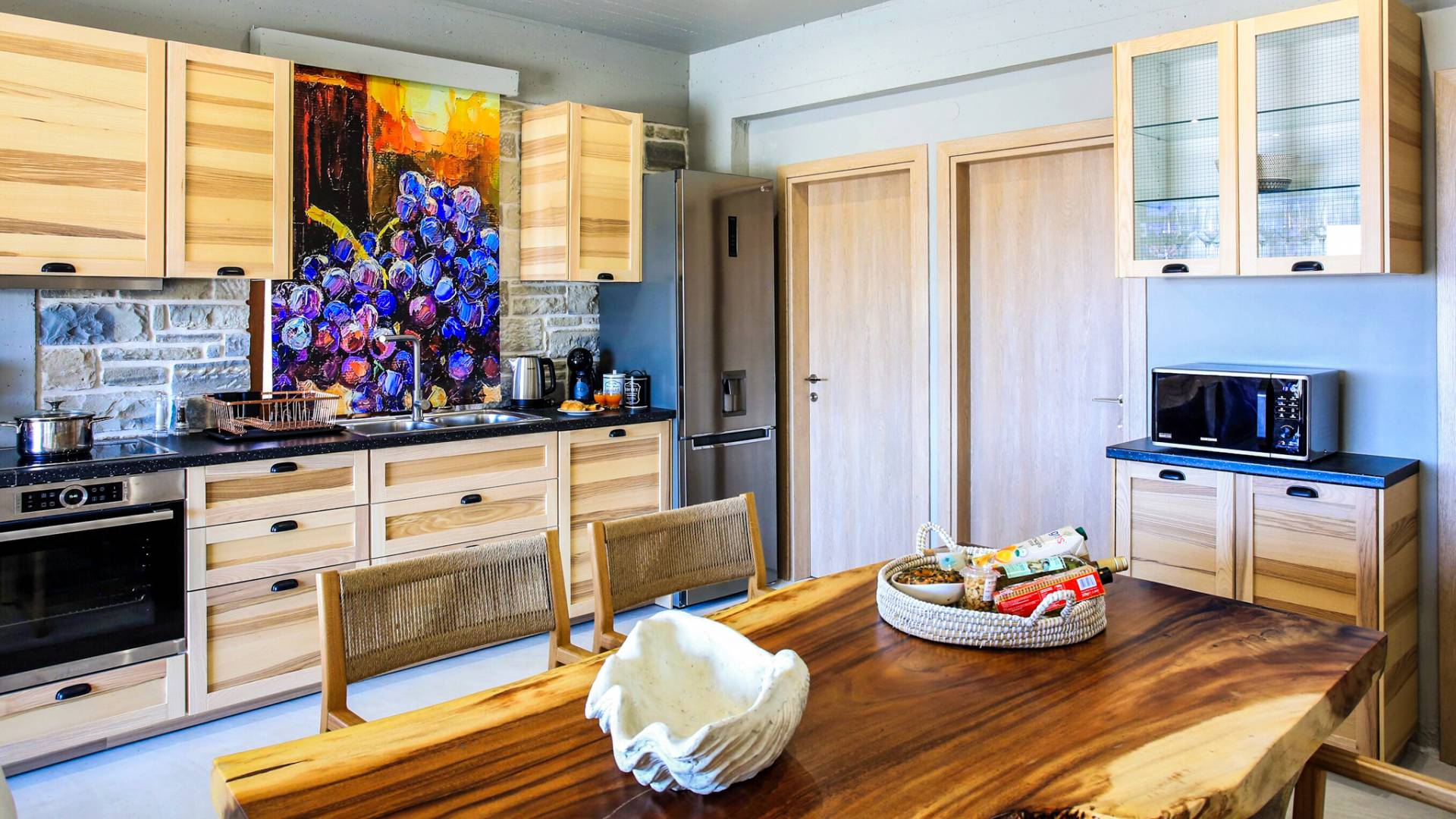 Cook like a chef in a modern kitchen stocked with high-end appliances, all within an elegant dining space ideal for family meals or entertaining.