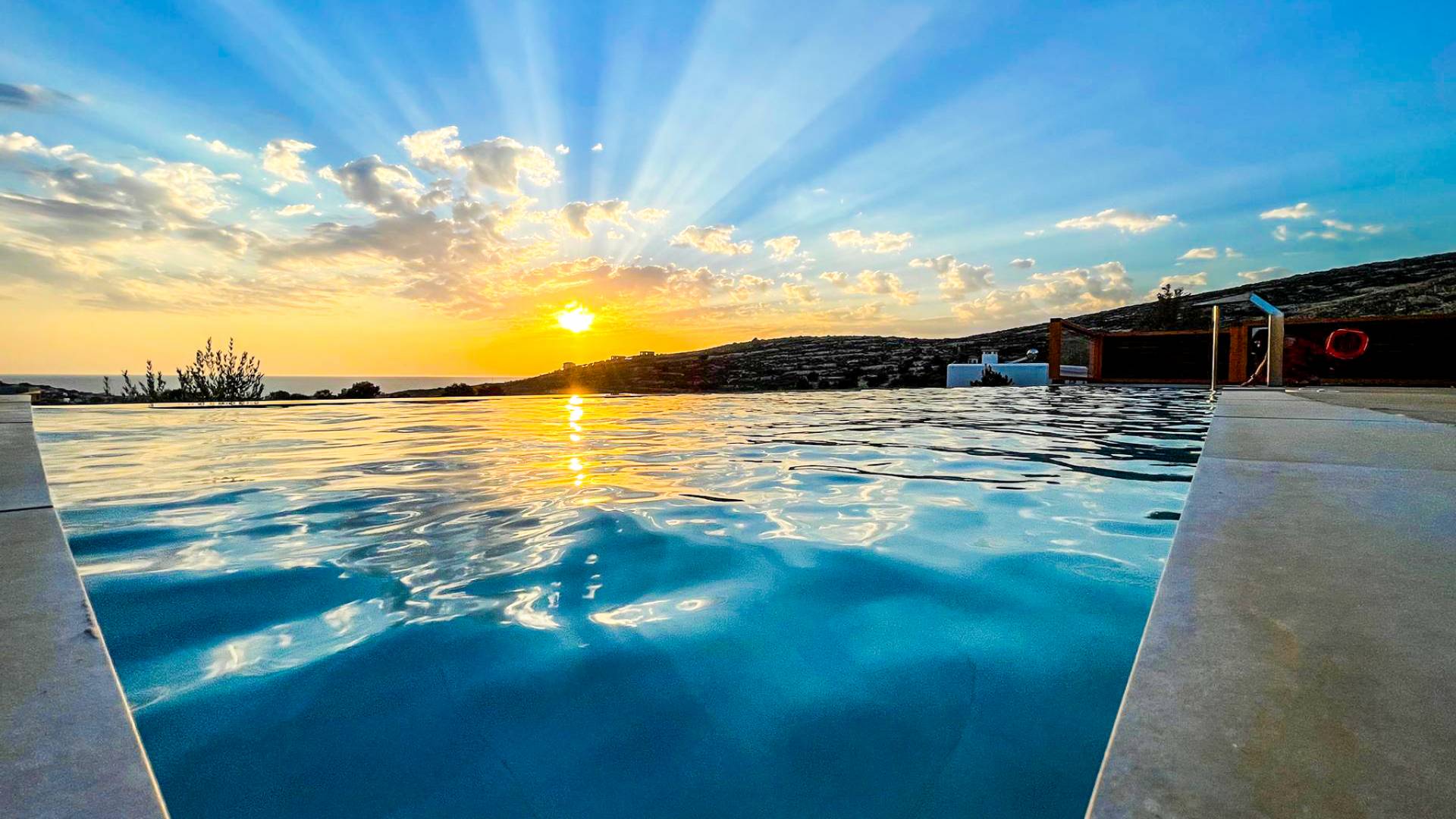 - 32 m² Private infinity heated pool with hydro massage jets and a waterfall jet