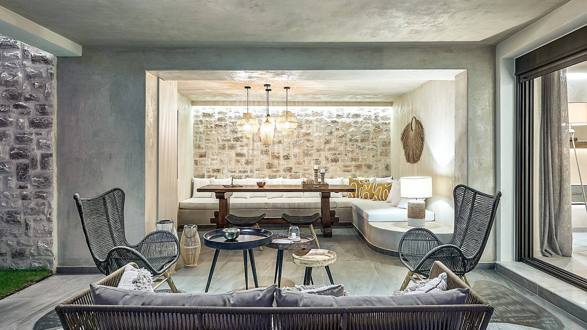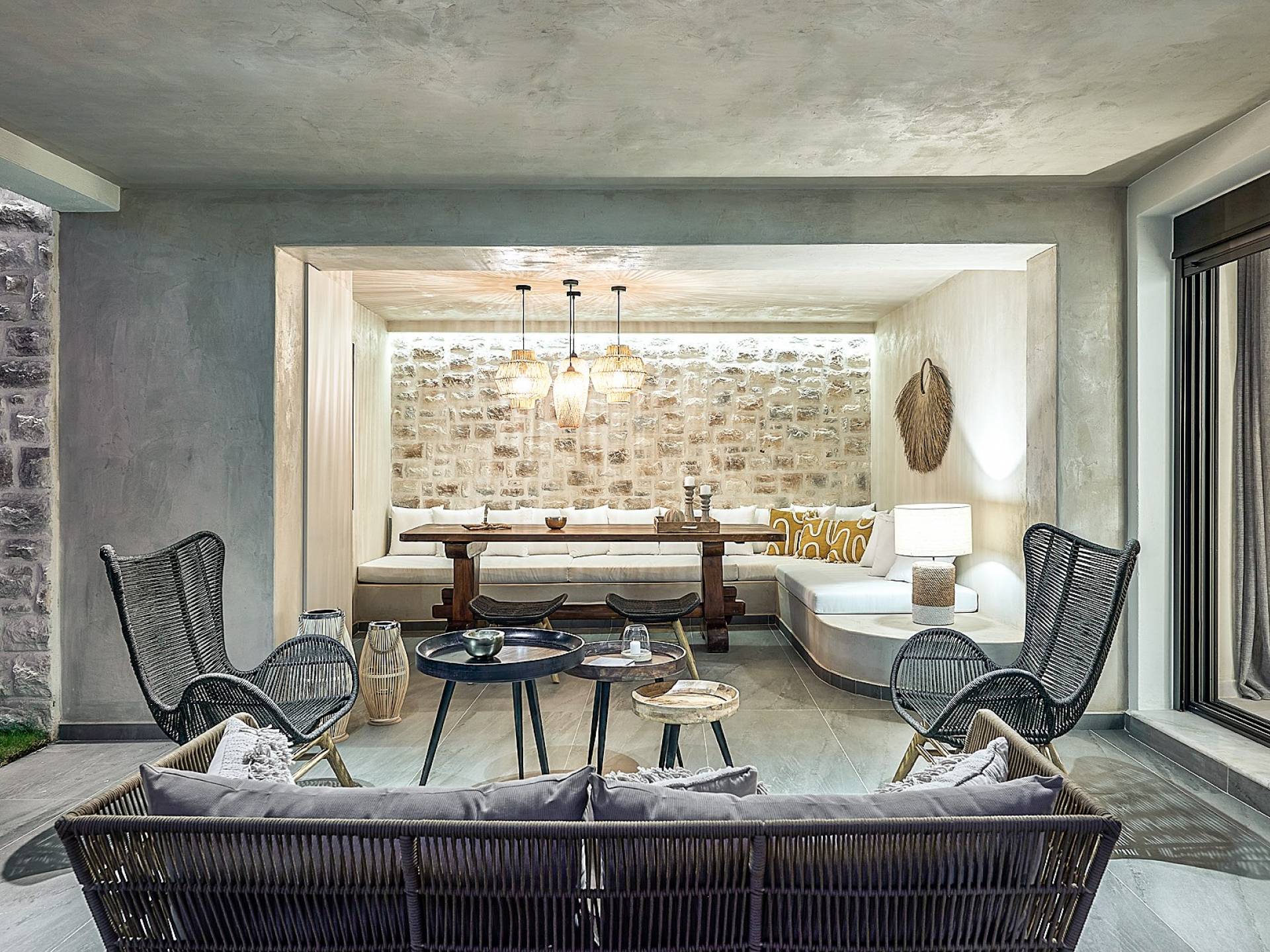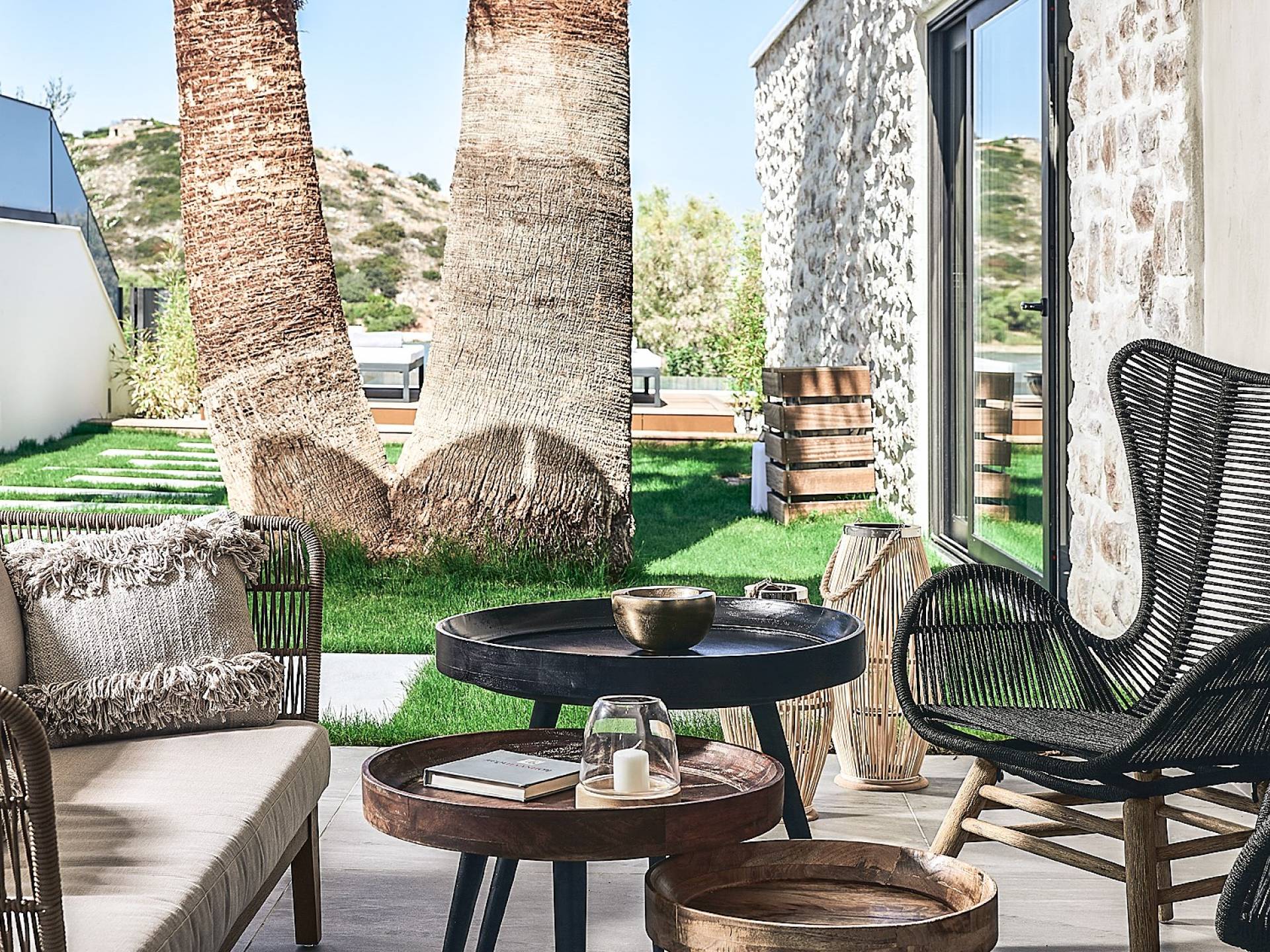 With 120sqm of space, from the spacious living room and fully equipped kitchen to the unique decor, this secluded two-bedroom villa is ideal for guests looking to enjoy their getaway surrounded by lush landscape and complete privacy. A Boheme and calm aesthetic is imbued throughout the Rock Sand Villa, which presents beauty in every corner. If you want space to relax, there are plenty of lounge areas to laze in – whether it’s a sun lounger by the pool or enjoying the Steam Bath, feasting on the outdoor barbecue, or basking under the shade of a magnificent tree. Escape the crowds of Crete and stay within a villa that has something for everyone, brimming with exclusive services and modern amenities directly on the beach.