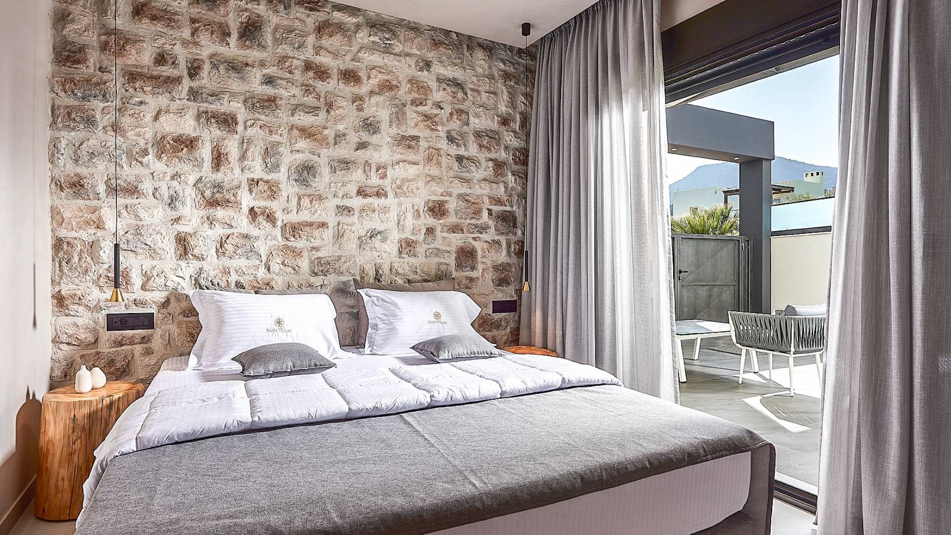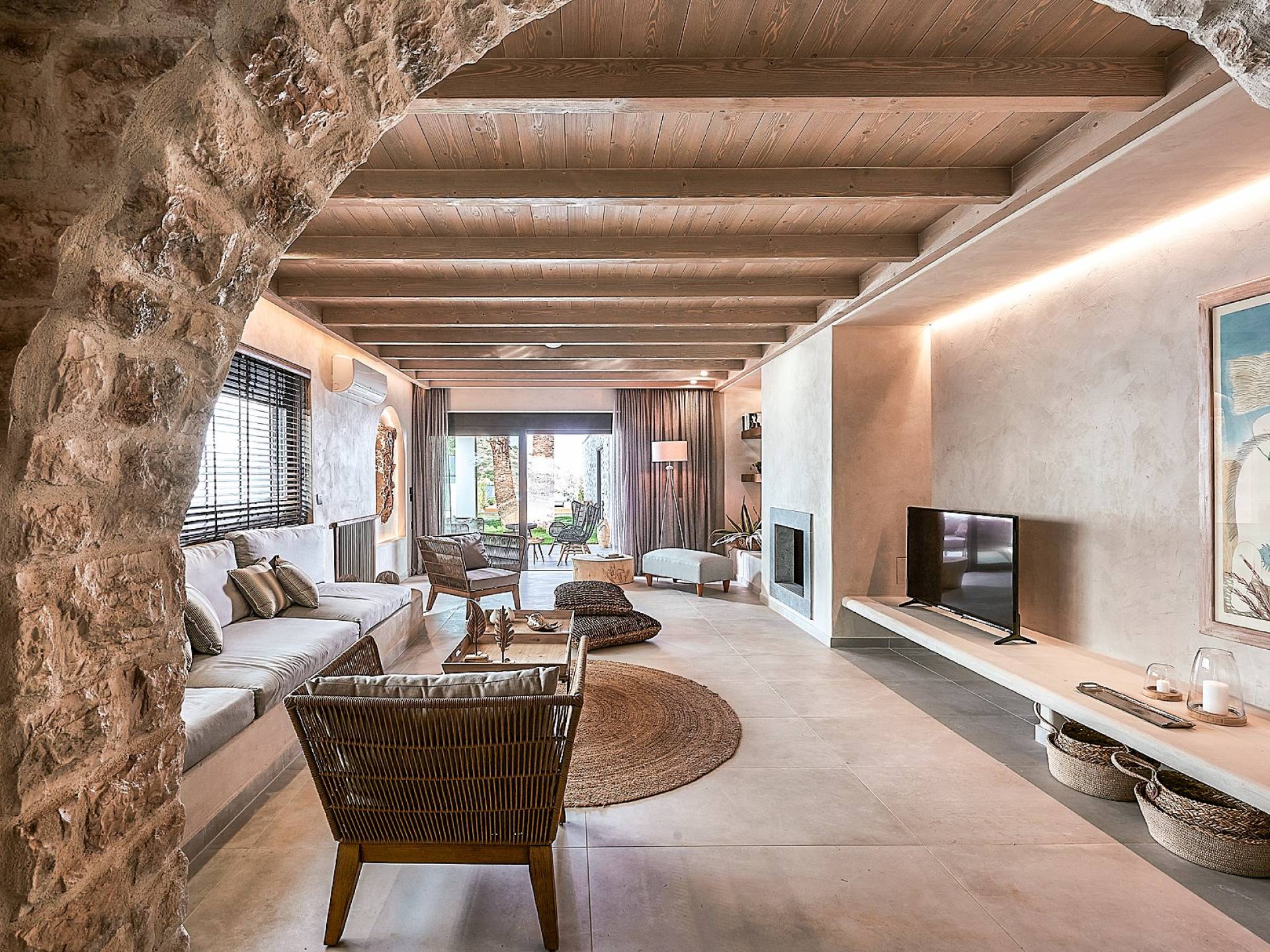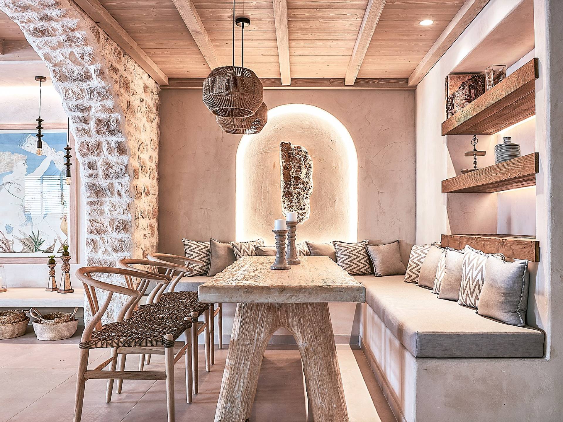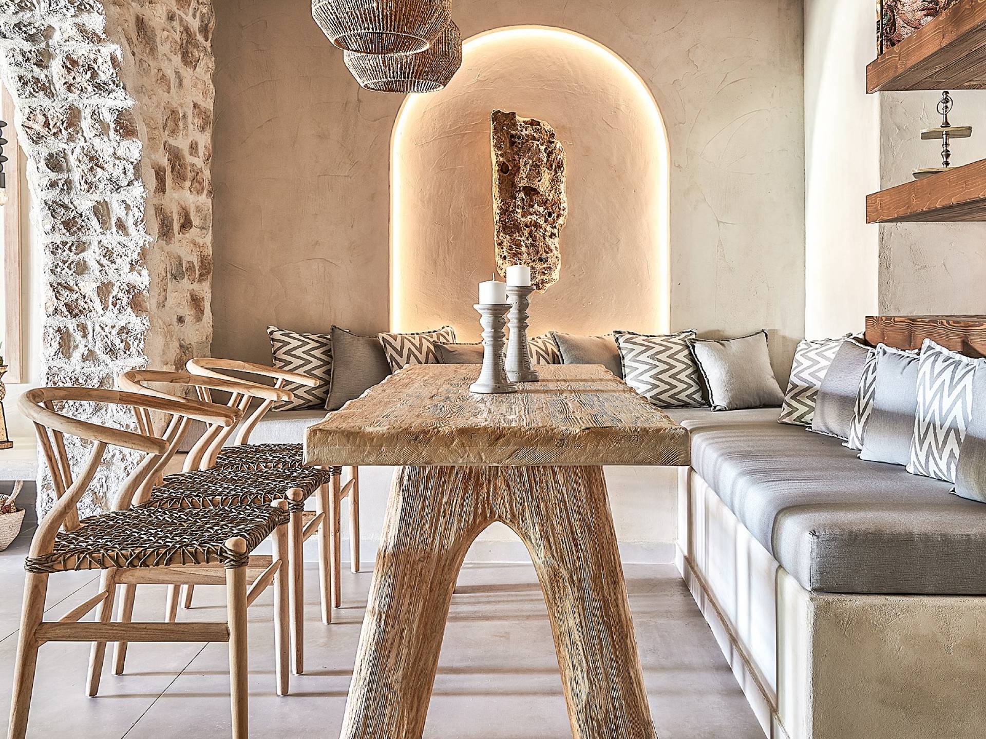 With 120sqm of space, from the spacious living room and fully equipped kitchen to the unique decor, this secluded two-bedroom villa is ideal for guests looking to enjoy their getaway surrounded by lush landscape and complete privacy. A Boheme and calm aesthetic is imbued throughout the Rock Sand Villa, which presents beauty in every corner. If you want space to relax, there are plenty of lounge areas to laze in – whether it’s a sun lounger by the pool or enjoying the Steam Bath, feasting on the outdoor barbecue, or basking under the shade of a magnificent tree. Escape the crowds of Crete and stay within a villa that has something for everyone, brimming with exclusive services and modern amenities directly on the beach.