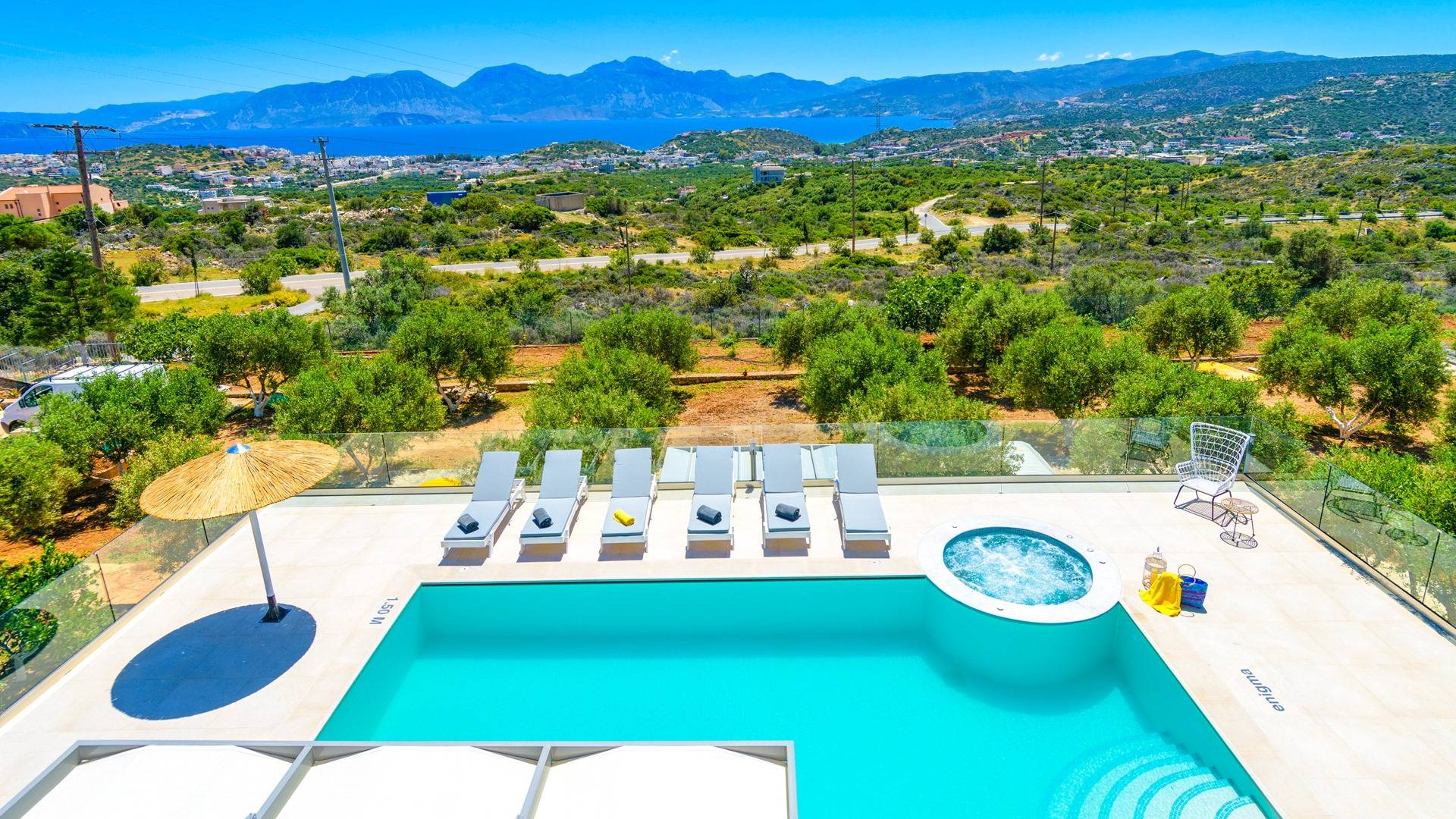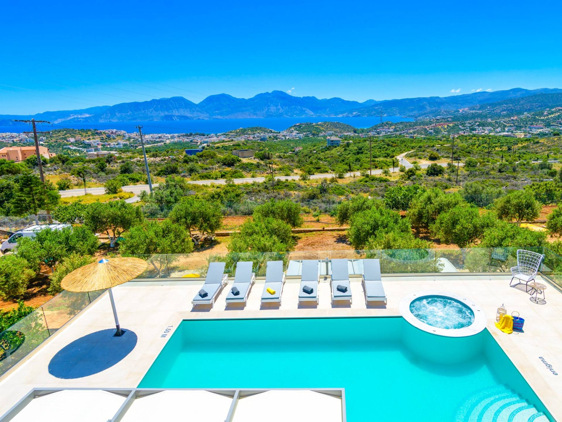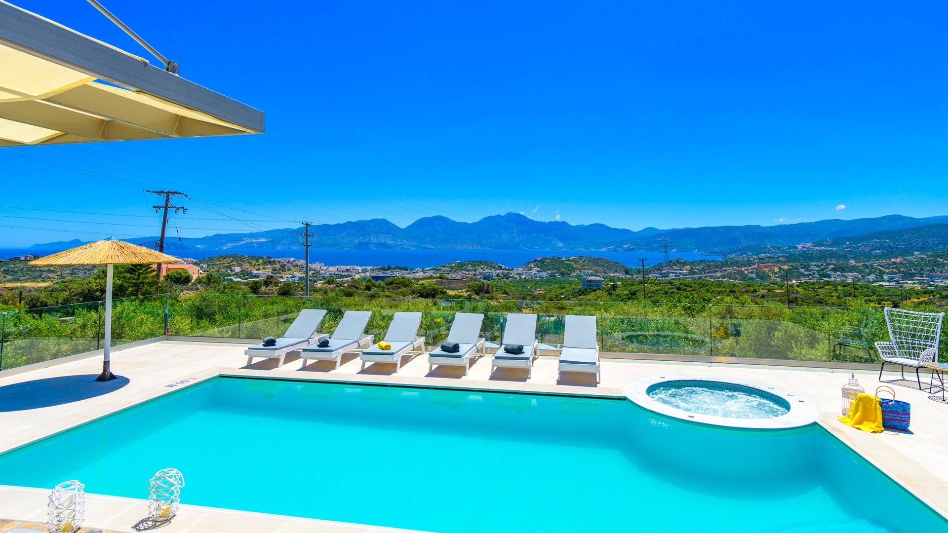 Villa Amine Crete - 3BR sea-view villa with private pool & jacuzzi. 3 mins to Almyros Beach near Agios Nikolaos & Elounda. Sleeps 8.
