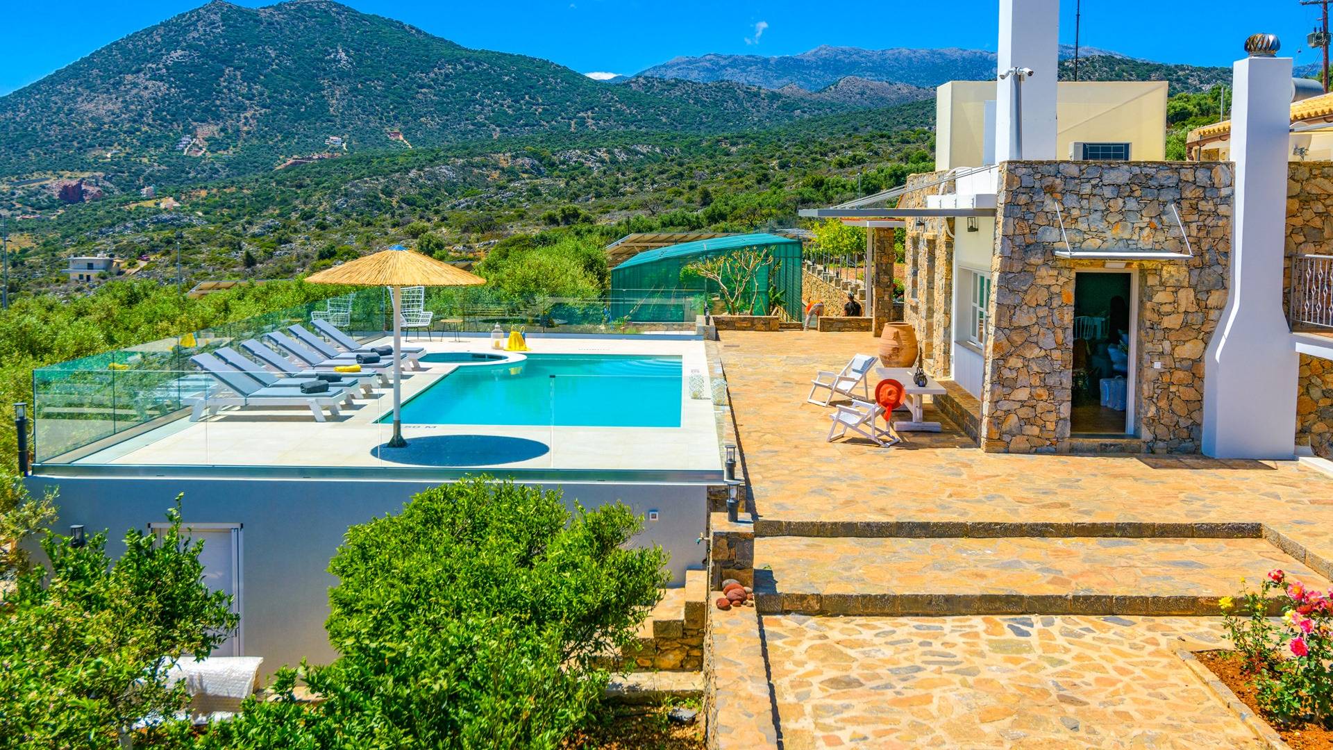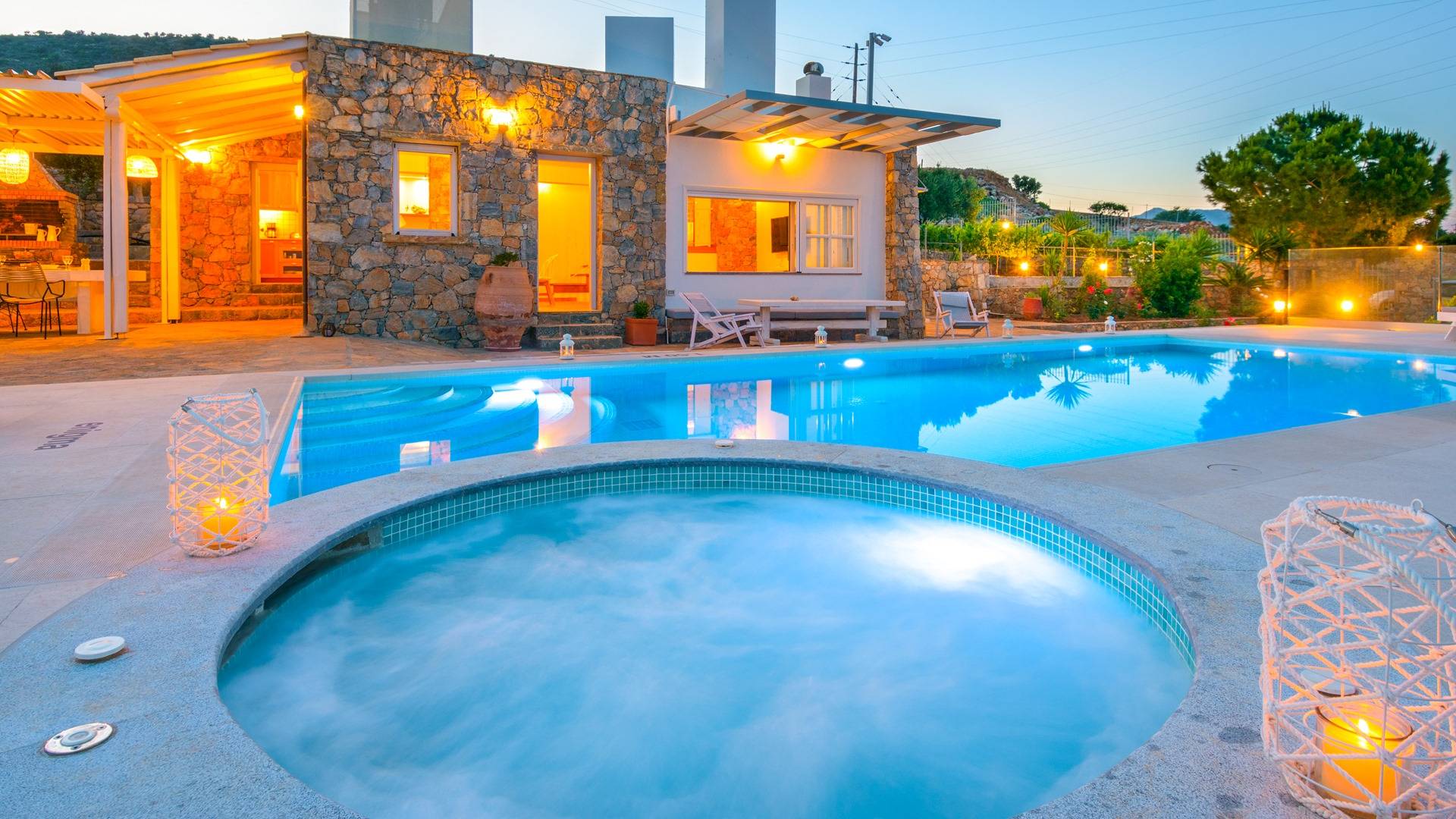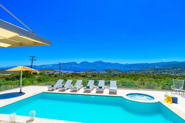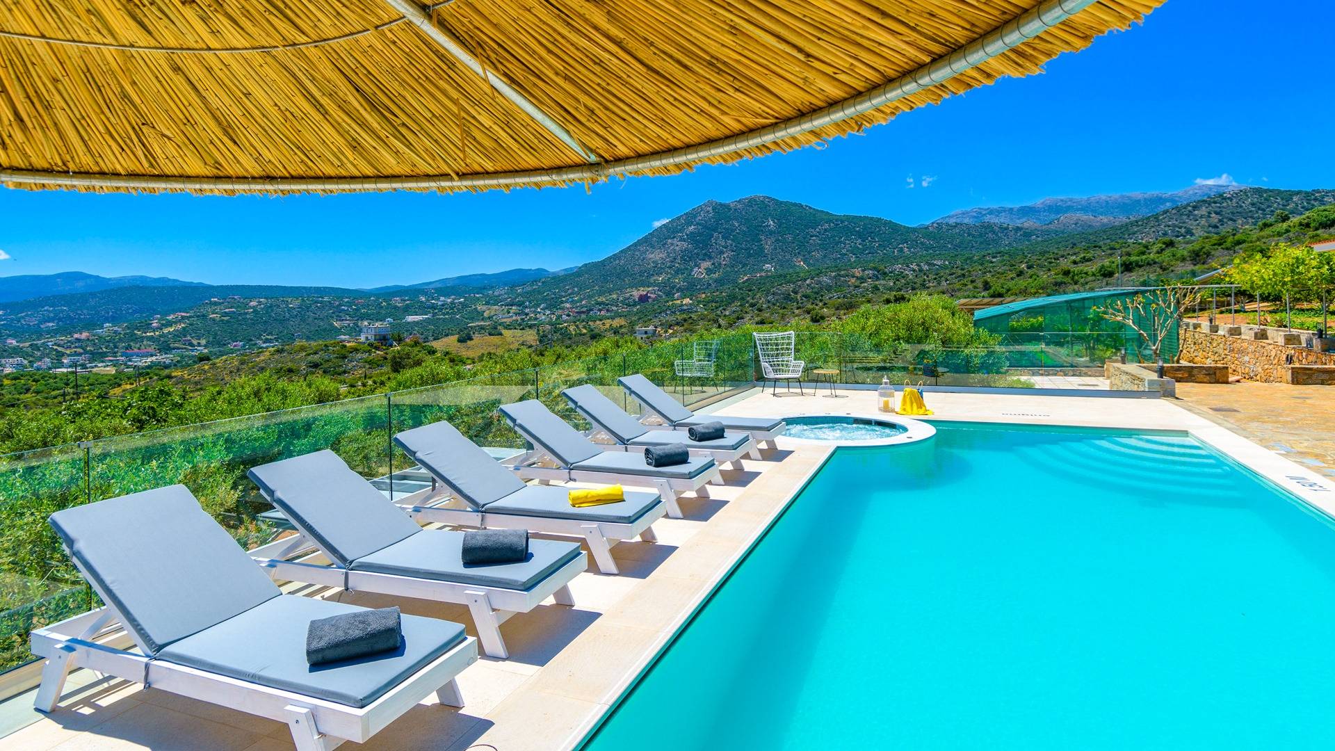 Villa Amine Crete - 3BR sea-view villa with private pool & jacuzzi. 3 mins to Almyros Beach near Agios Nikolaos & Elounda. Sleeps 8.