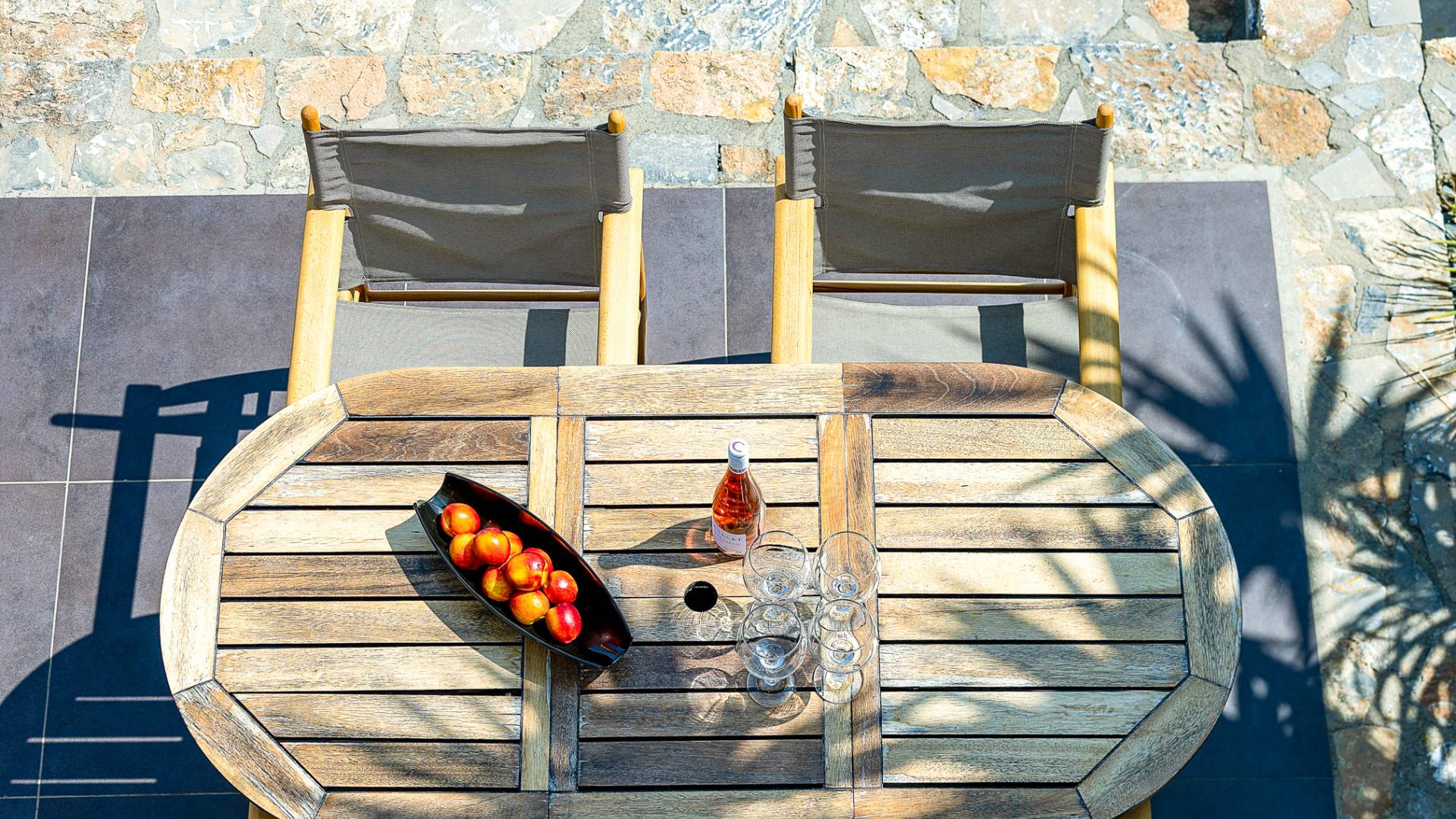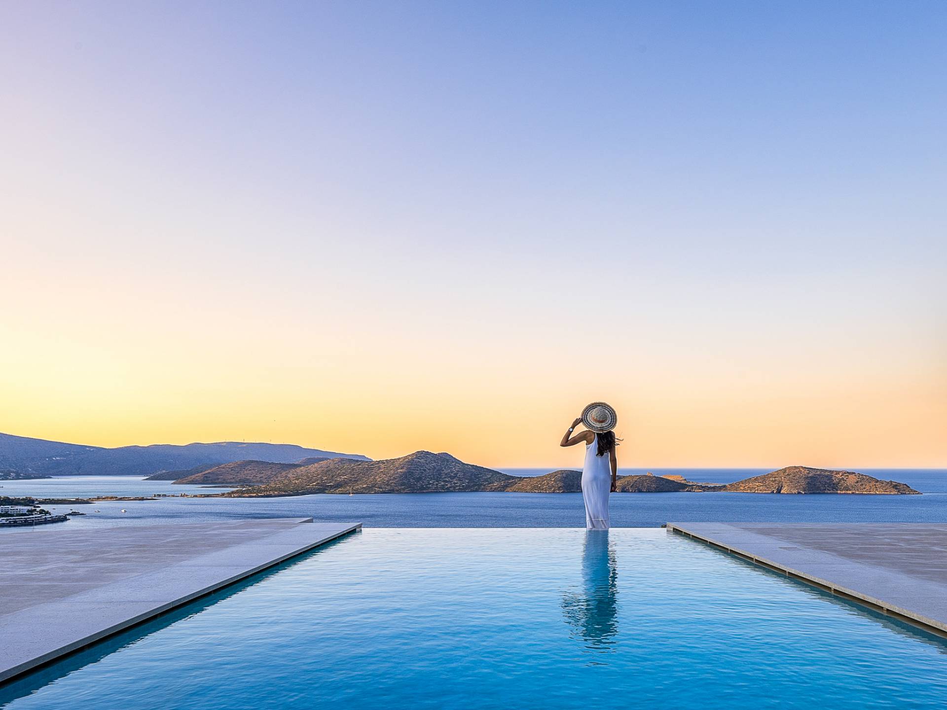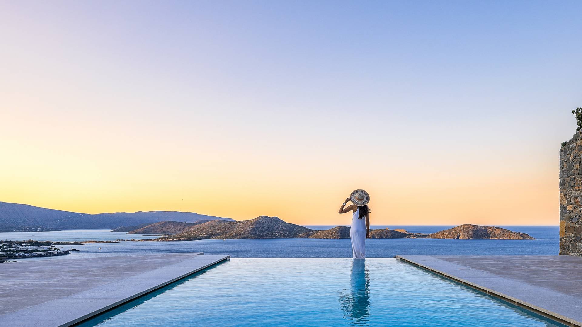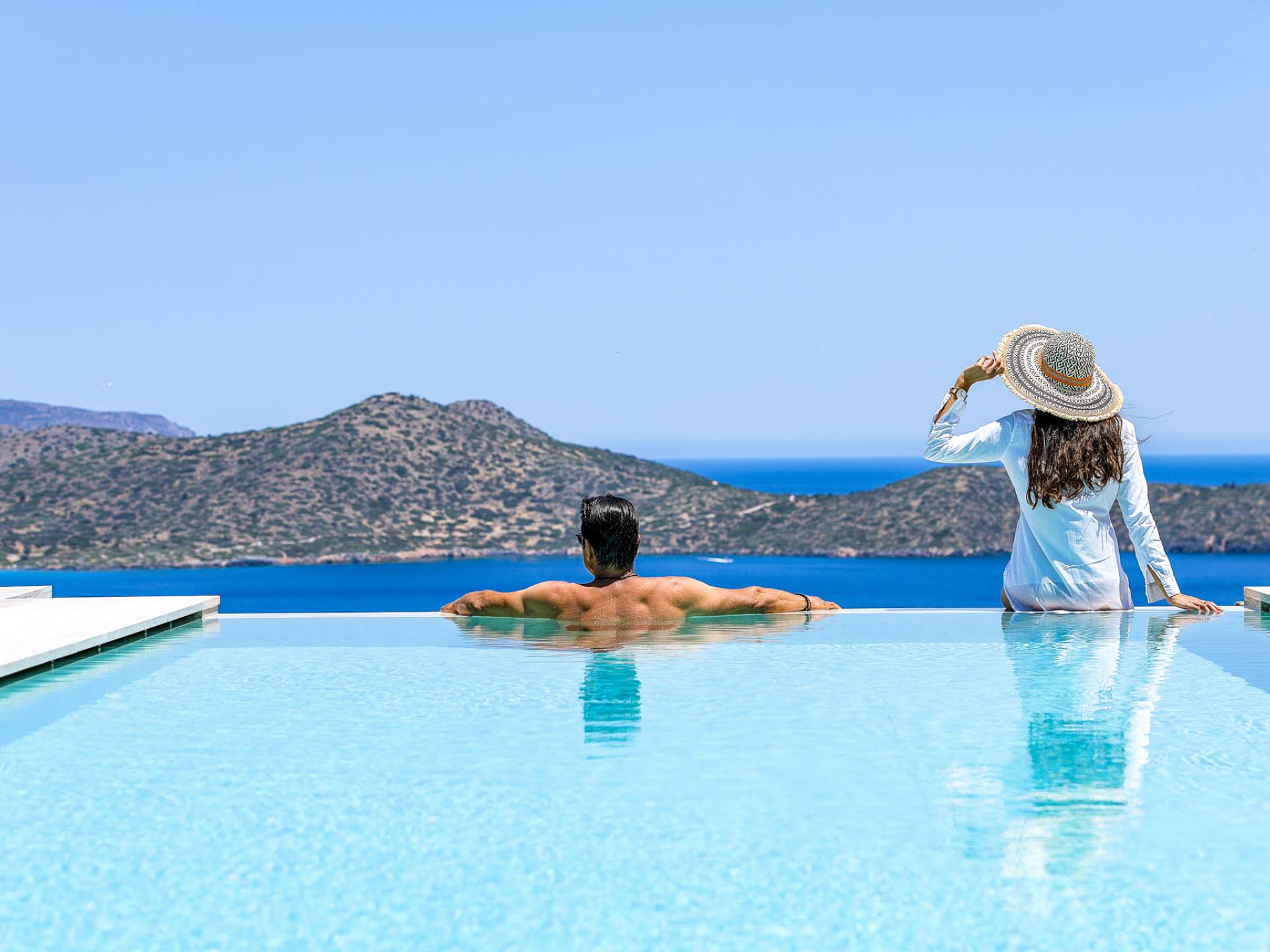 Mornings at the villa begin with laughter and splashes in the infinity pool, followed by a hearty breakfast together on the terrace with views over Elounda Bay.