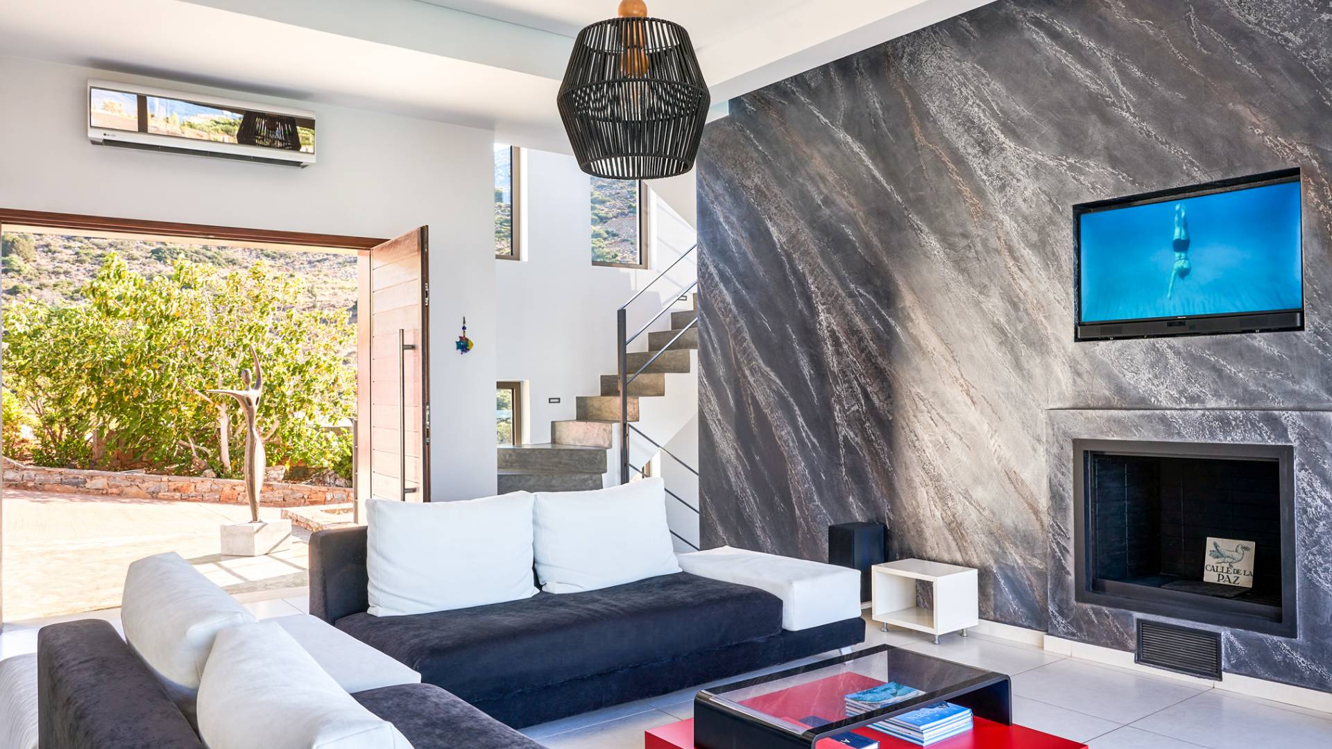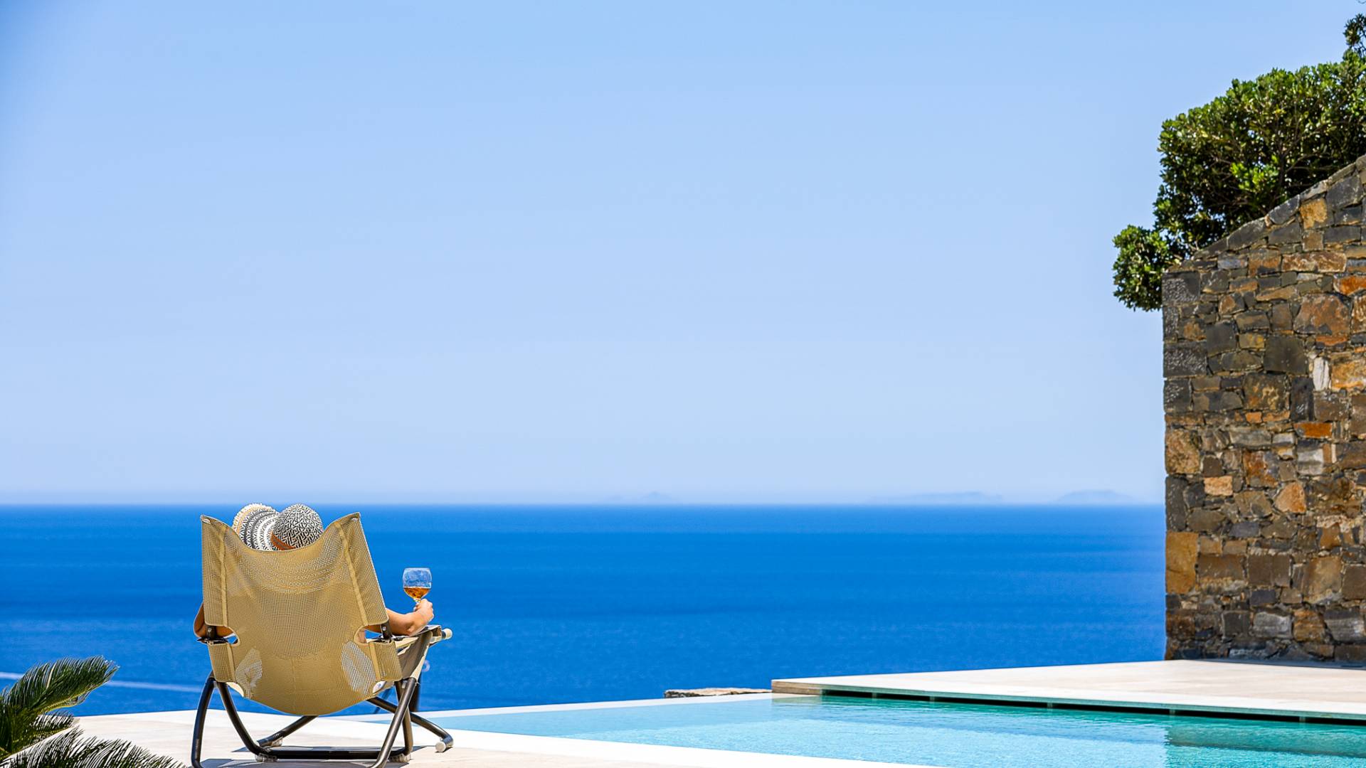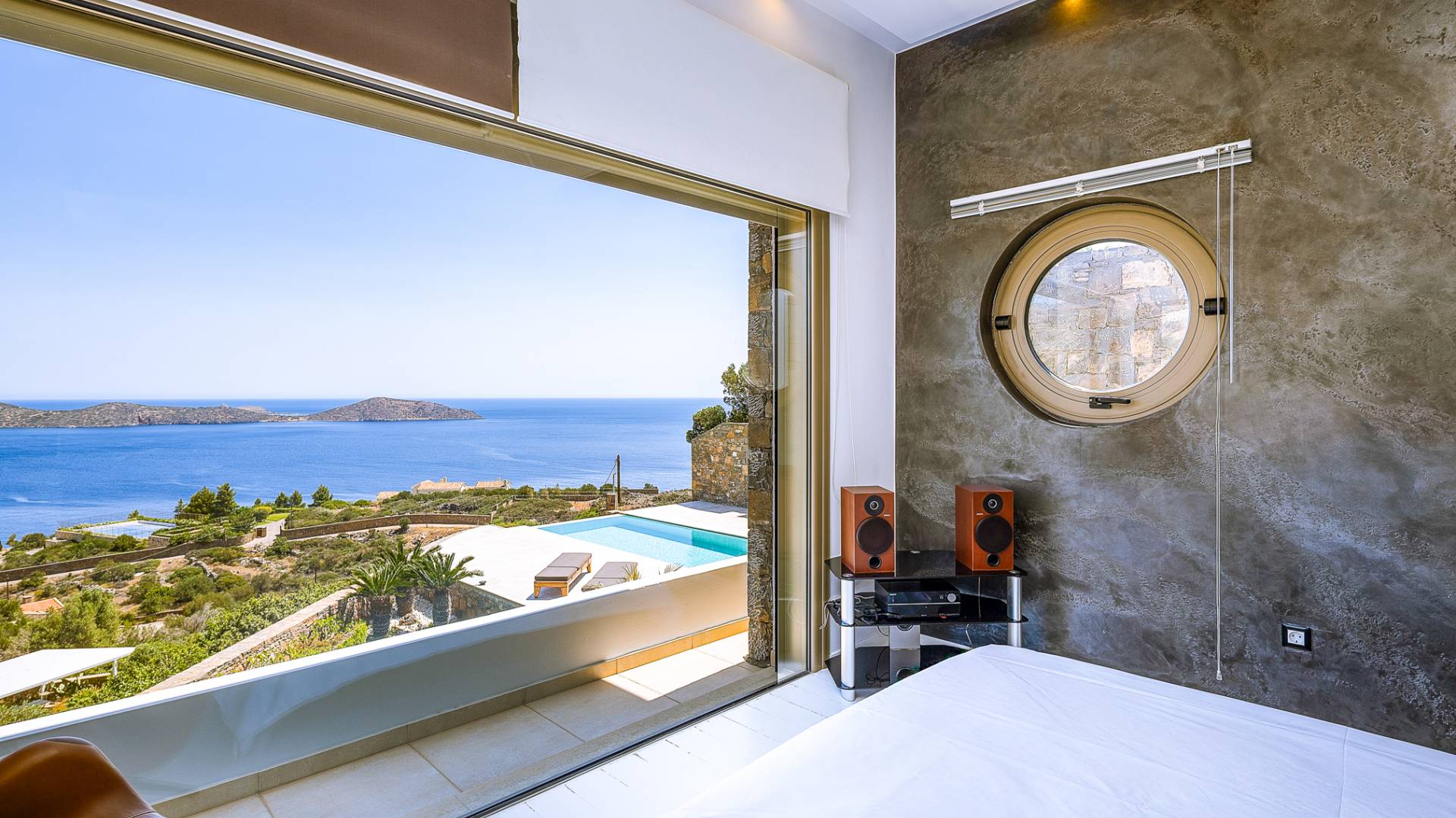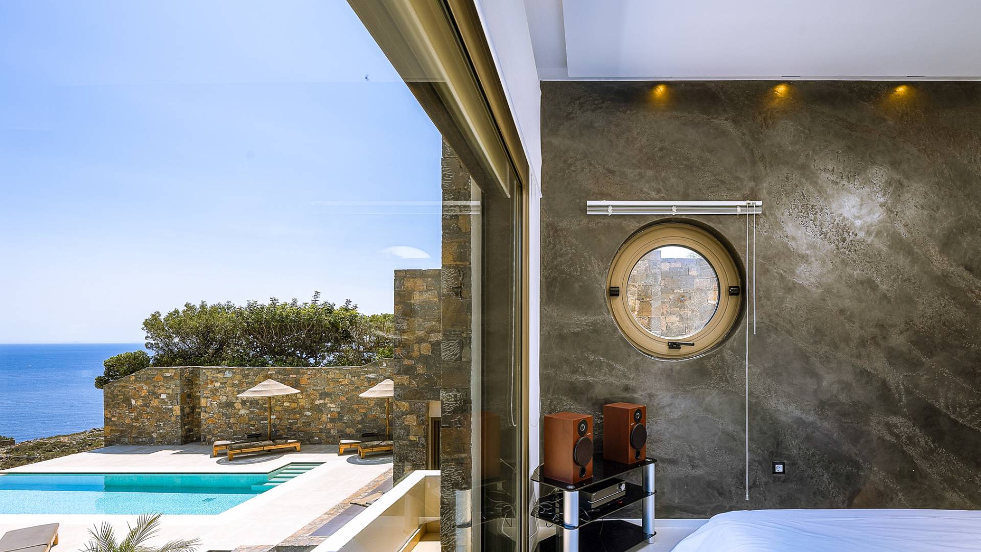 Elounda Ammos Villa Crete - 220m² luxury villa rental with 3 bedrooms, heated infinity pool, gym & cinema. Sleeps 6, just 5 mins to Elounda Beach with sea views.