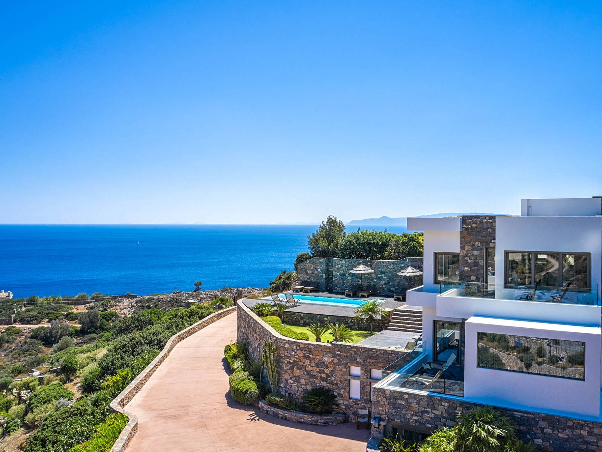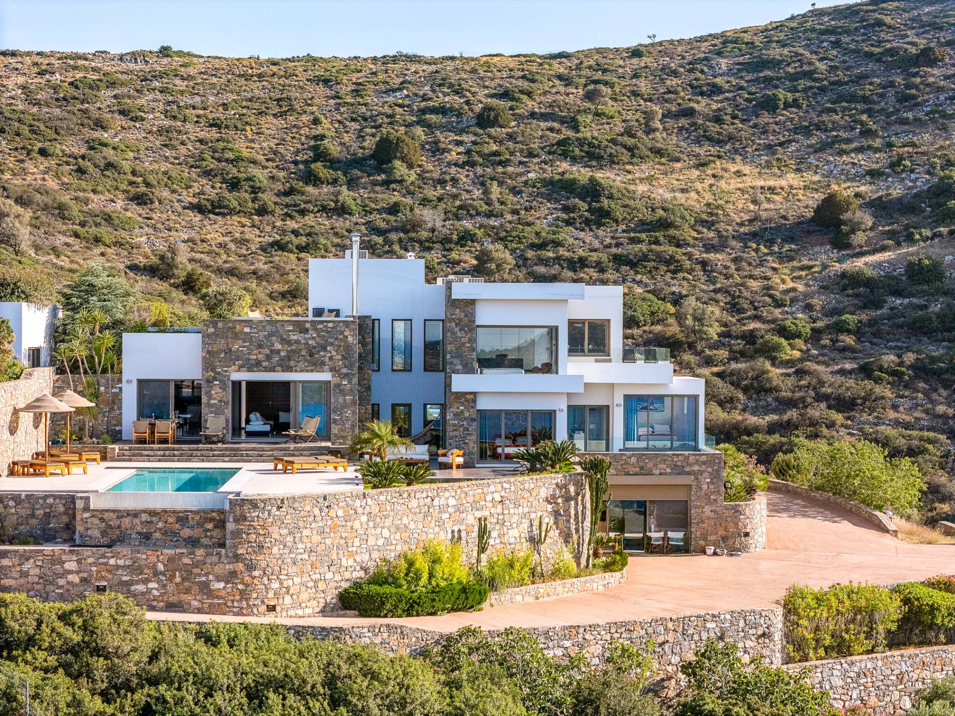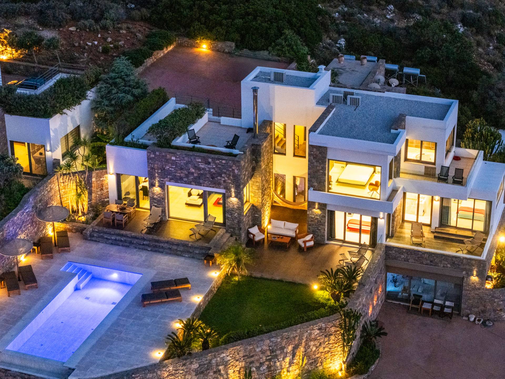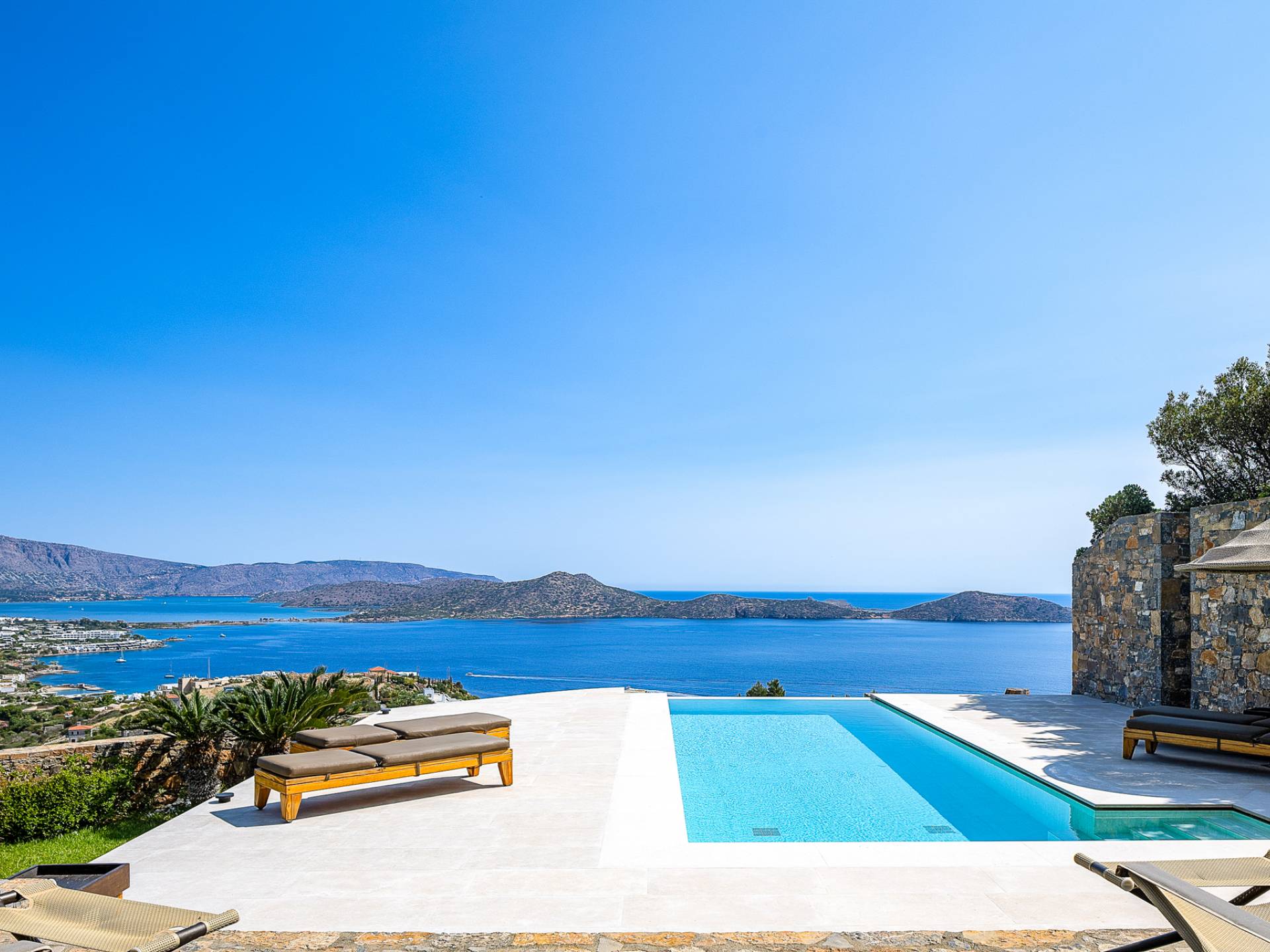 The villa sits on a peaceful hillside in Elounda, Crete, combining privacy, comfort, and spectacular views. Overlooking the stunning Mirabello Bay, the villa offers tranquility while remaining close to beaches, shops, restaurants, and attractions.