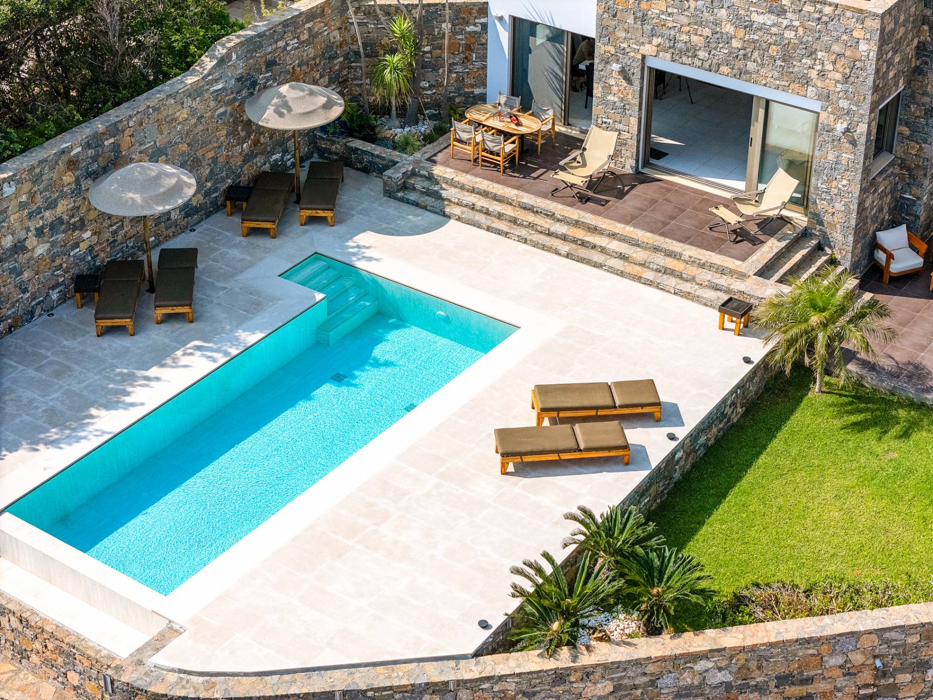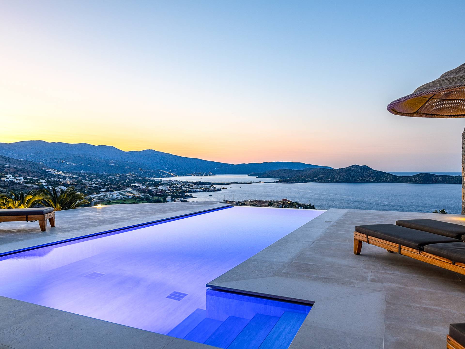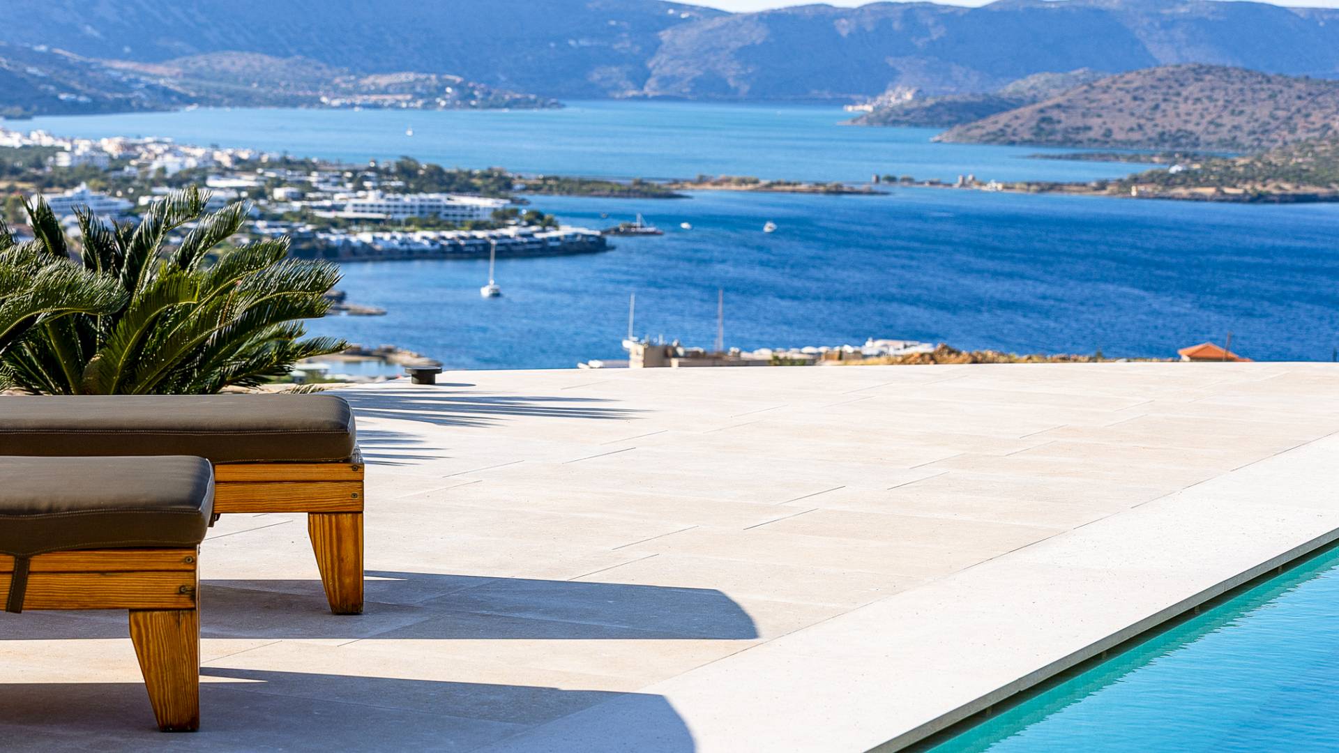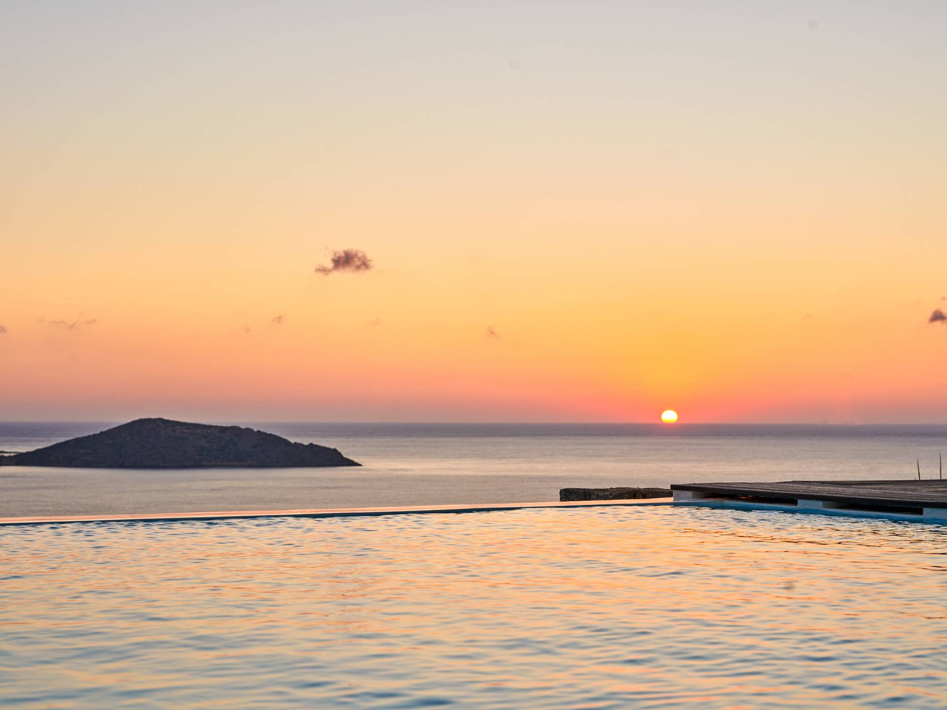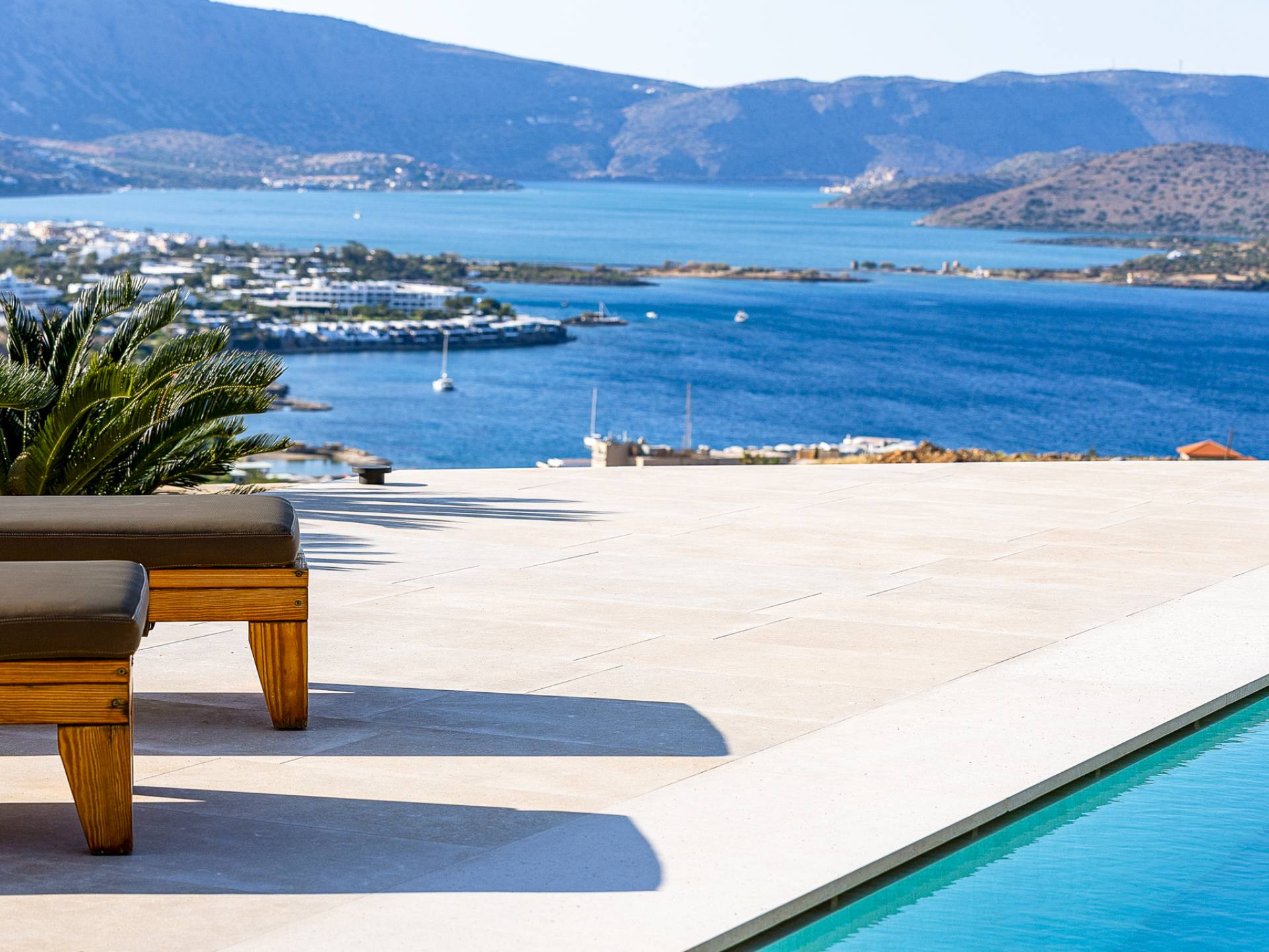 The outdoor spaces of the villa are thoughtfully landscaped to embrace Crete’s natural beauty, offering the perfect setting for unforgettable sunset moments with panoramic views over Elounda Bay and the Spinalonga peninsula.