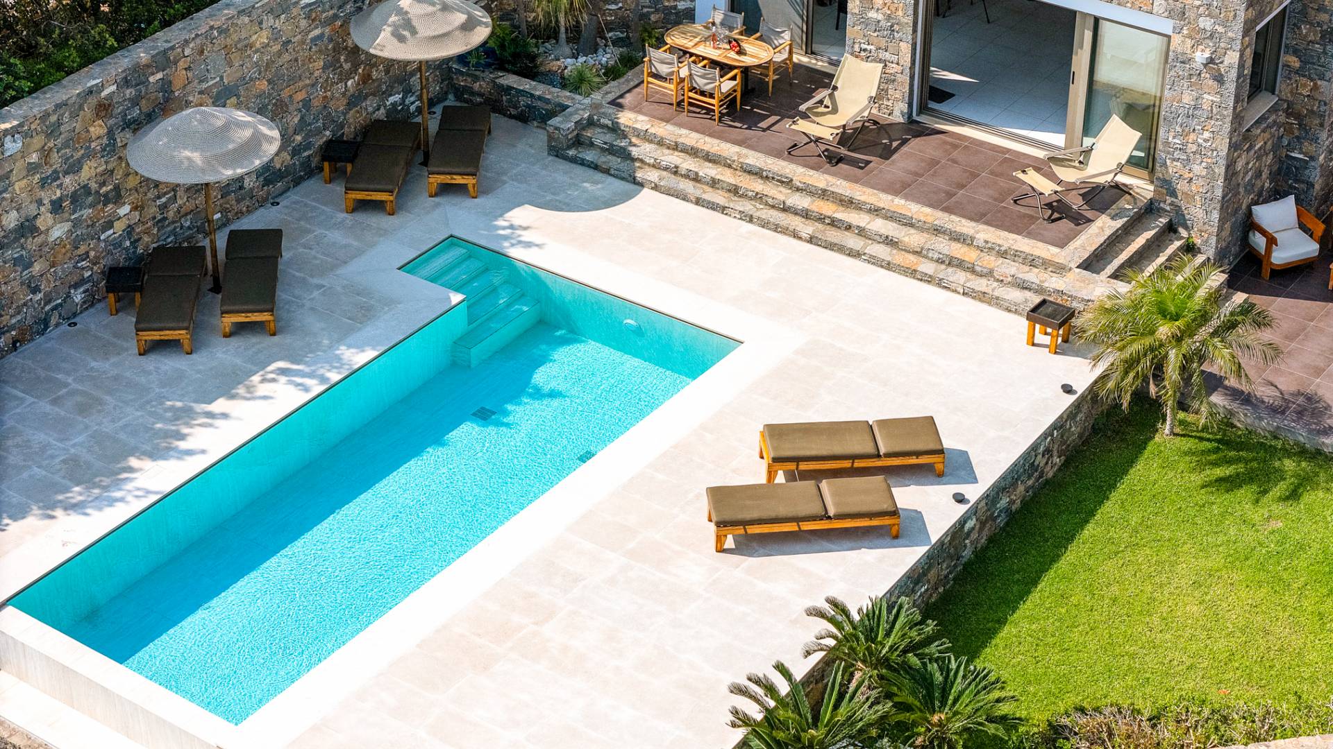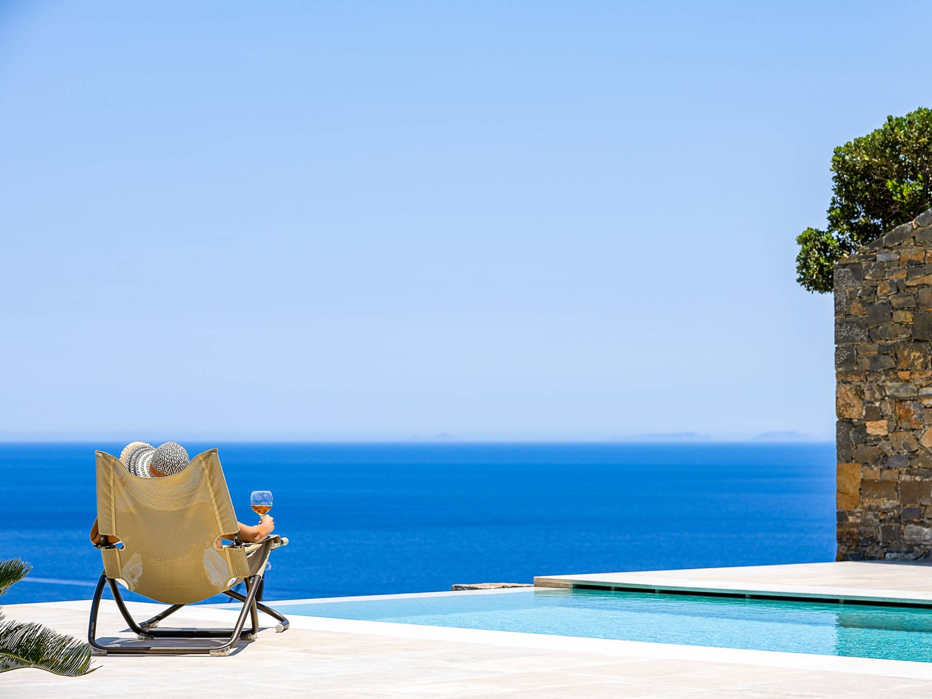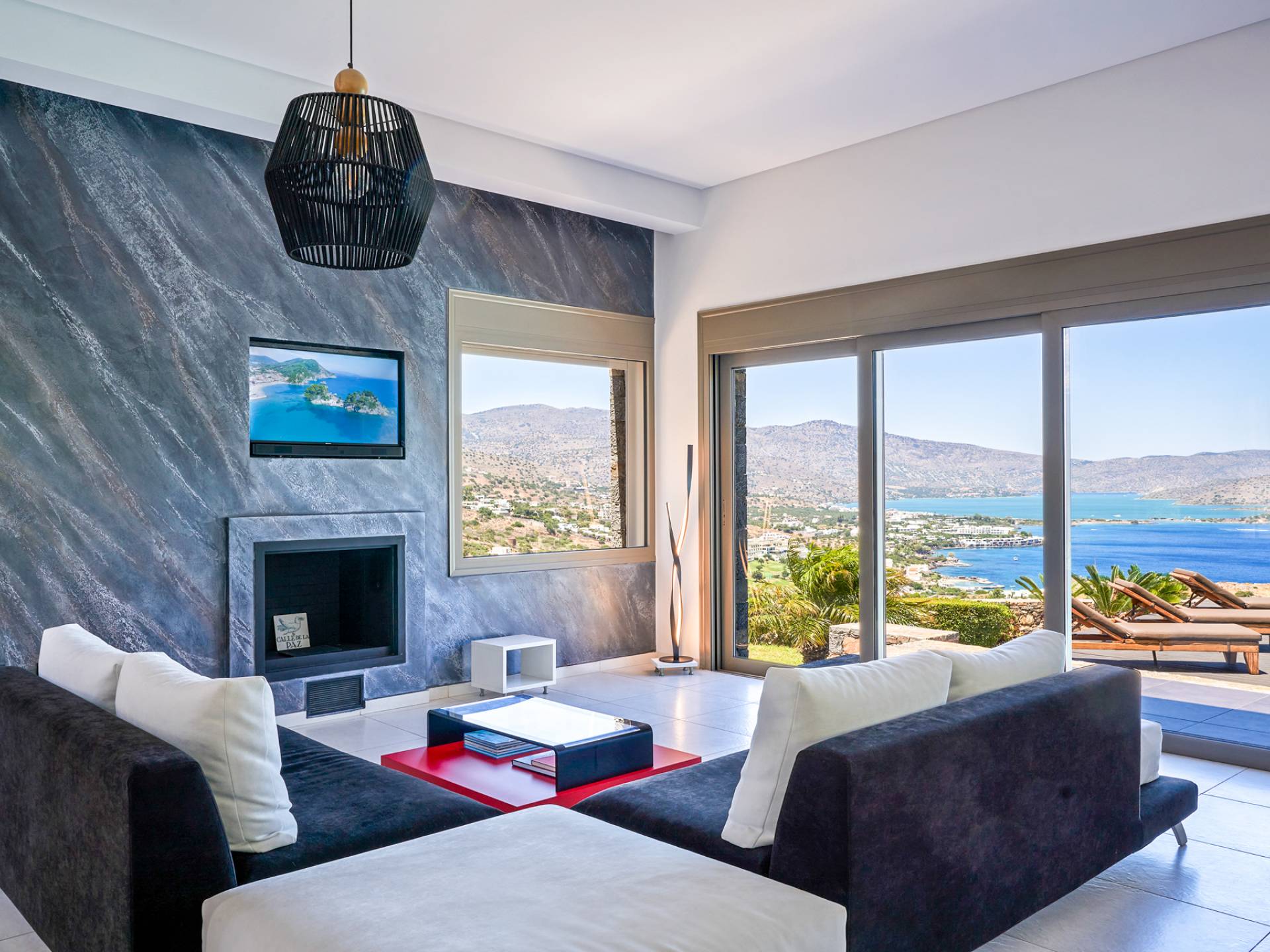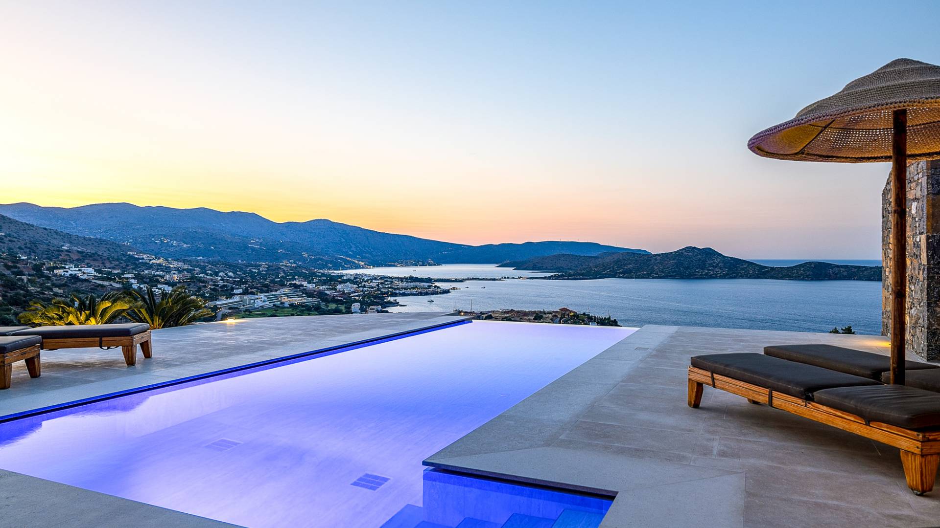 The outdoor spaces of the villa are thoughtfully landscaped to embrace Crete’s natural beauty, offering the perfect setting for unforgettable sunset moments with panoramic views over Elounda Bay and the Spinalonga peninsula.