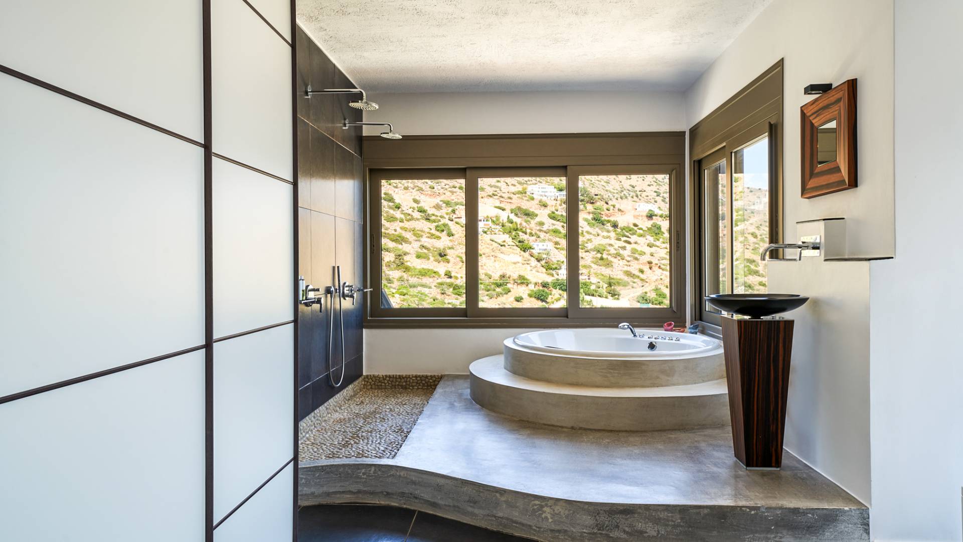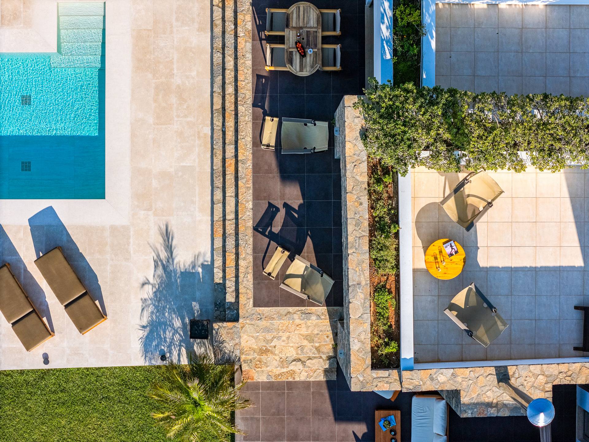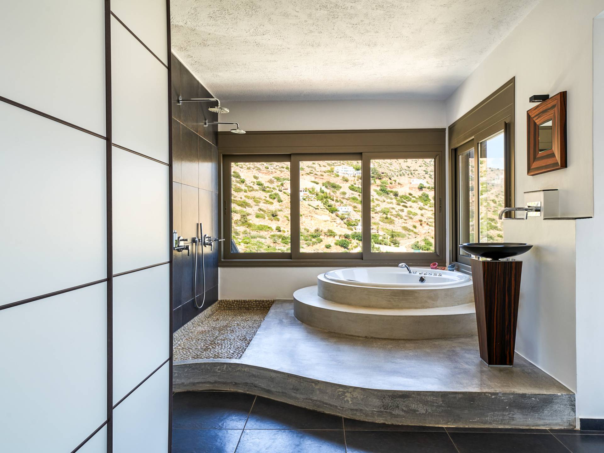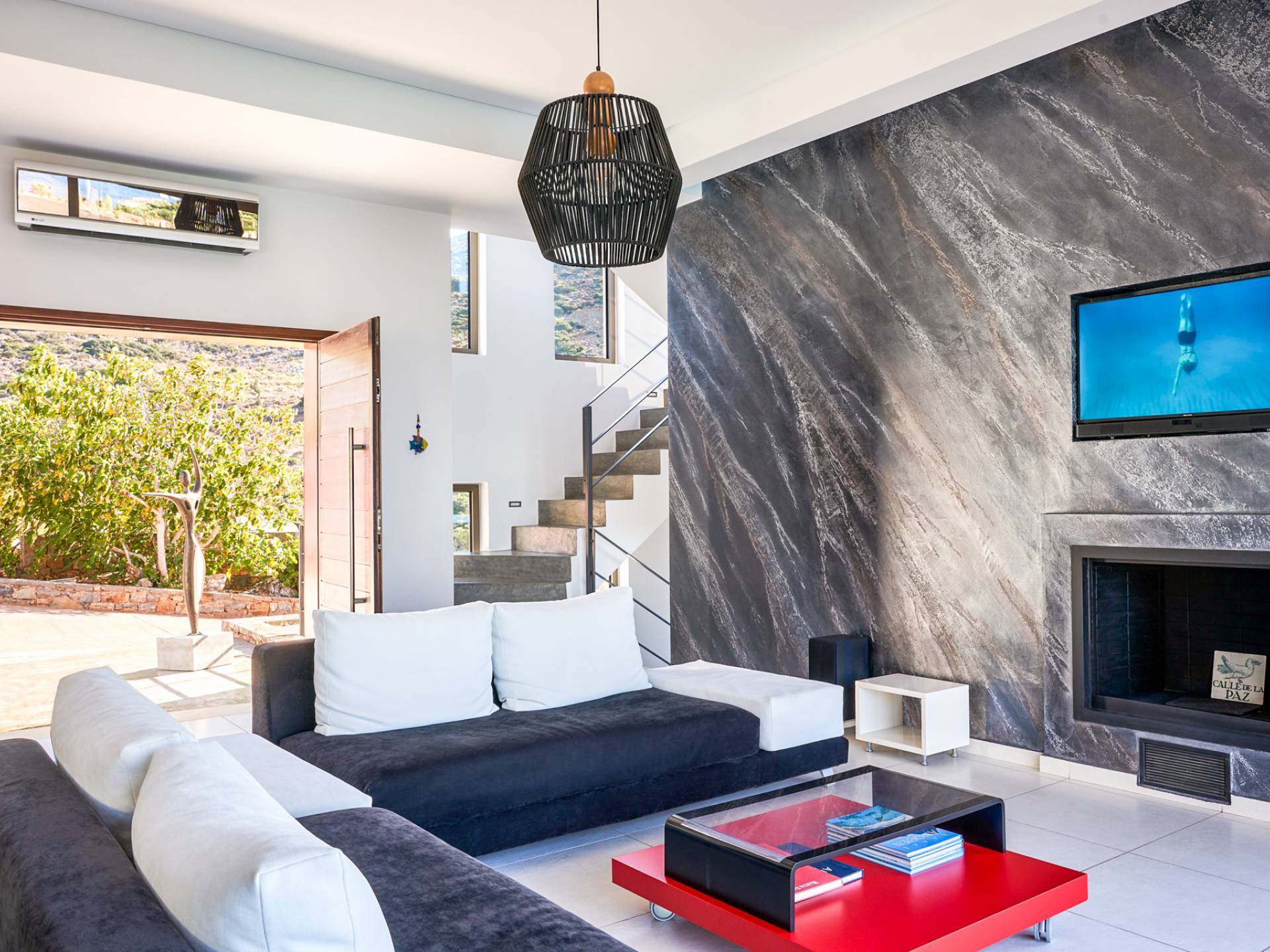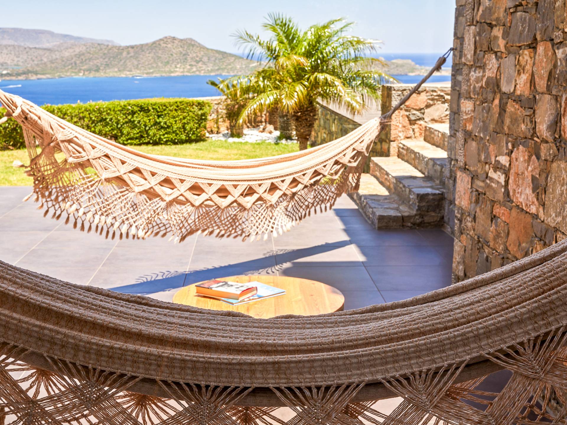 The outdoor spaces of the villa are thoughtfully landscaped to embrace Crete’s natural beauty, offering the perfect setting for unforgettable sunset moments with panoramic views over Elounda Bay and the Spinalonga peninsula.