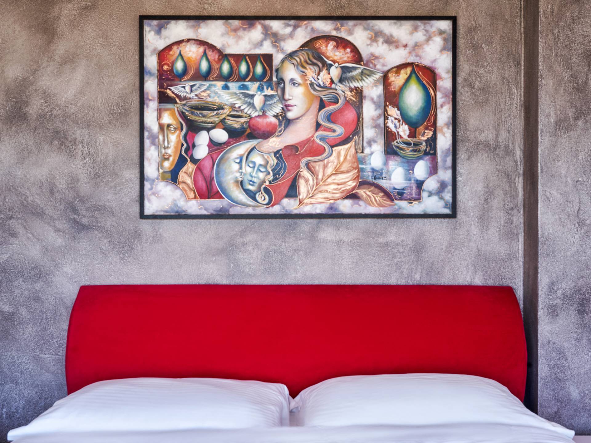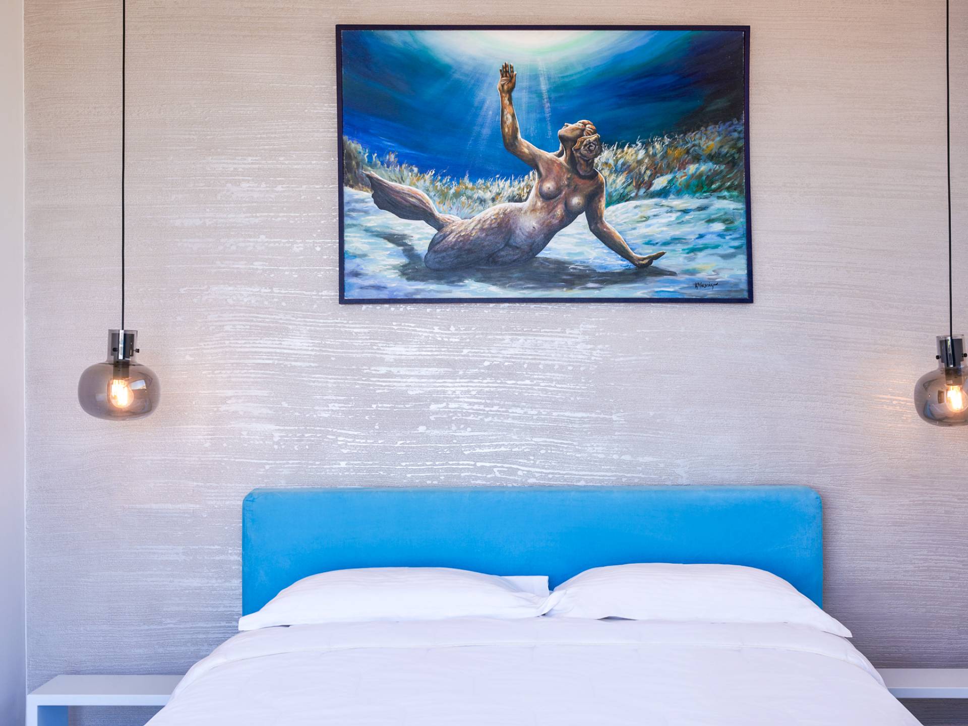 - Bedroom with king bed, ensuite bathroom and terrace access
