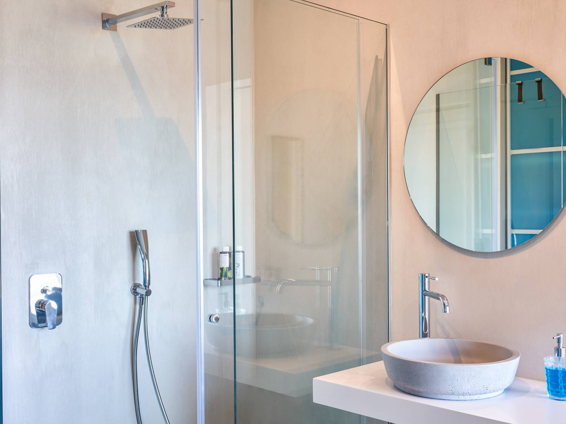 - Spacious terrace with sun loungers, umbrellas, and an outdoor shower