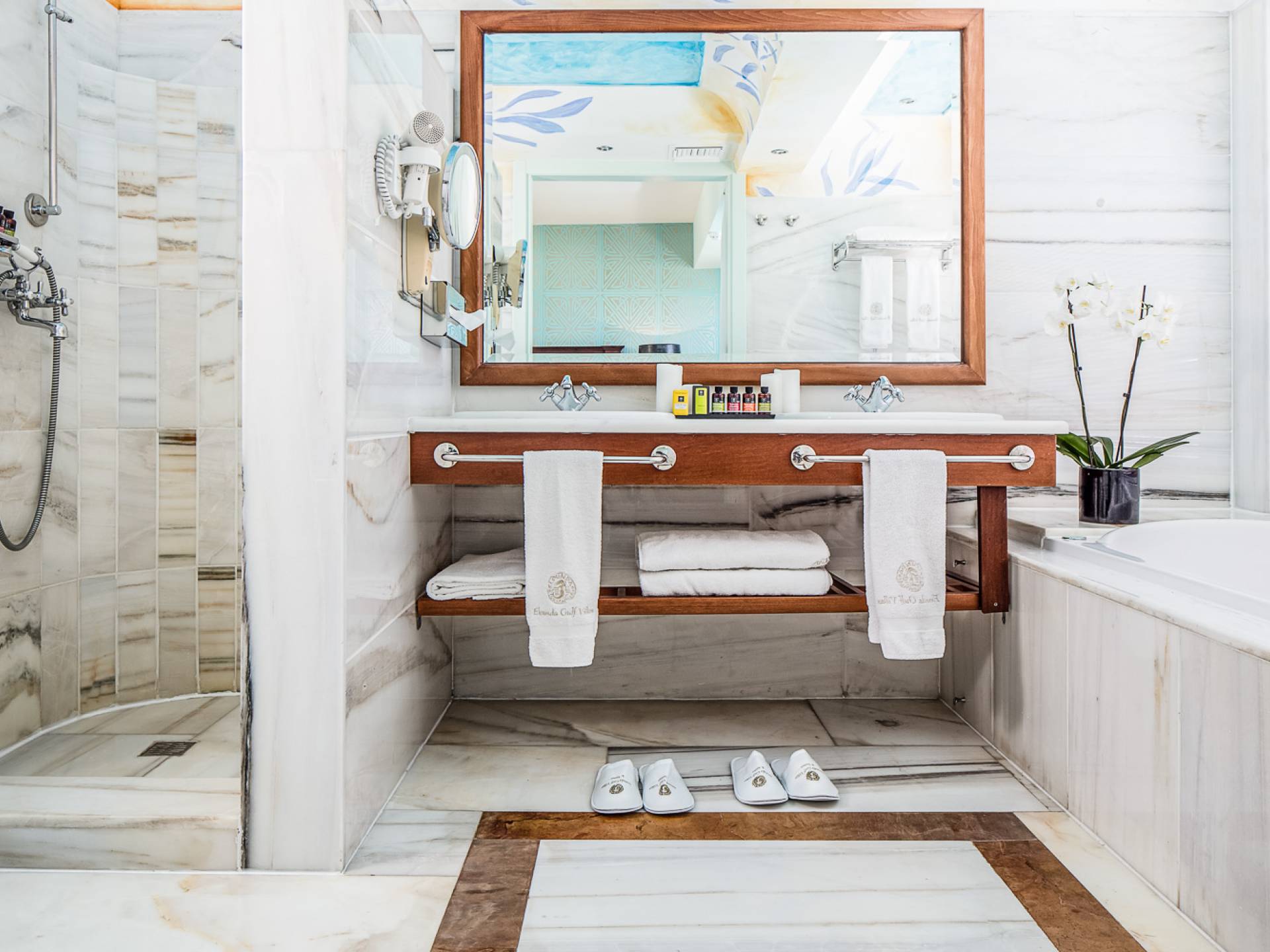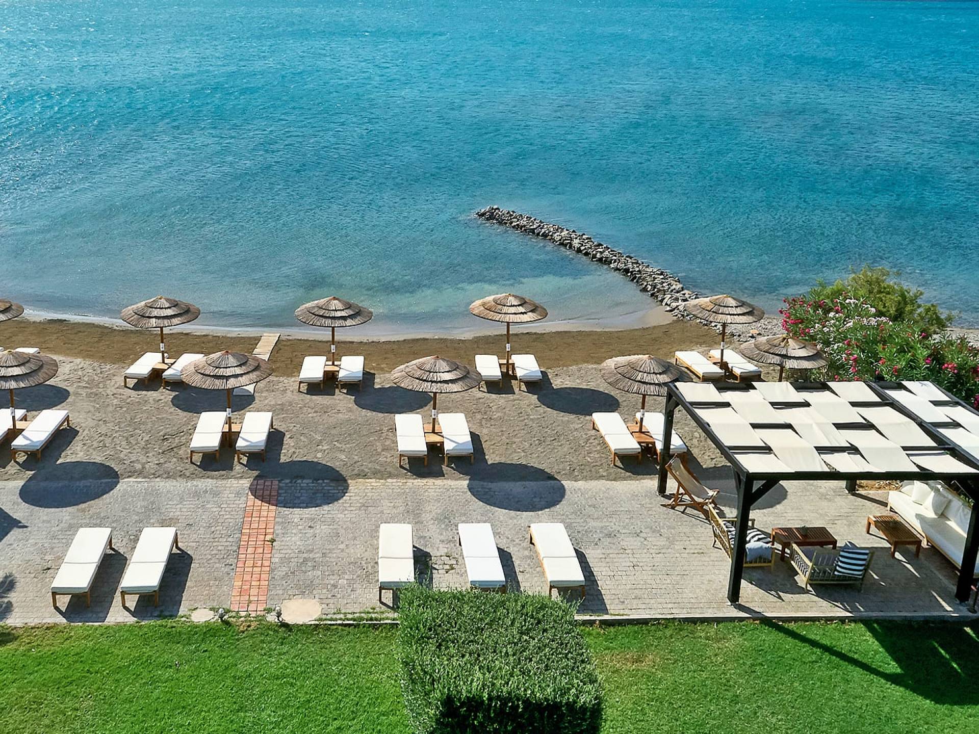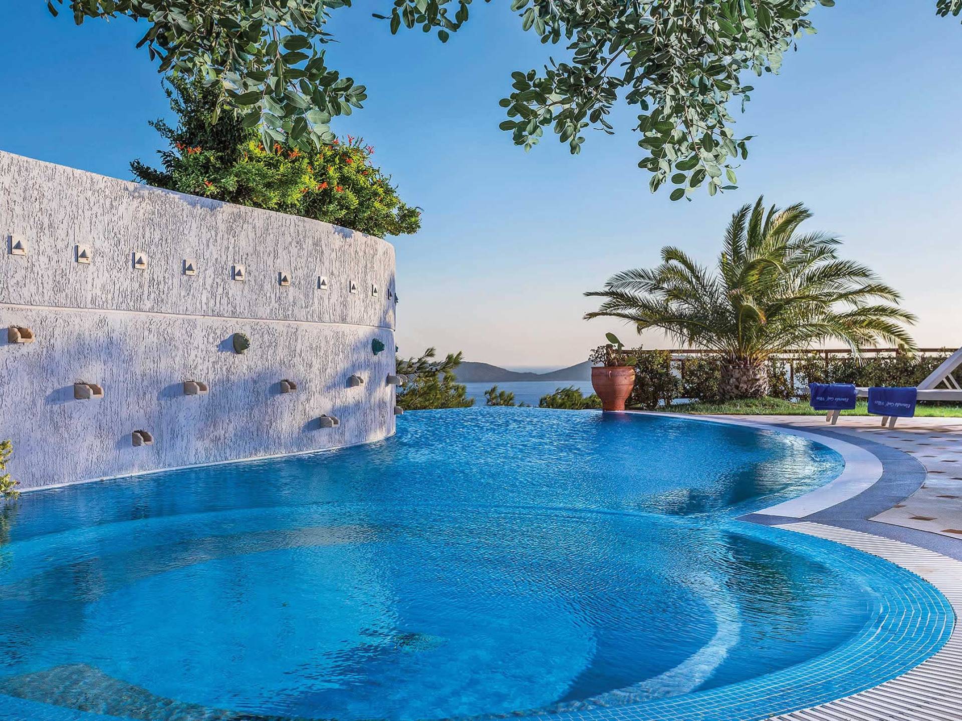 is designed to meet the highest standards, speaking about privacy and relaxation. Each of the 18 Pool Villas has a private pool, individual Jacuzzi, and breathtaking sea views of the Mirabello Gulf. For extra relaxation, use the in-built spa facilities, including a private gym room, a sauna, and a steam bath. For smaller groups or couples who still want absolute luxury, these Suites are the ideal choice.