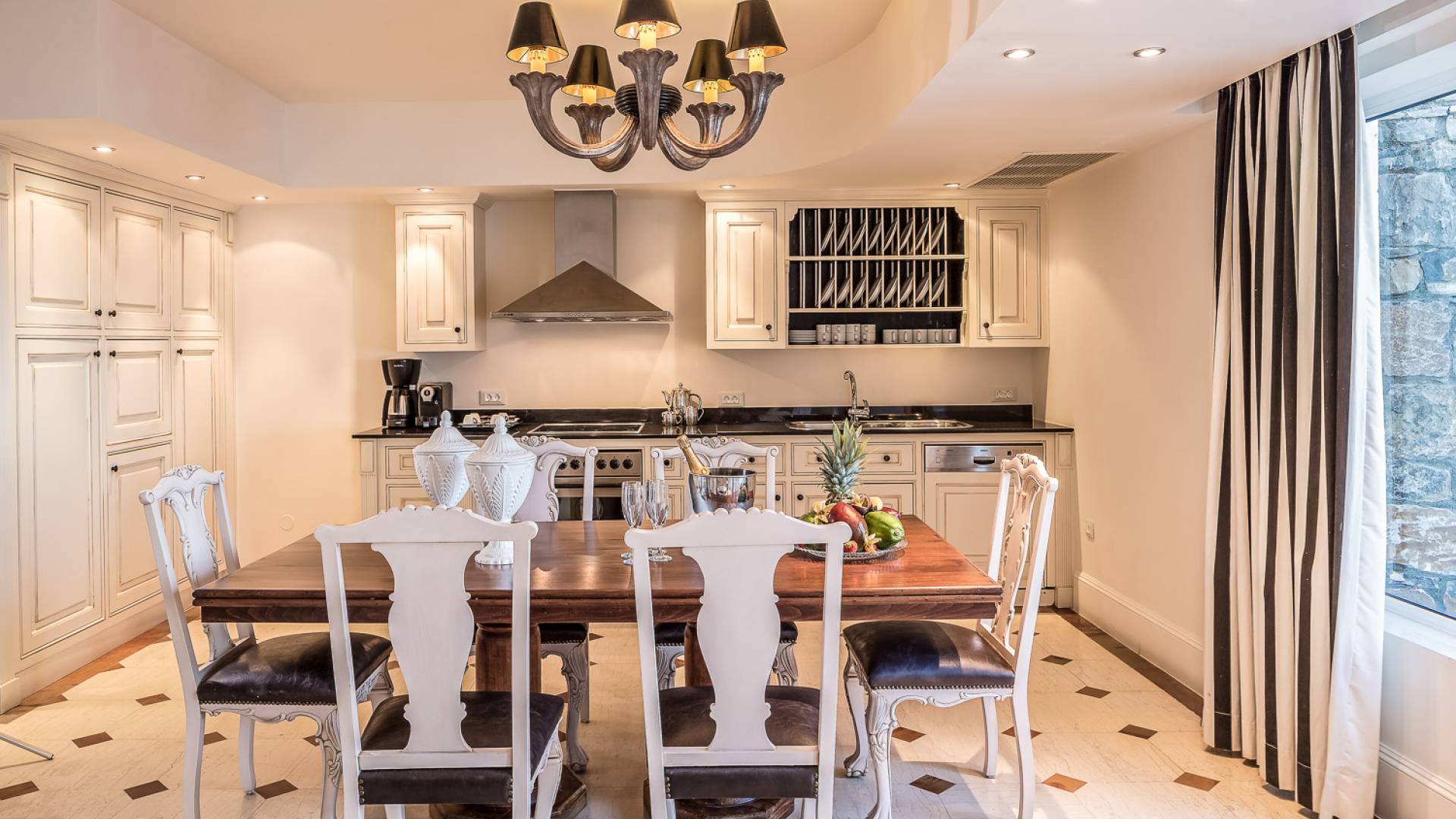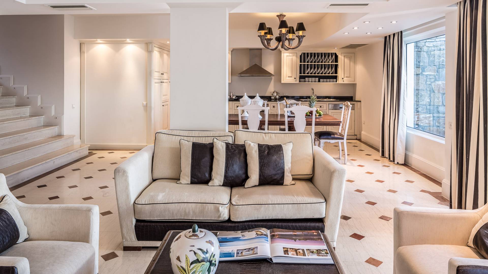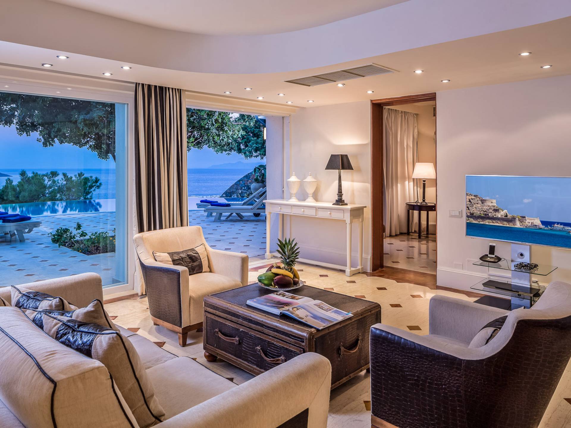 The private pool is heated during the periods 25.03-02.06 and 30.09-04.11and it boasts a Jacuzzi for your most relaxing experience. Guests of the Presidential Spa Pool Villas Lasithi have the ability to relax also in their own private spa, awaken their senses with full body workouts at their own fully equipped gym and enjoy a rejuvenating steam bath and sauna. Stylishly adorned and with marble floors, all of the vast bathrooms feature exceptional amenities and toiletries. The elegant open-plan kitchen is fully equipped, creating the perfect setting for guests in order to experience Greek cooking lessons or private fine dining.