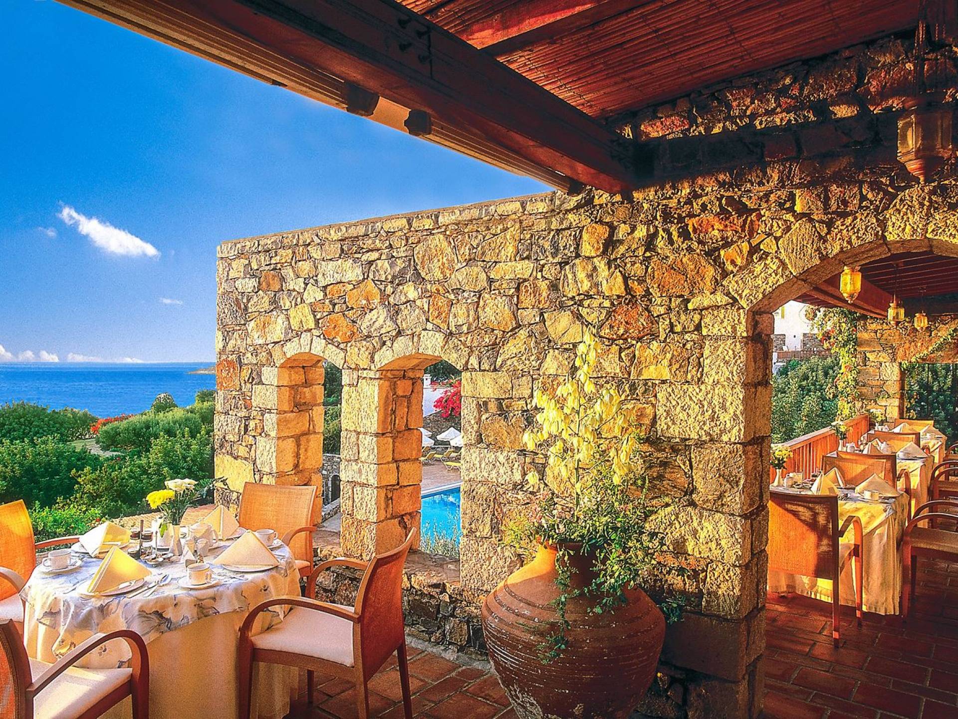 There are three different restaurants at the Elounda Mare Hotel Crete, offering a variety of culinary experiences: