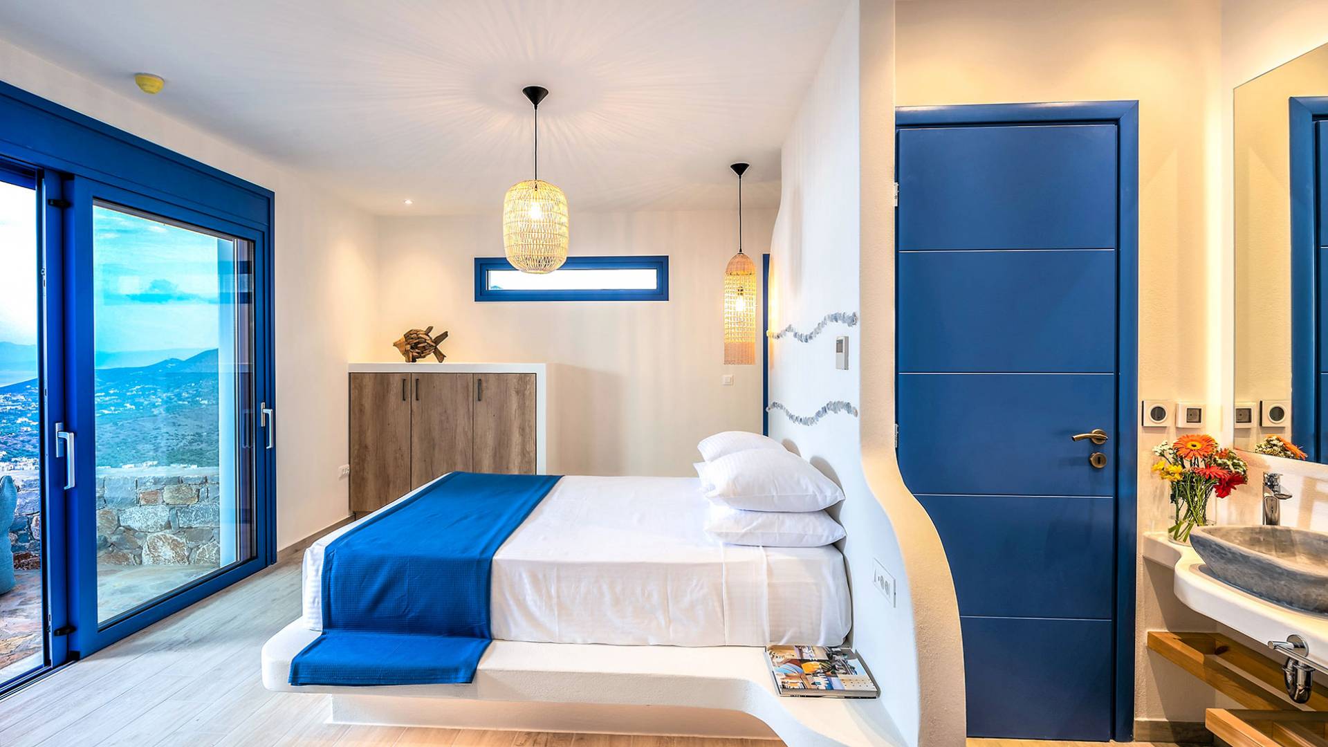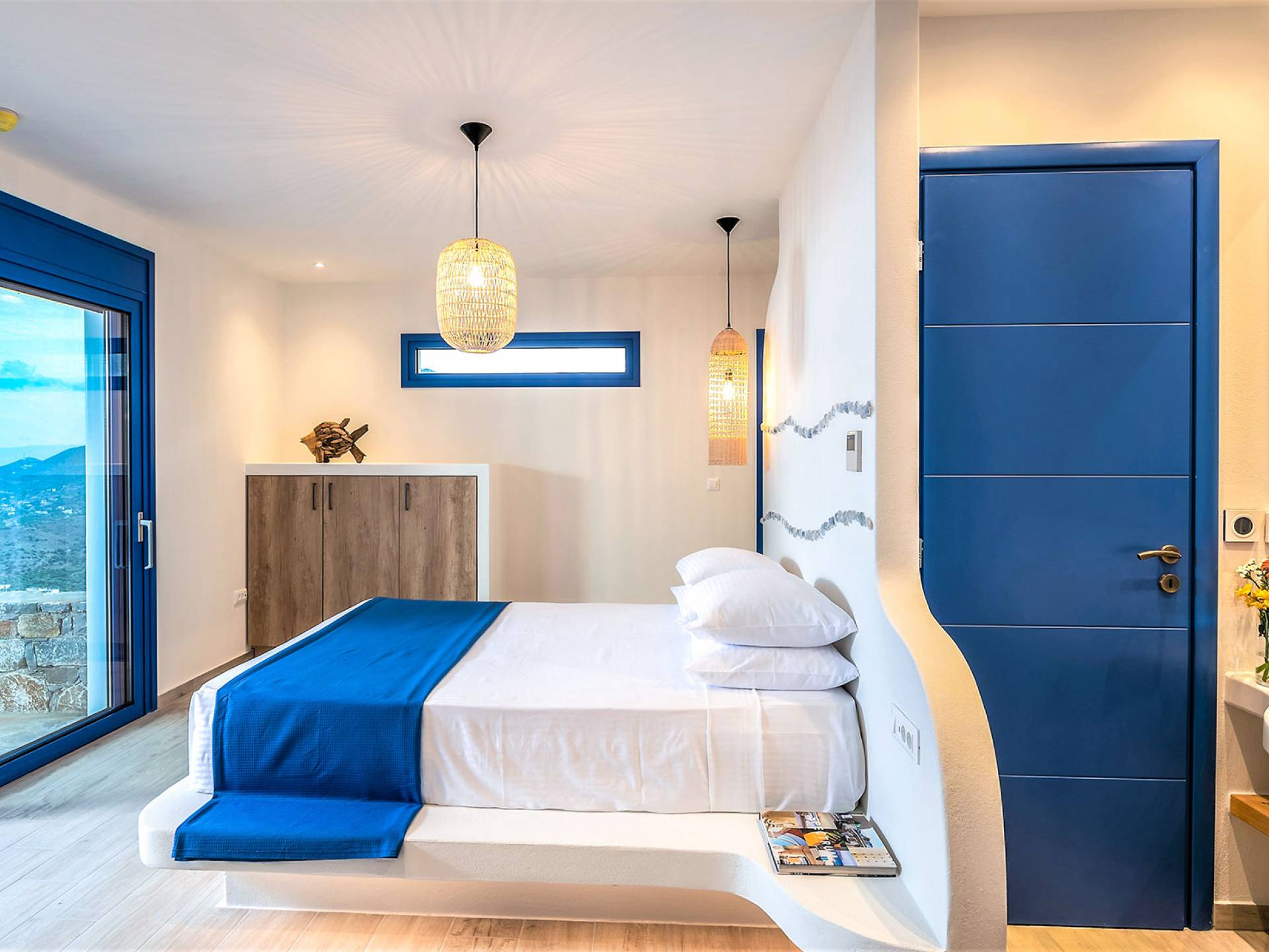 - Fully air-conditioned, with modern furnishings and elegant Cycladic touches