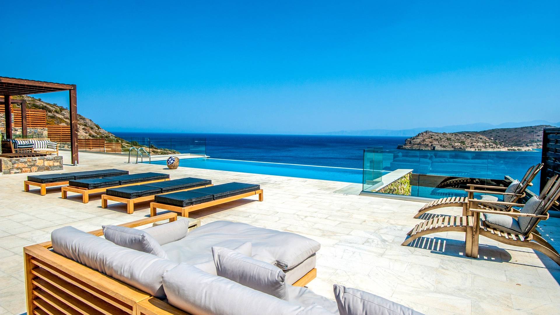 Villa Plaka Dimitra Crete - Luxury villa rental with 6 bedrooms, private heated pool & sea access. Just 100m from Plaka Beach with Spinalonga views. Lowest Price Guarantee!