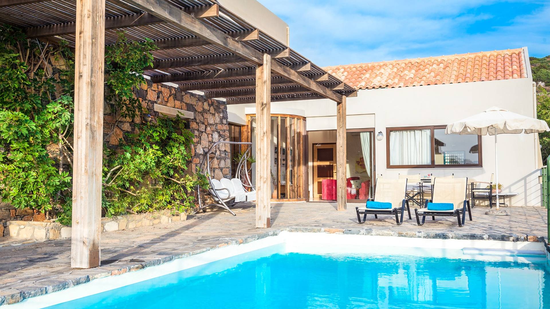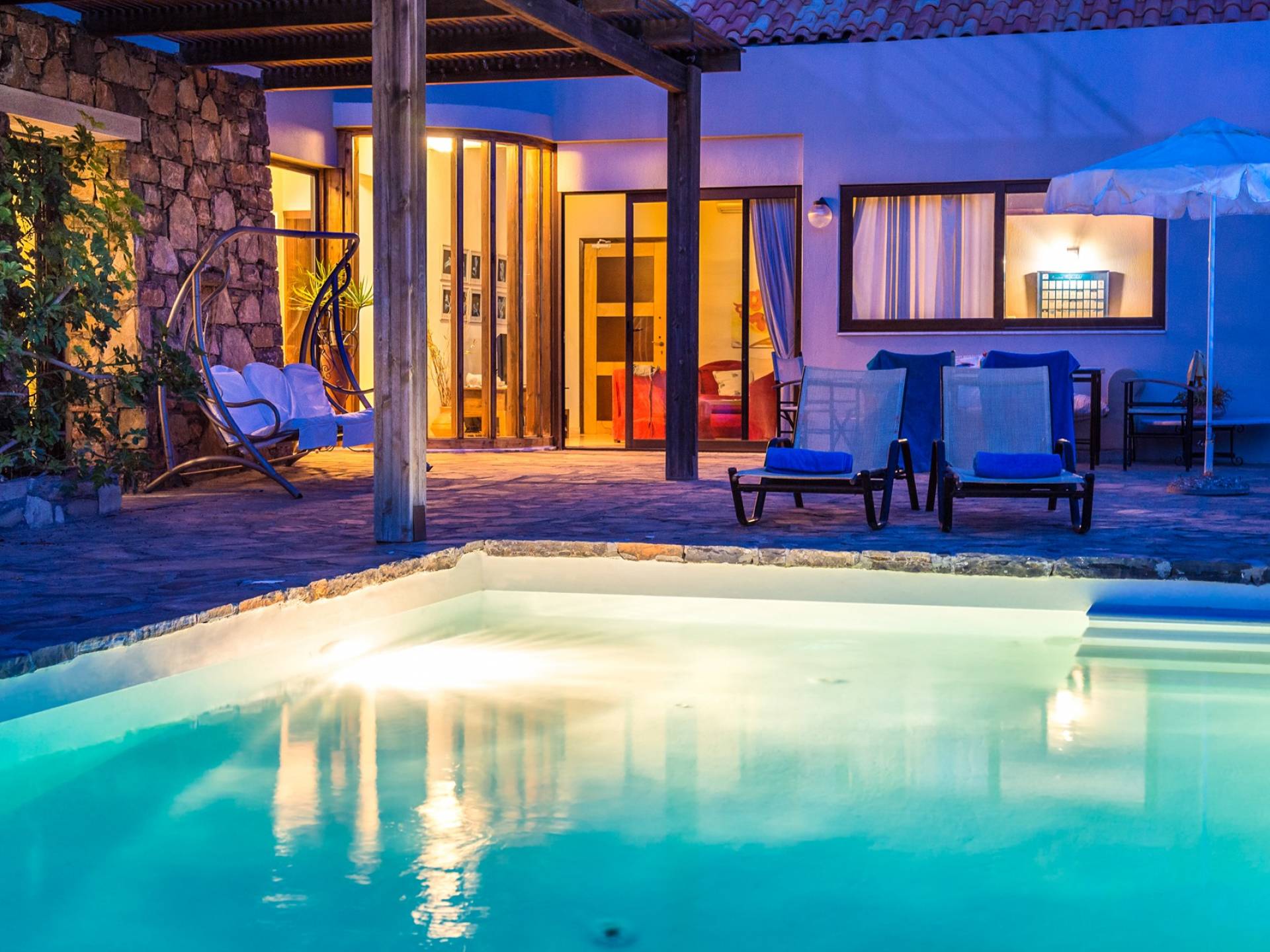 Color blue, sun and luxury, nothing can beat this combination. What else is there to ask for your vacation? Indulge yourself in a heated private pool in the coziness of your own villa, either an indoor or outdoor one. The water is healing and therapeutic…