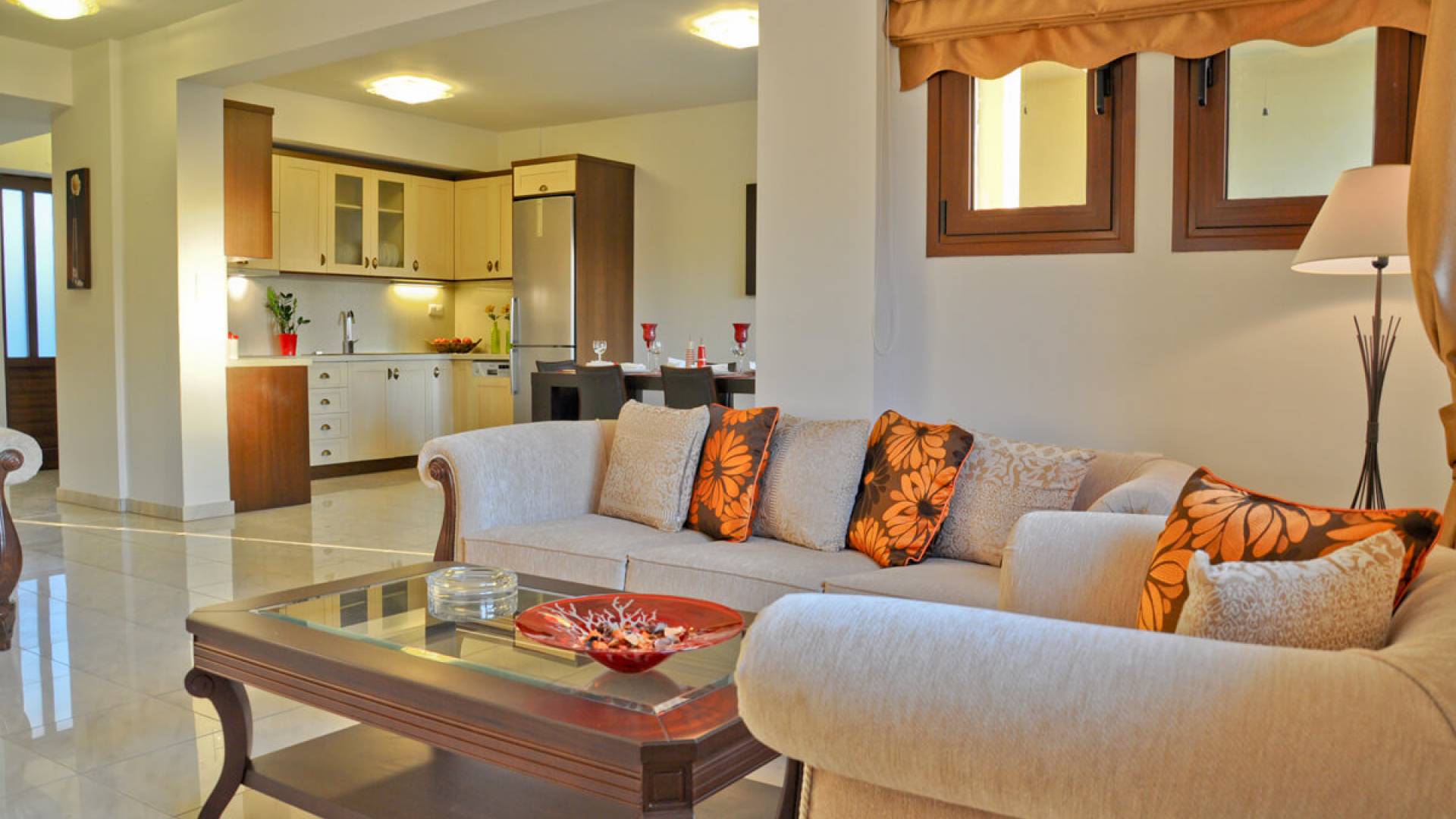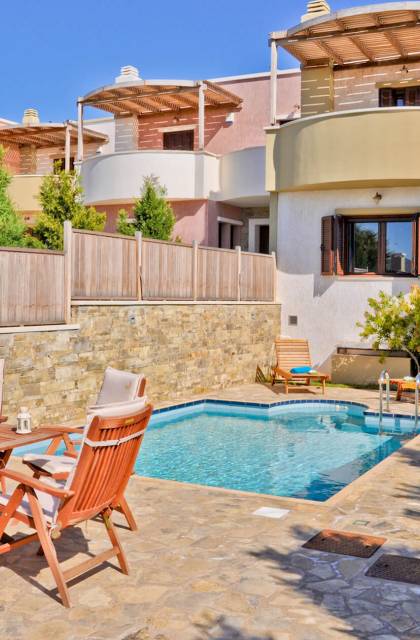 These villas can satisfy the needs of the most demanding visitor, offering a big variety of services such as comfortable and functional rooms and all the necessary facilities. nLa Regente Villa Lasithi is developed in three levels. On the first floor there are three bedrooms and two bathrooms, one en-suite. On the ground floor there is a sitting room, a dining room, a fully equipped kitchen, a bedroom and a bathroom. On semi basement there is a sitting room, a playroom, a bathroom with steam shower and an auxiliary room.