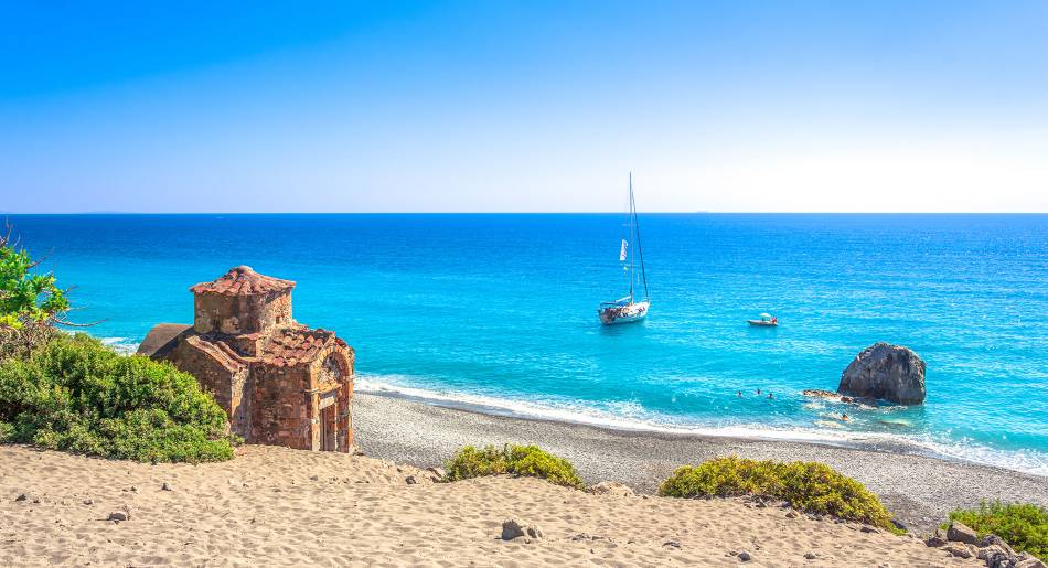 The coastal village of Agios Pavlos is located 58km south of the city of Rethymnon, and 50 km west of Agia Galini, and is very close to Cape Melissa. It can be accessed with a short drive from the village of Sachtouria. It is a peaceful place that has avoided big crowds since it is well-hidden in a sheltered bay, ideal for those who seek a quiet holiday as well as for families. The bay is a true gem that includes a beautiful beach with emerald green waters and a magnificent rocky seabed. After a swim, you can enjoy fresh fish dishes in the nearby taverns. Above the beach, you can visit the small church of Saint Paul, who according to the legend lived here during his journey to Rome. Nearby you will find more idyllic beaches such as Akoumiani Gialia which is behind the western edge of Agios Pavlos bay and is considered one of the top beaches in Rethymno prefecture. Yet beware of the waves! It is accessible through a path that starts from Agios Pavlos and can be combined with Agios Pavlos for a day at the beach!