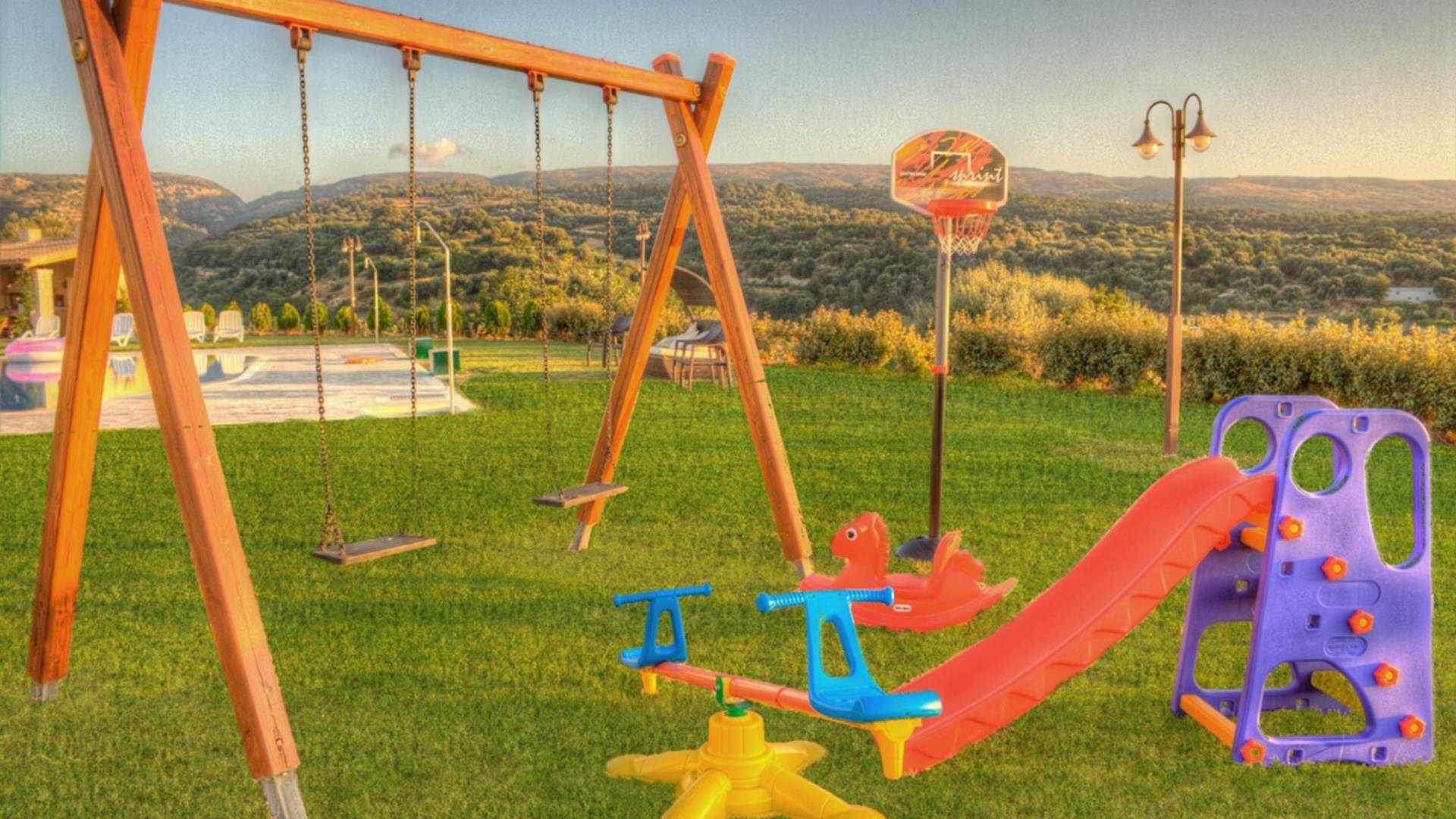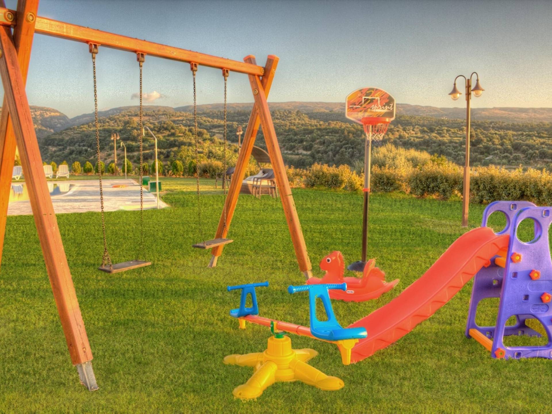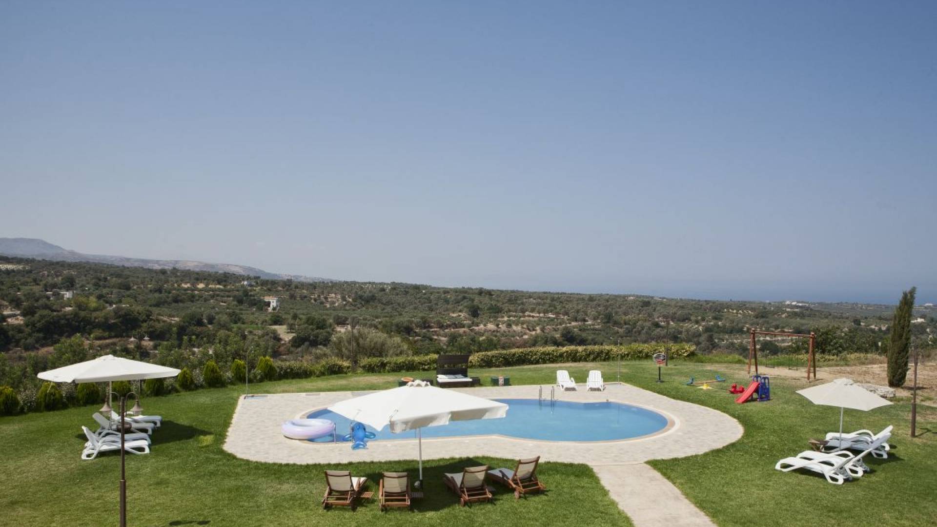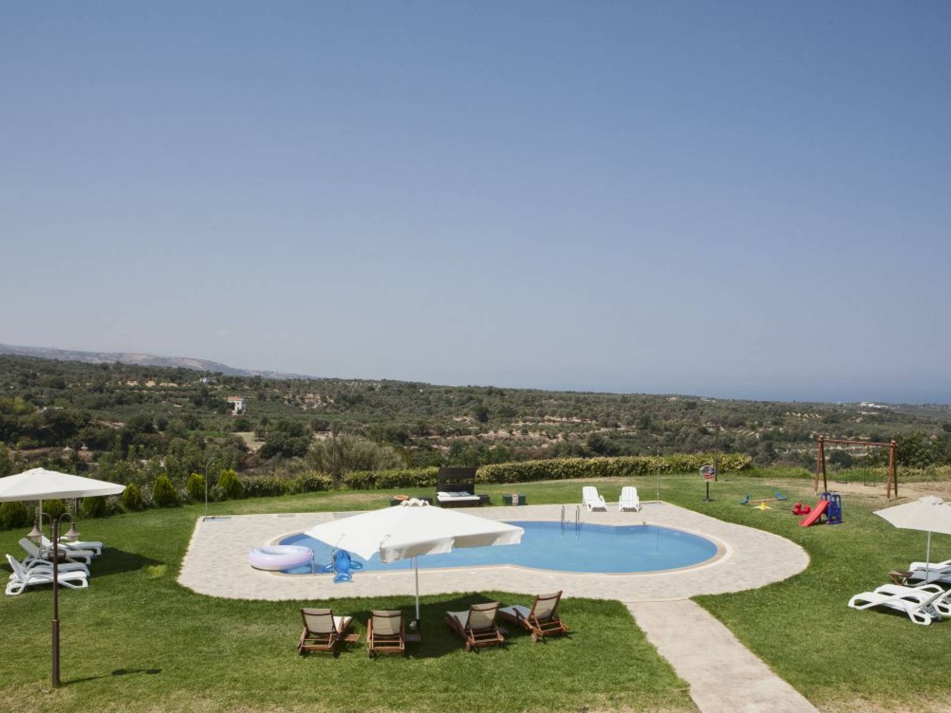Overall, you are renting 2 independent detached identical villas of 280 m2 total, with 9 bedrooms and 6 bathrooms in a large private plot! Huge plot with grass, enormous pool, children`s playground, build barbeque and build the wood oven. Offering tv, cd-DVD system, maid service, panoramic sea-green-mountain views, near traditional villages, and much more at affordable prices. Suitable for relaxation, mountain biking, hiking, swimming, snorkeling or scuba diving, privacy, and exclusivity. Alternatively, you may stay at Villa Arodamos Rethymno, by the pool, and bake your pizza or bread at our wooden oven, or maybe make a lovely barbeque at our stone-built oven, admiring the views, while attending the kids in our playground.