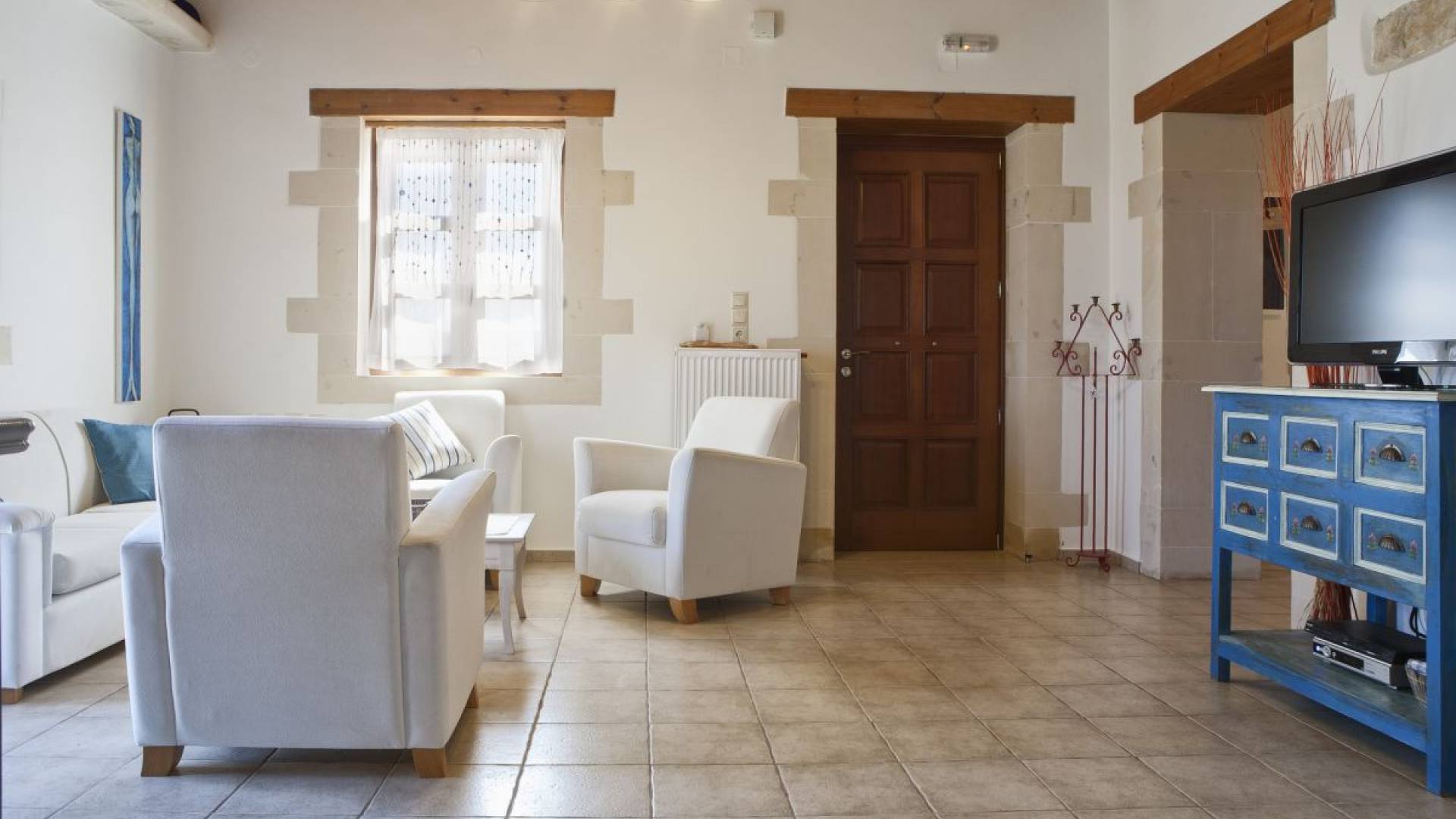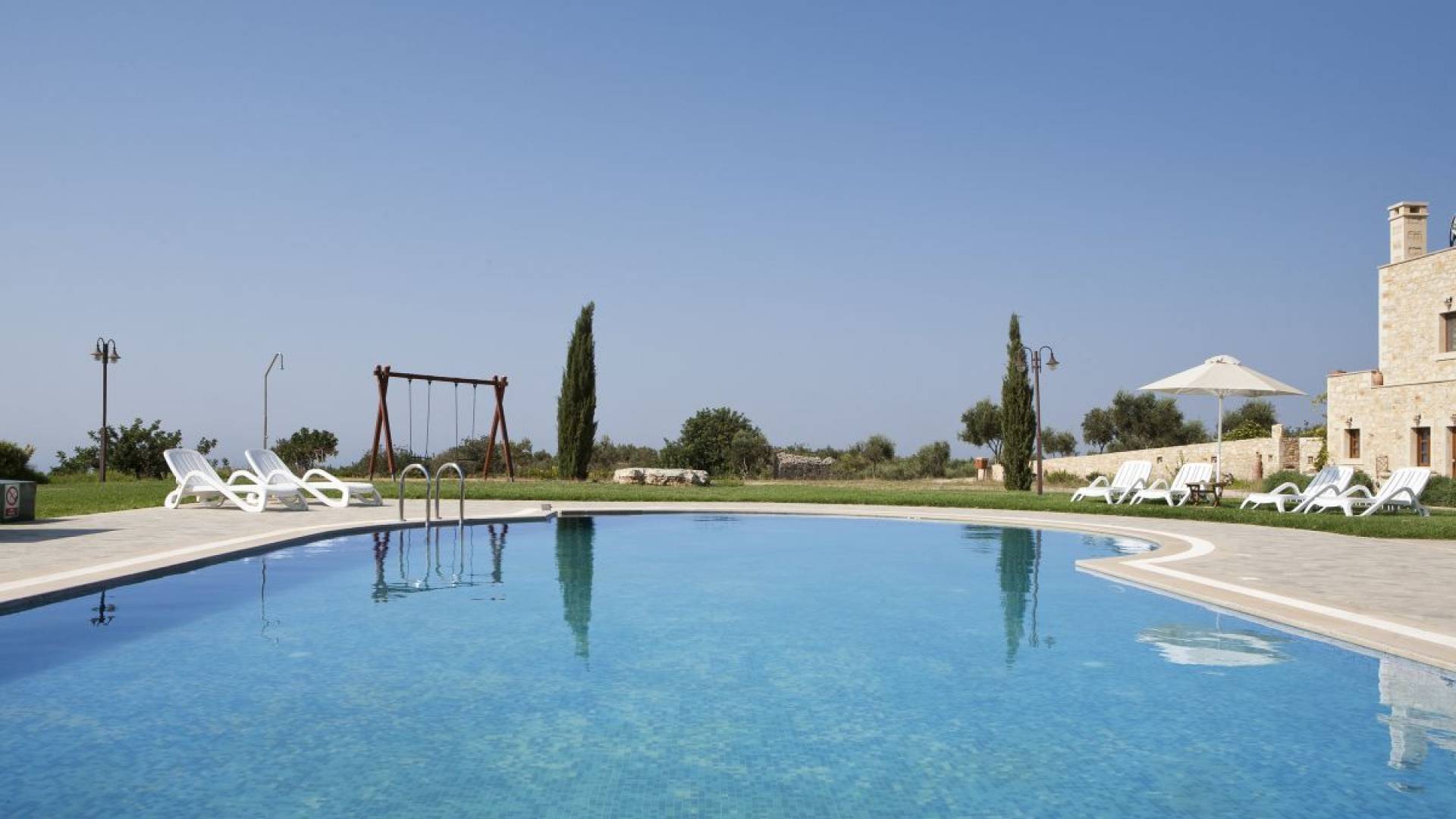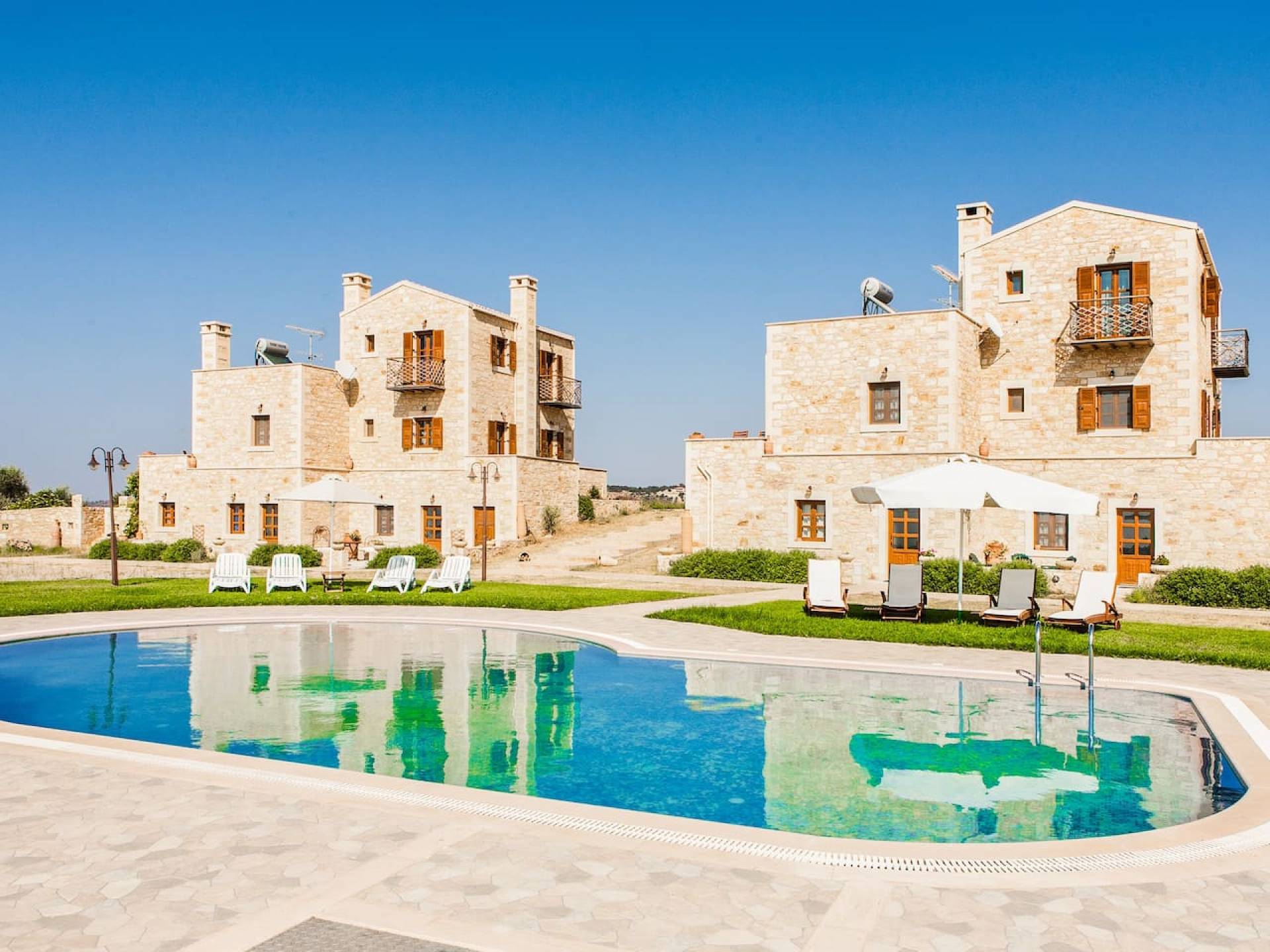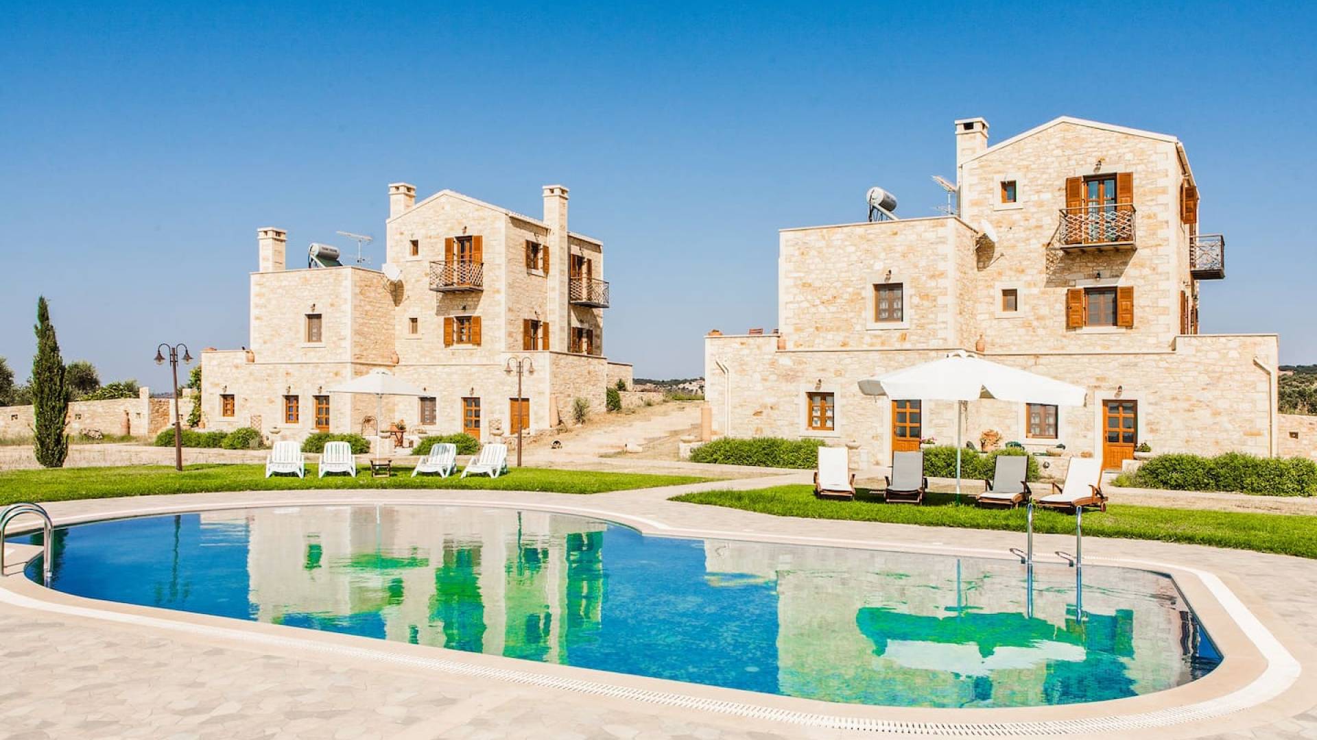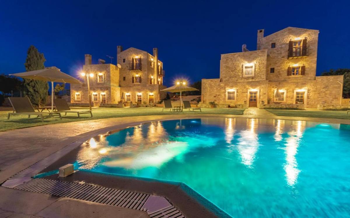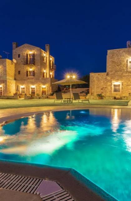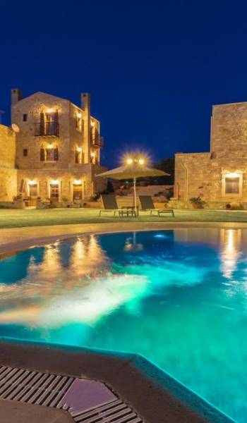 Villa Arodamos Rethymno is an independent luxury traditional stonebuilt private villa in Rethymnon Crete. Consisting of 2 independent buildings, perfect for vacations of 10-23 persons, plus 3-4 babies. Surrounded by the biggest olive trees forest in the island, only 10 minutes from the sea, inside the Mediterranean village of Pikris. Ideal for families, friends, or children. Located close to the town of the gorgeous town of Rethymno. The nearest shops and taverns, as well as the beach, are 10 minutes away.